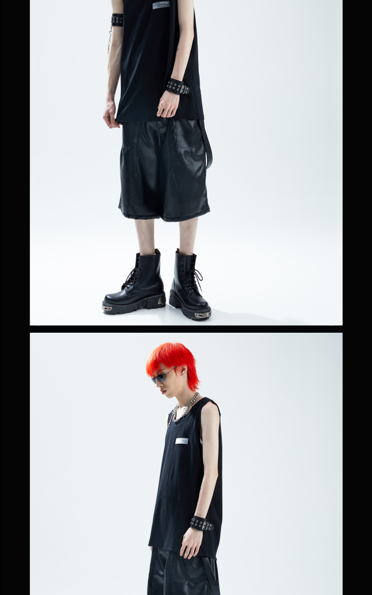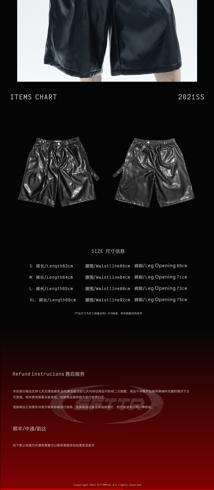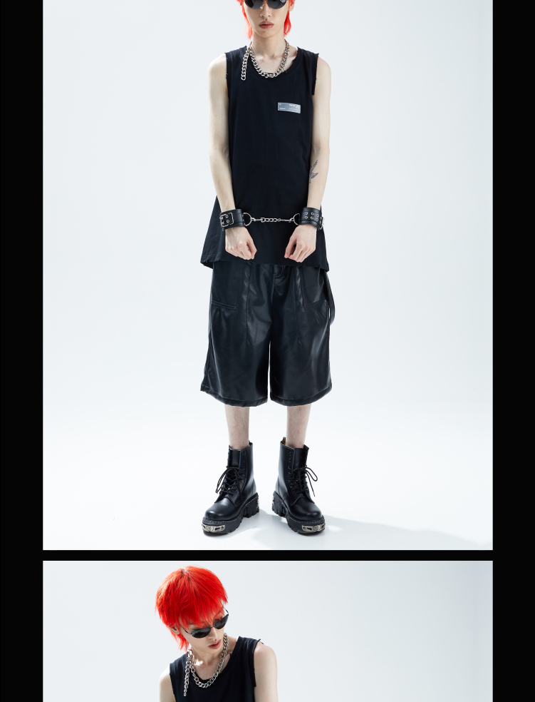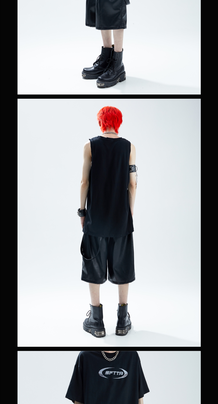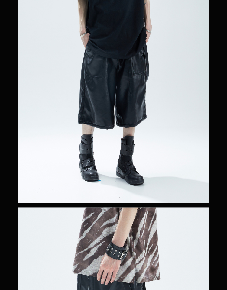 SFTTR 2021SS 大廓形打褶五分造型设计PU皮质男女五分裤先锋短裤