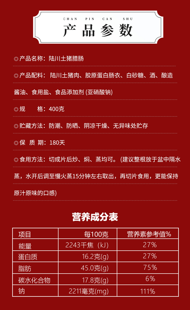 富兴·陆川腊香肠400g广式香肠送礼佳品