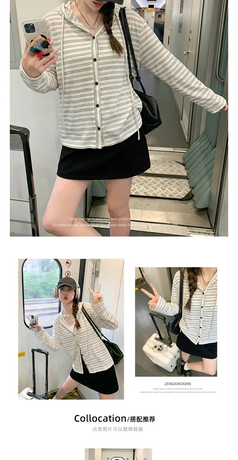 <曾小咸推荐>4.20现货秒杀 !微信超特价!韩系连帽条纹开衫t恤 日常159.99 立减90 秒杀69.99!!