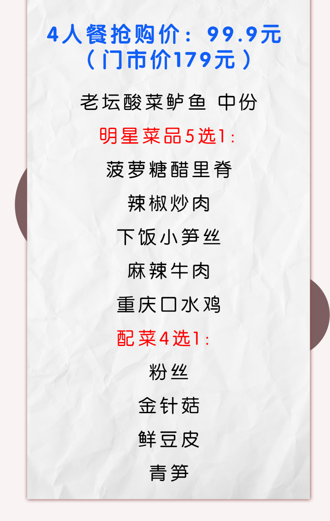 抢购有效期截止5月31日 【北京路】拯救没胃口!满足你的“鱼”望!仅79.9元起抢价值139元江渔儿酸菜鱼2/4人餐=老坛酸菜鲈鱼+明星菜品+配菜!
