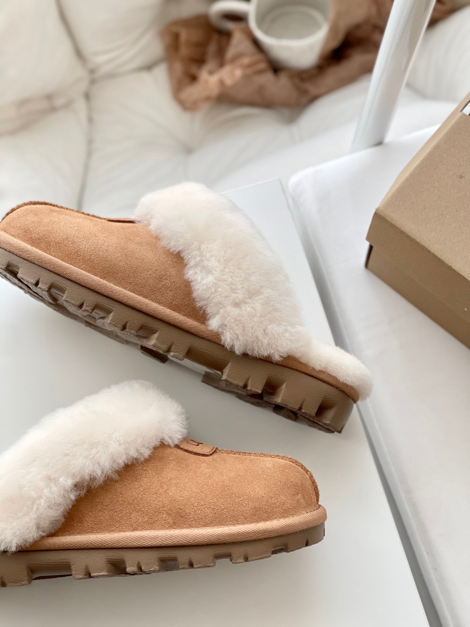 千颂伊同款(星拖) 采用:超强防水的A级皮料,EVA超轻大底,隆丰17mm毛长的羊皮毛一体!后半脚掌有3毫米高的乳胶垫!走路不会掉脚❗️ 最近几年 深受各路人士的喜爱!🉑️居家🉑️外穿❗️ 颜色:羚羊粽 -栗色- 黑色 -灰色 鞋码:35-44(正码选择)
