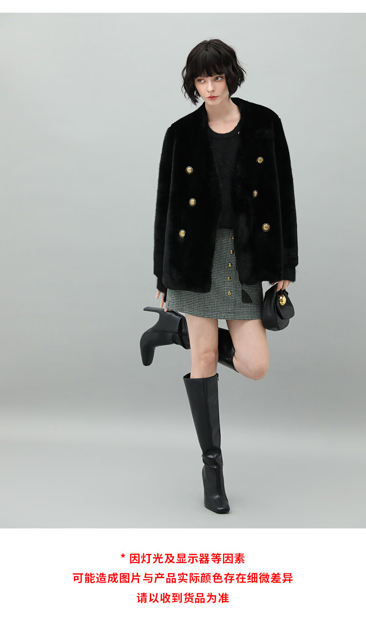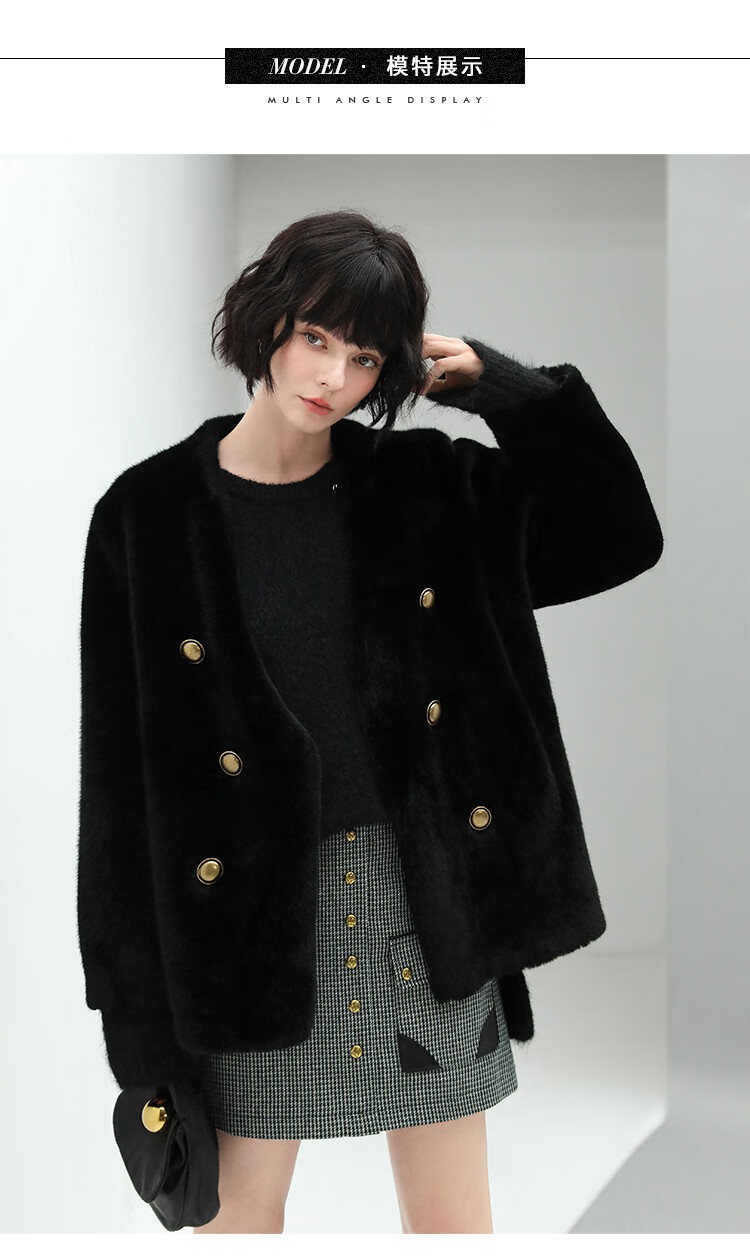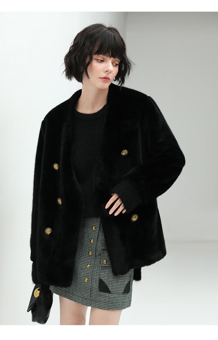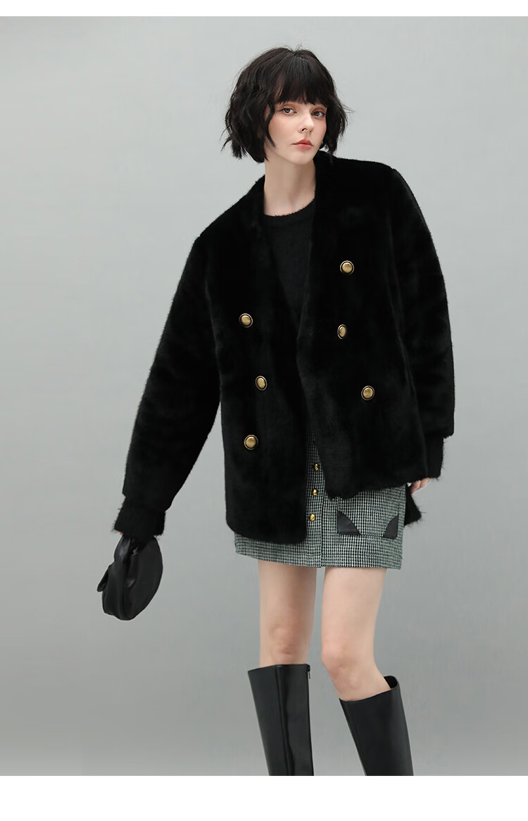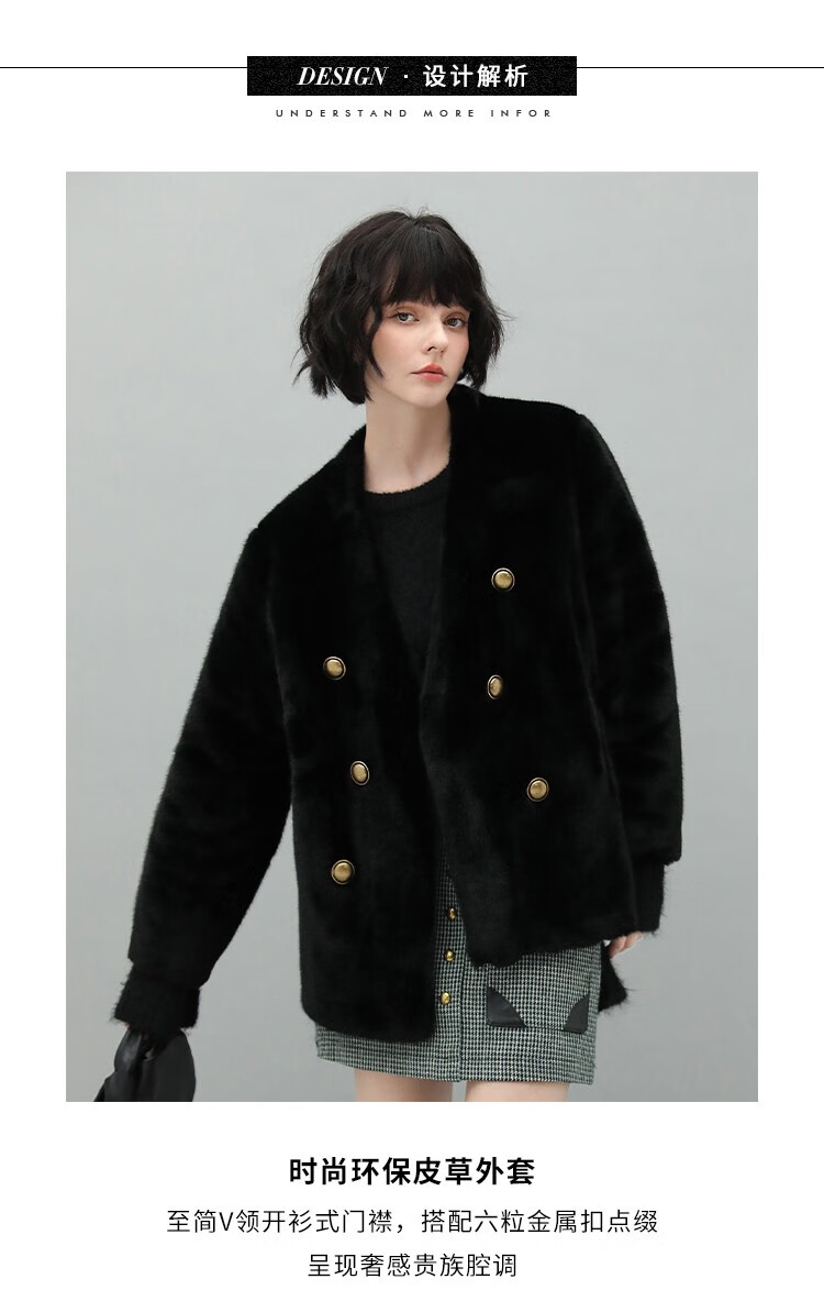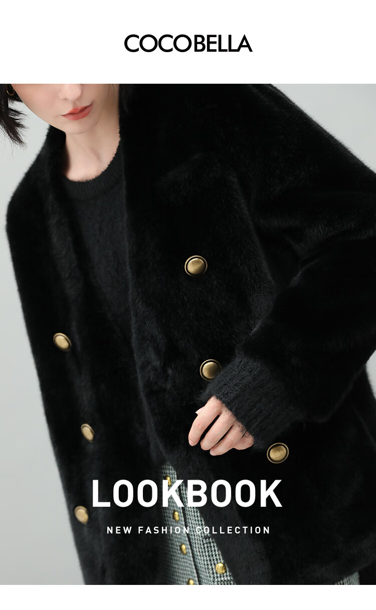 COCOBELLA【有赞】丰盈毛感环保皮草外套高奢双排扣气质裸领大衣WL56B