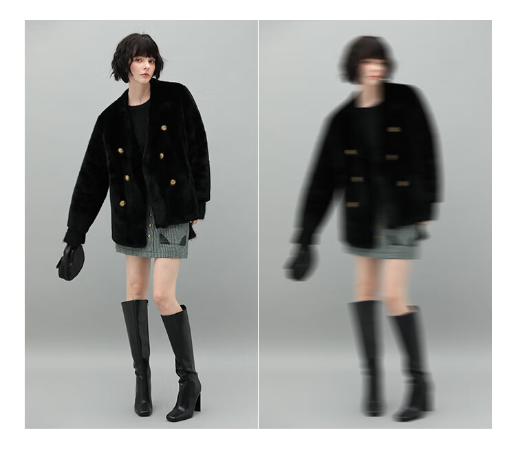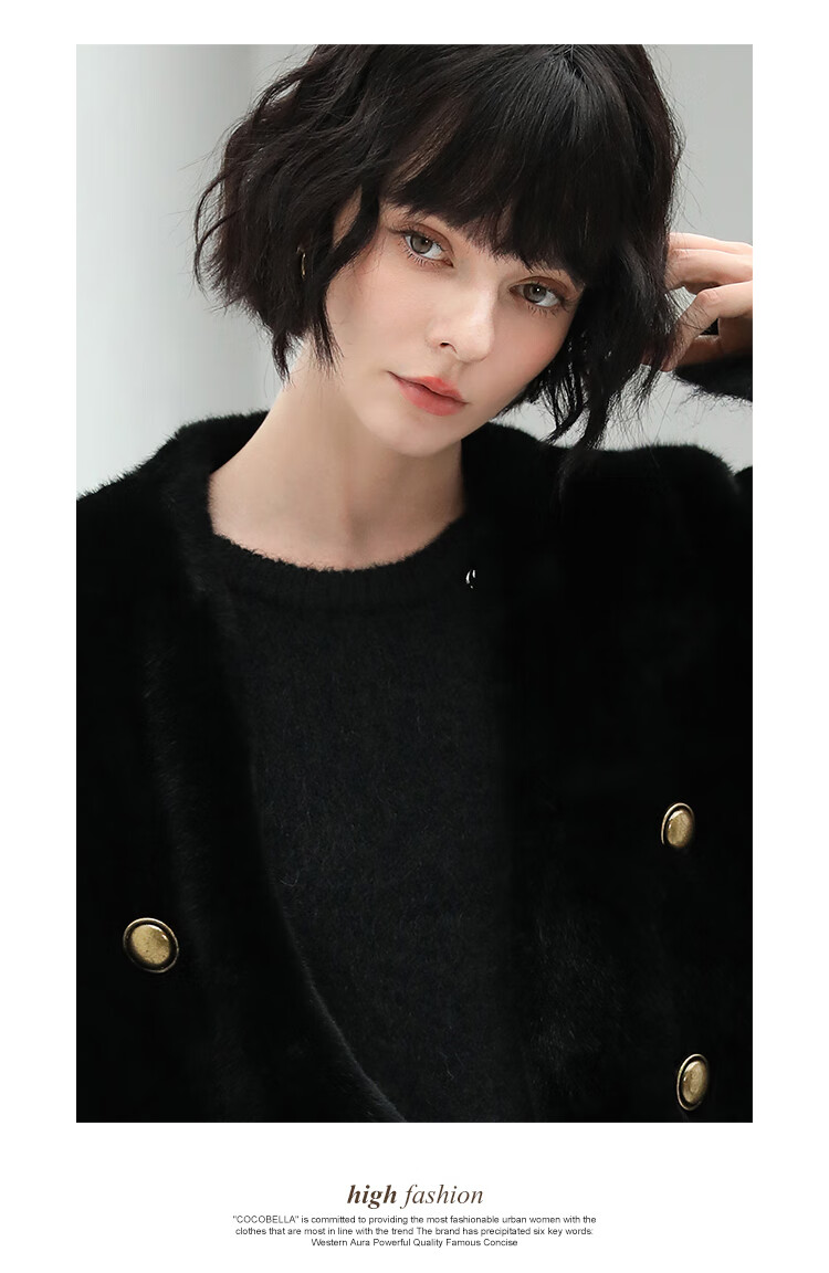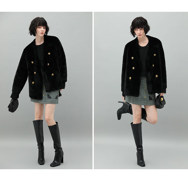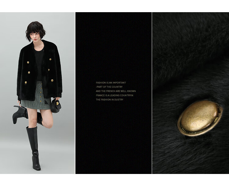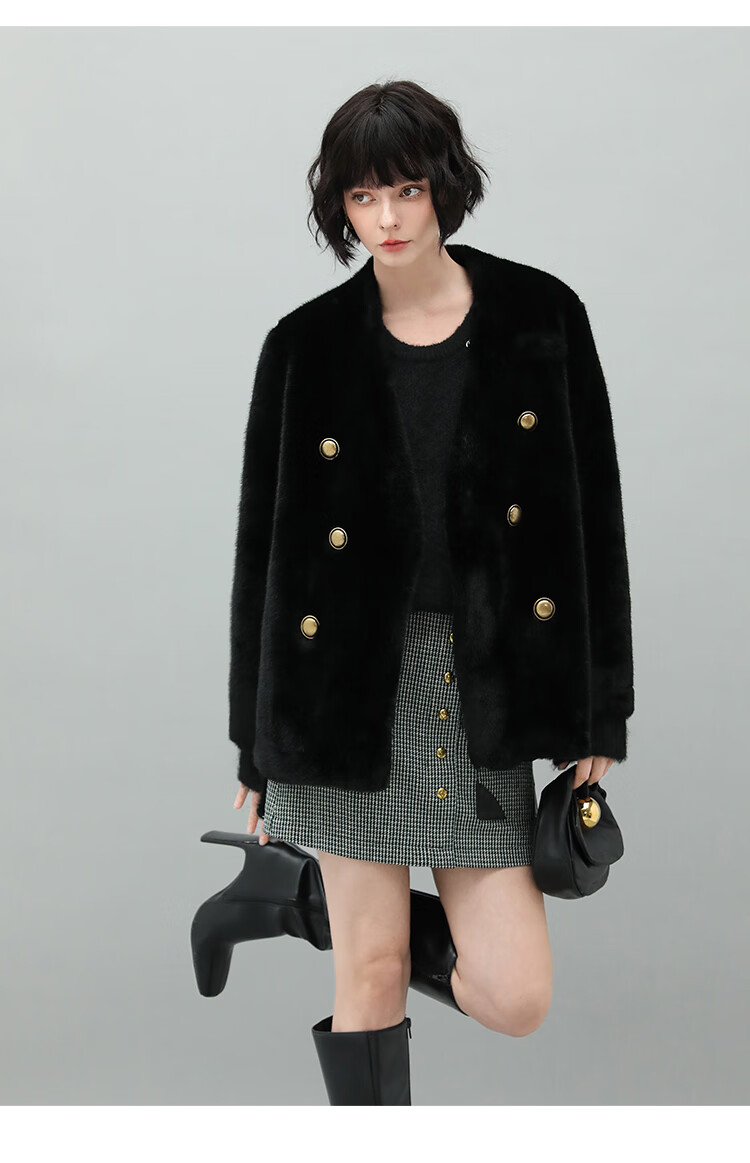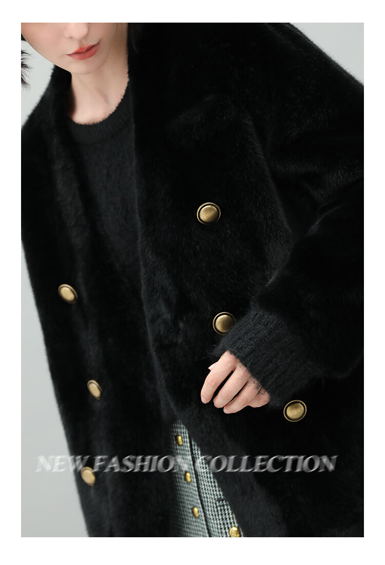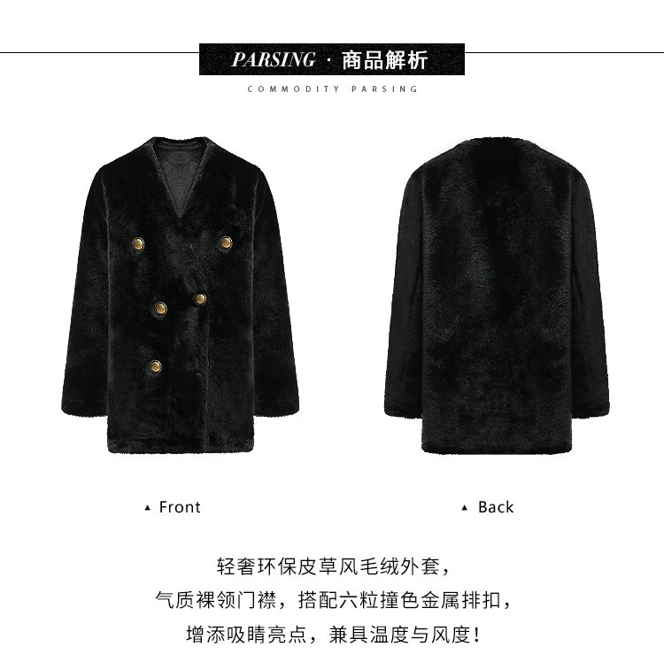 COCOBELLA【有赞】丰盈毛感环保皮草外套高奢双排扣气质裸领大衣WL56B