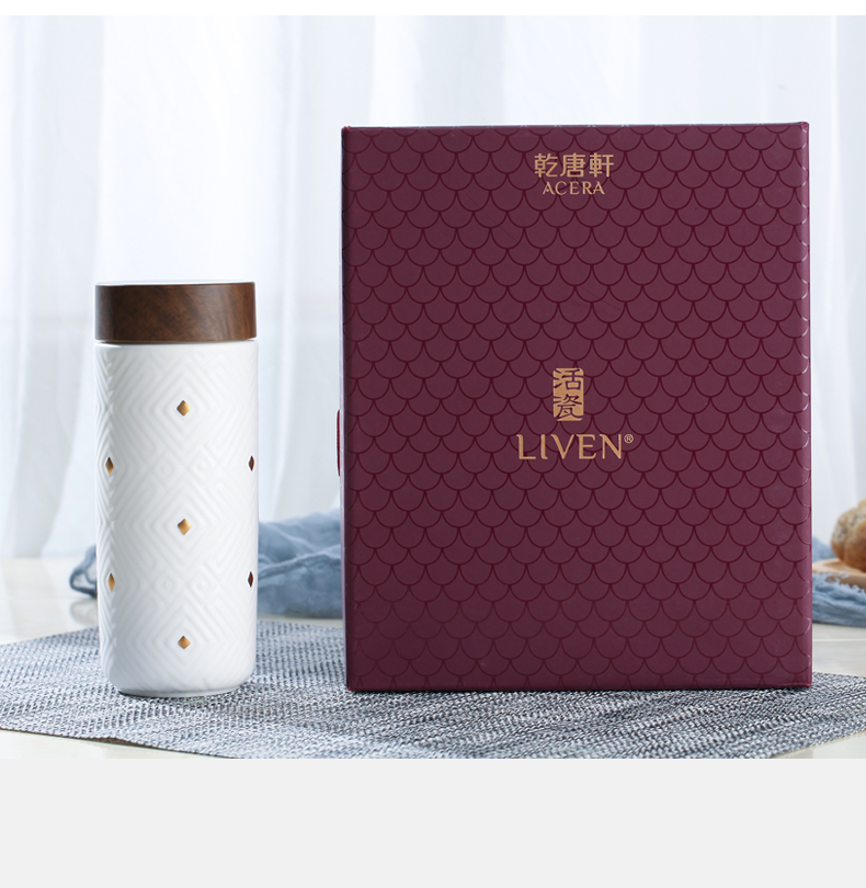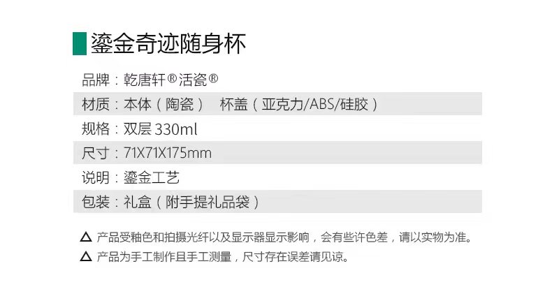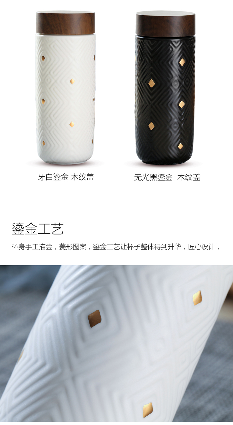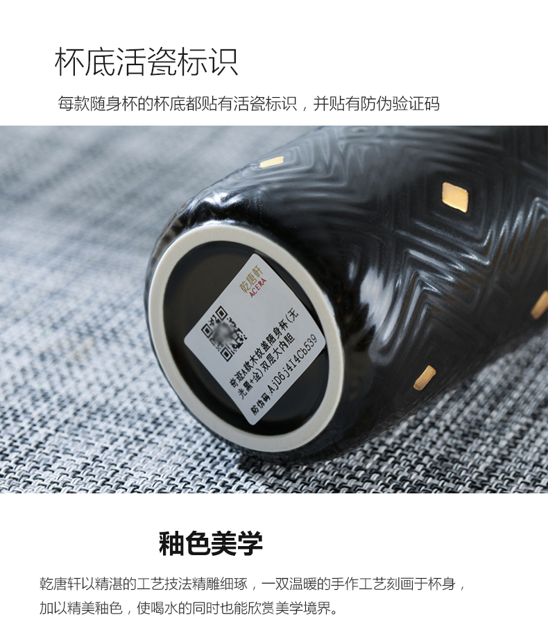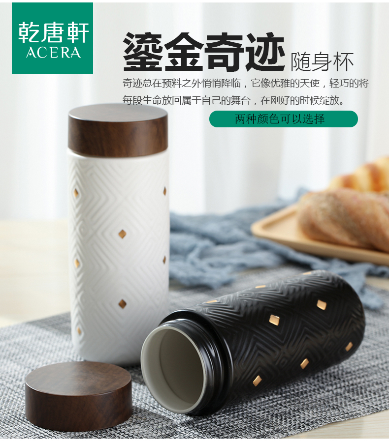 乾唐轩活瓷杯鎏金奇迹木纹盖随身杯双层330ml