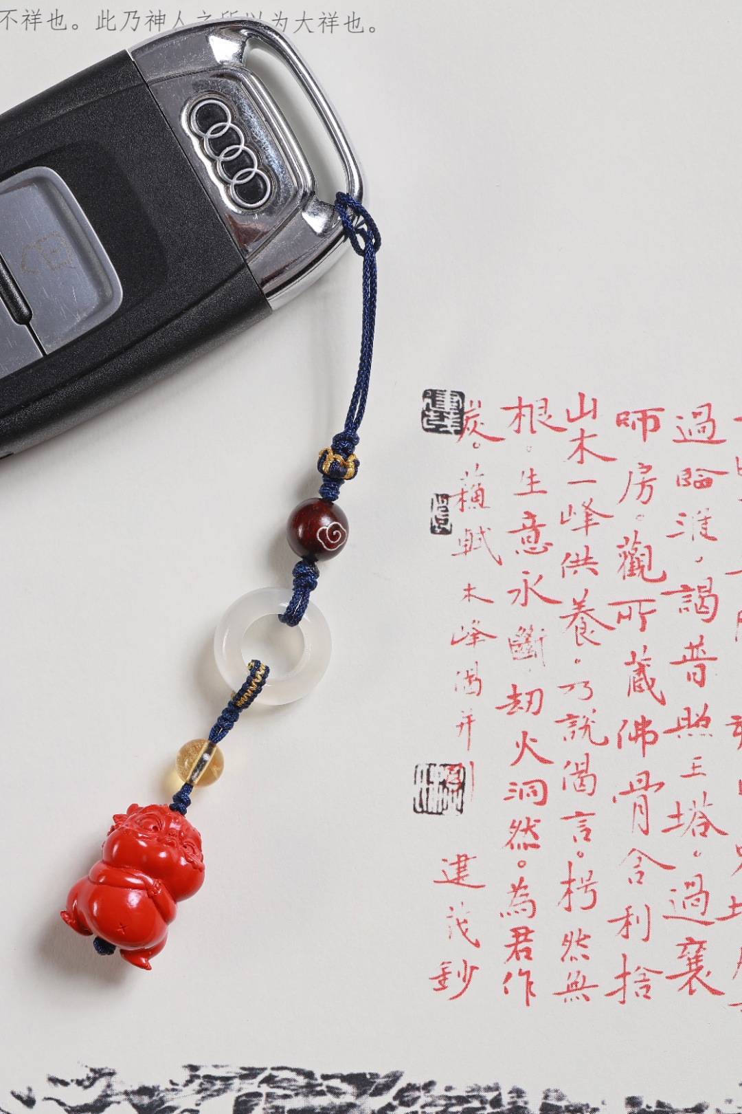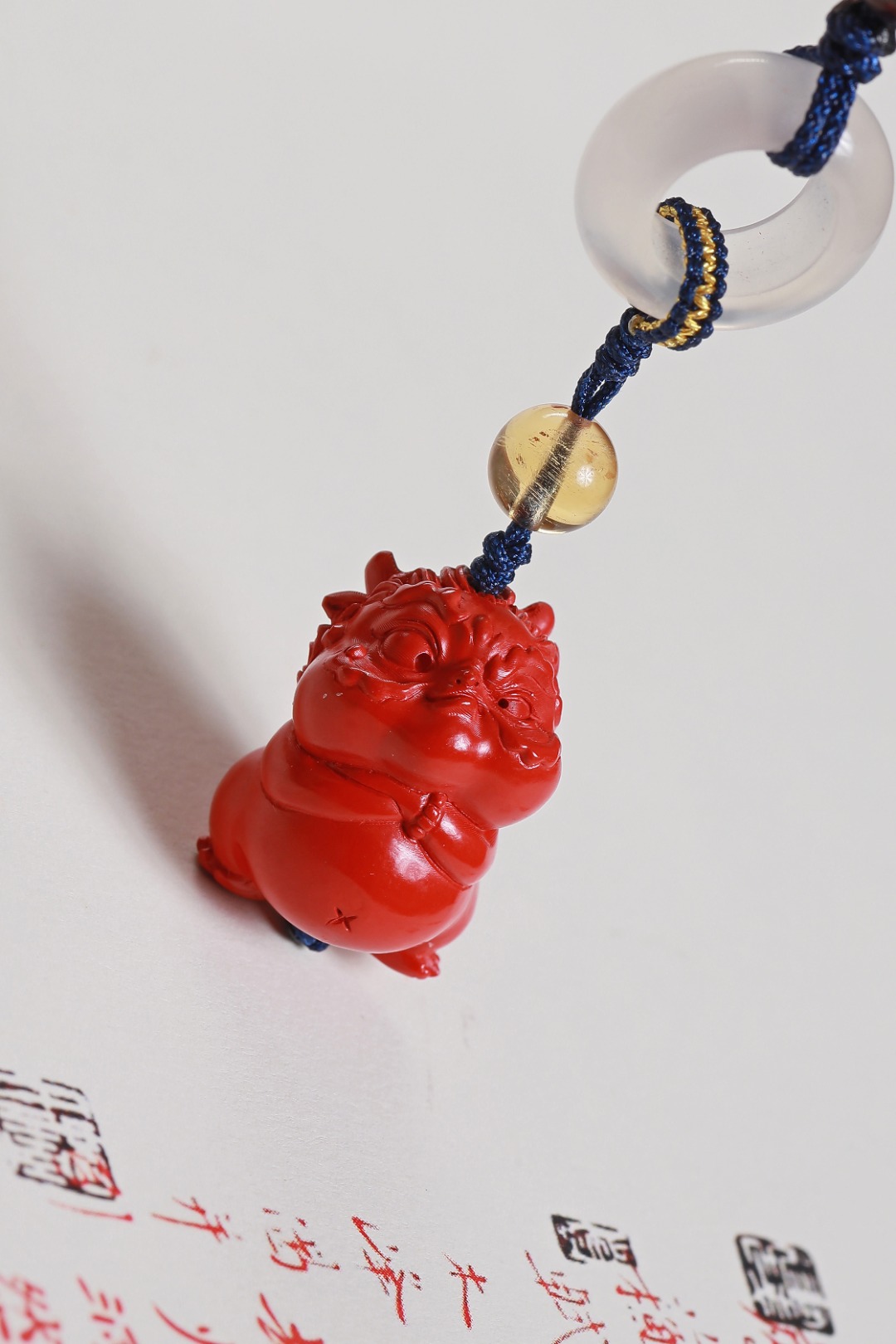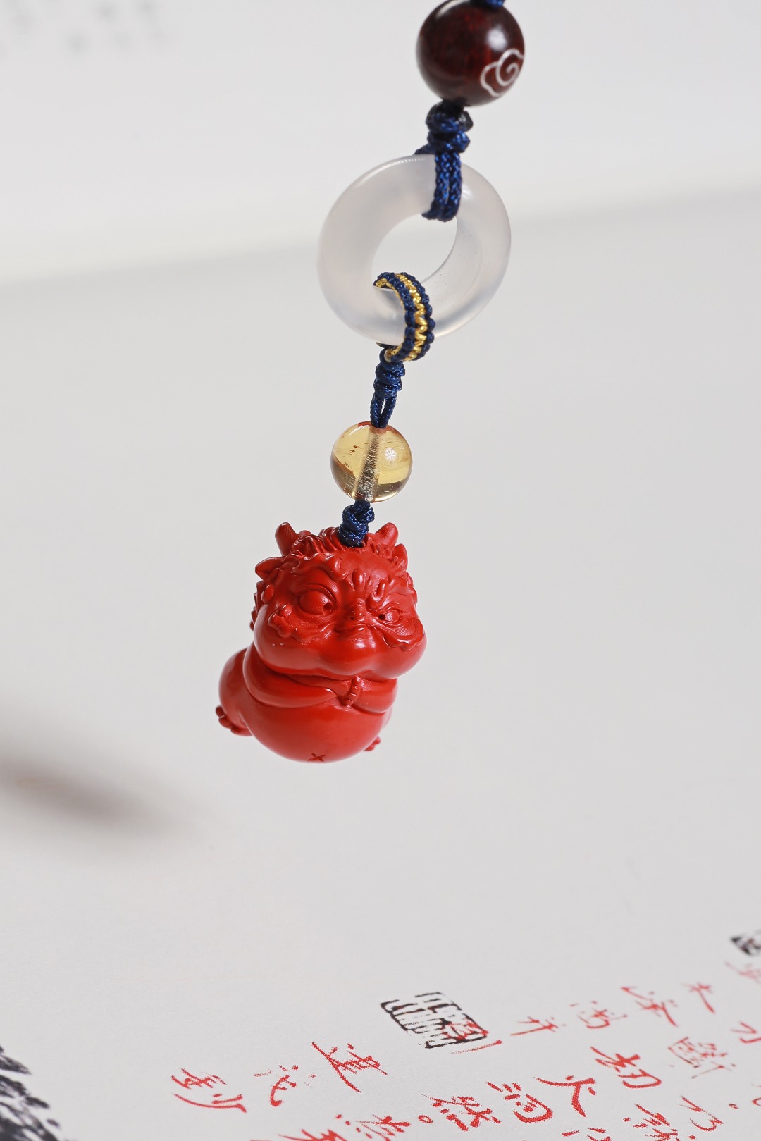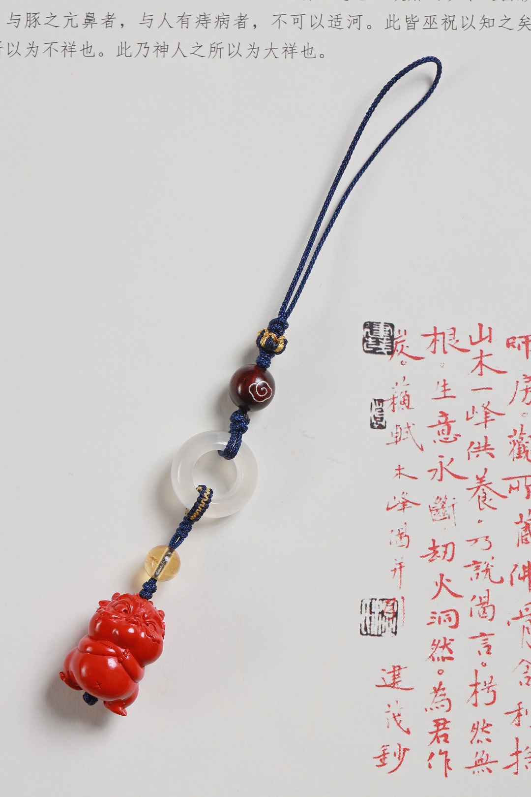 【配件】朱砂小霸王貔貅/白玛瑙跑环/紫檀祥云/黄水晶/莲花结编