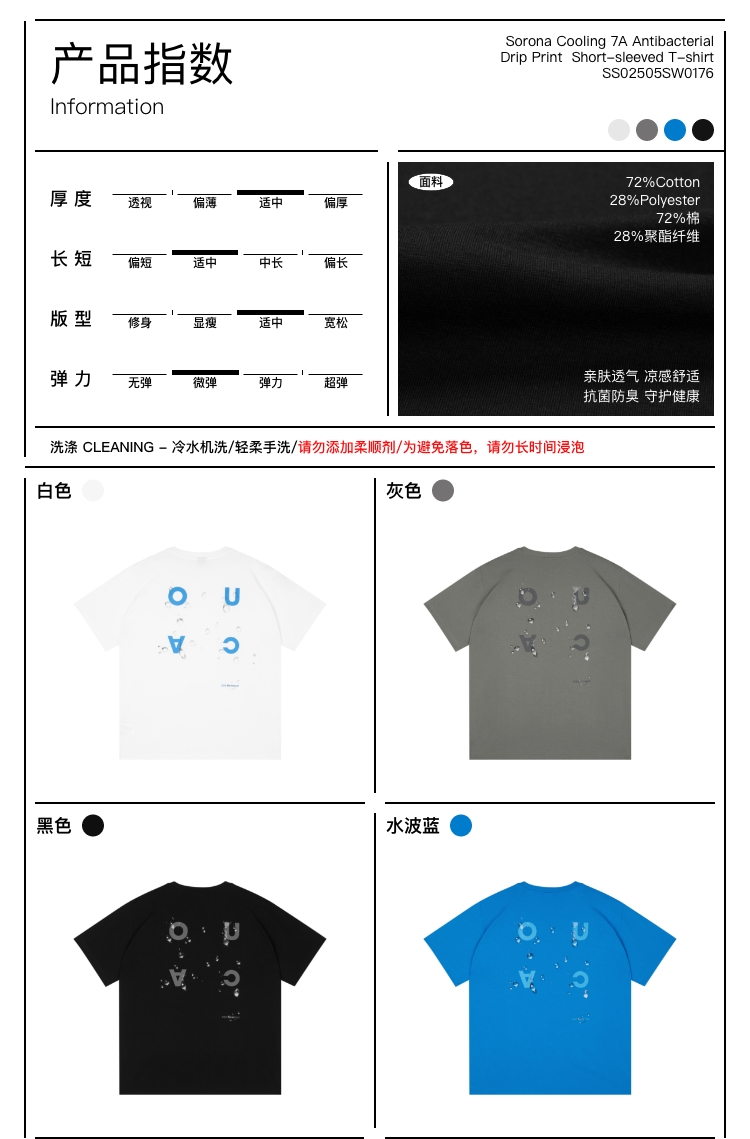 oneup凉感7A抗菌水滴印花短袖T恤