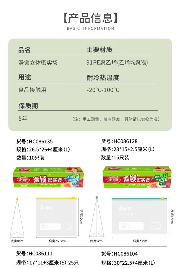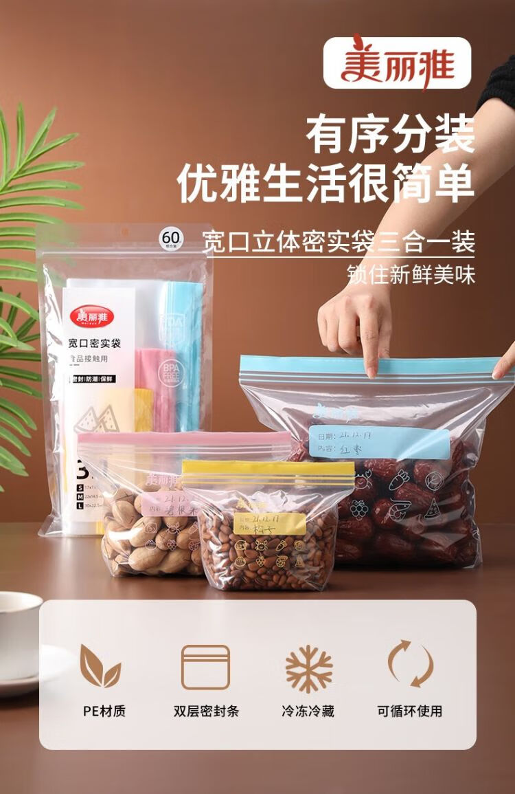 美丽雅彩唇双封口密实袋大号 8只装/袋