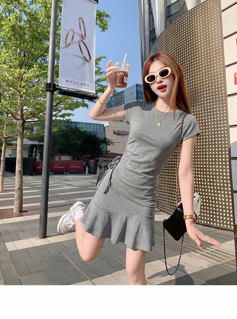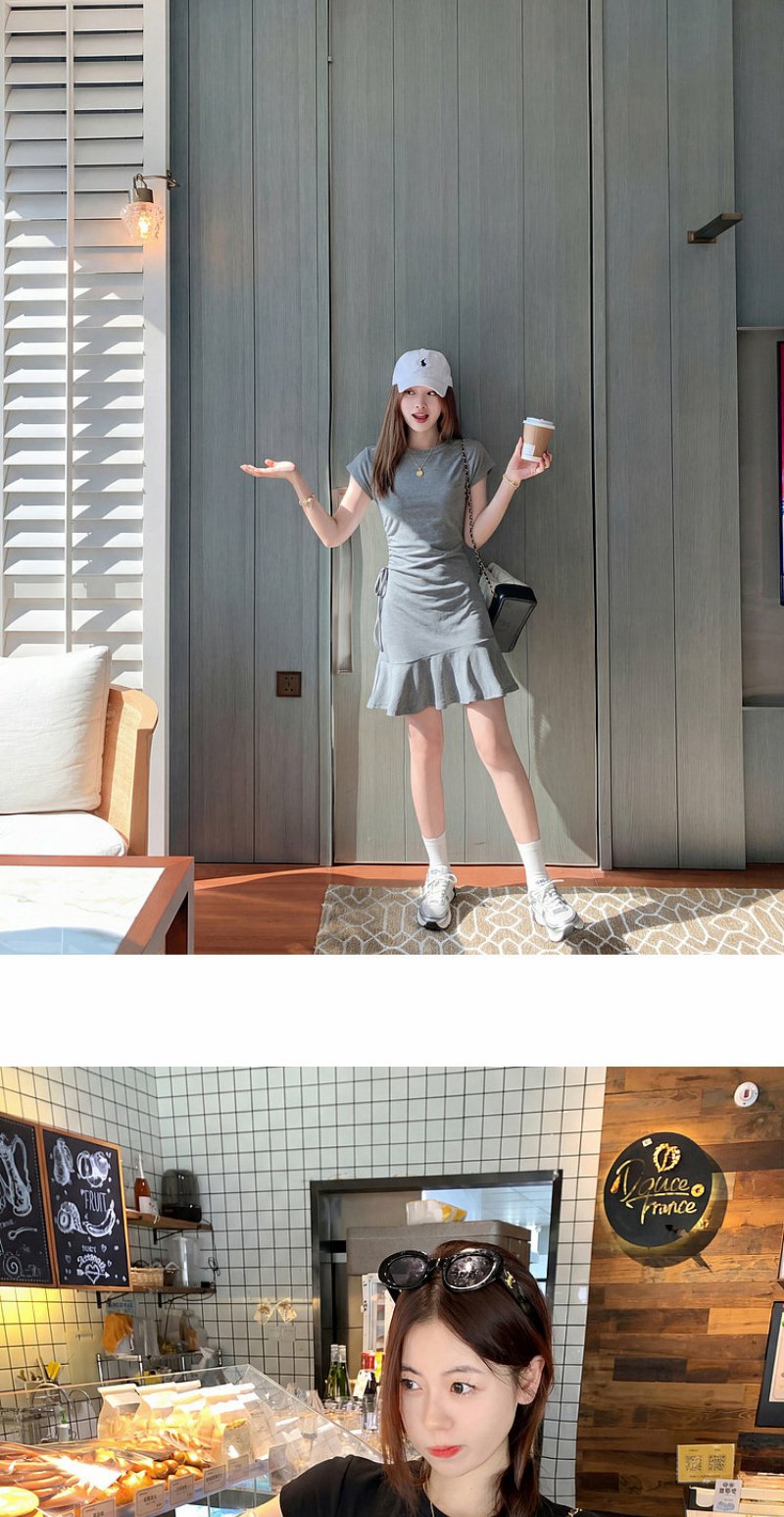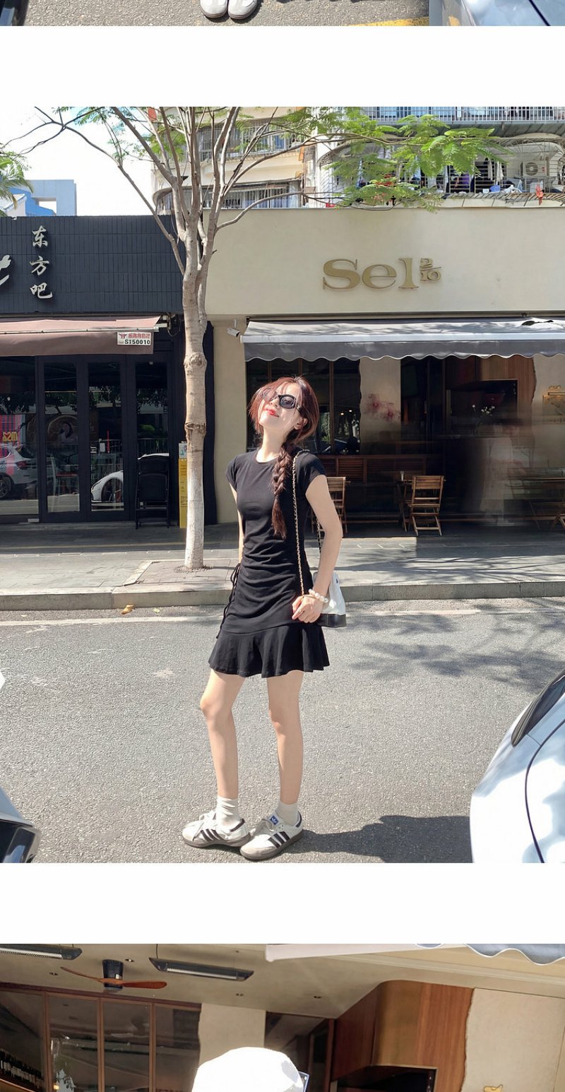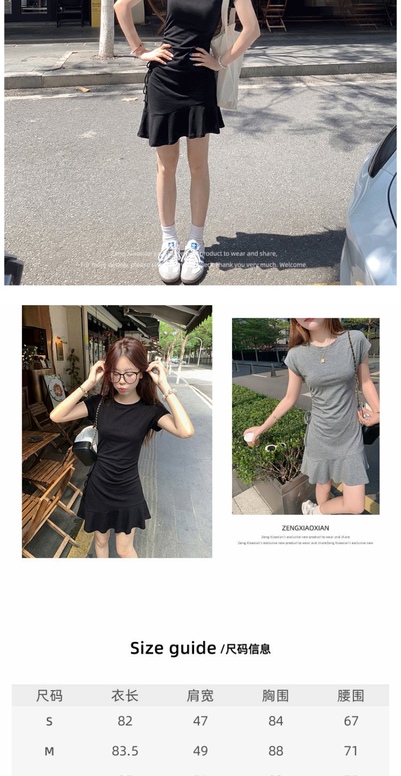 <曾小咸推荐>圆领2色短袖修身连衣裙短裙【预售7-15天发货】