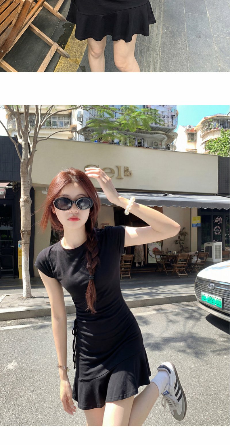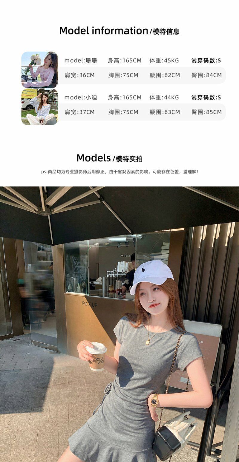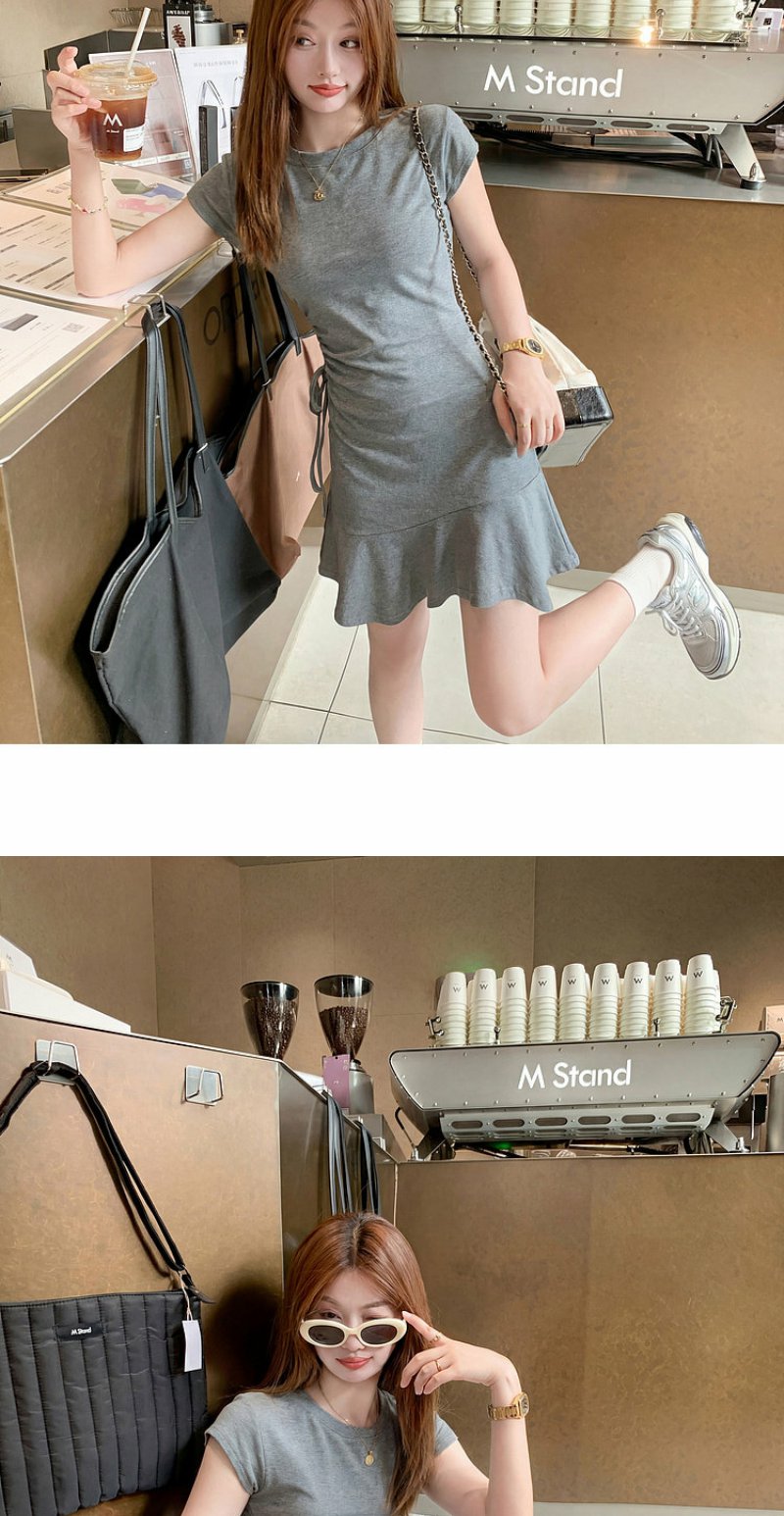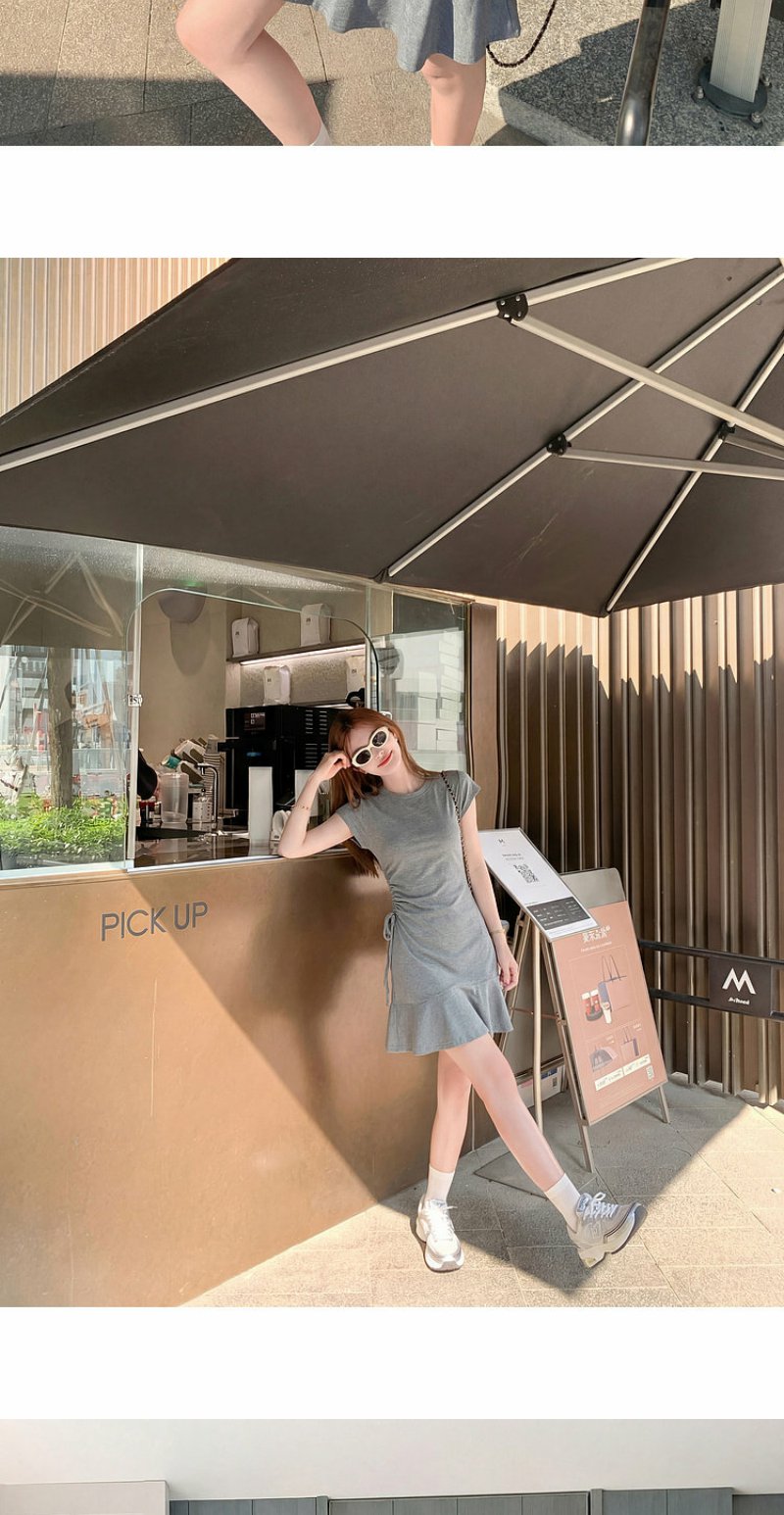 <曾小咸推荐>圆领2色短袖修身连衣裙短裙【预售7-15天发货】