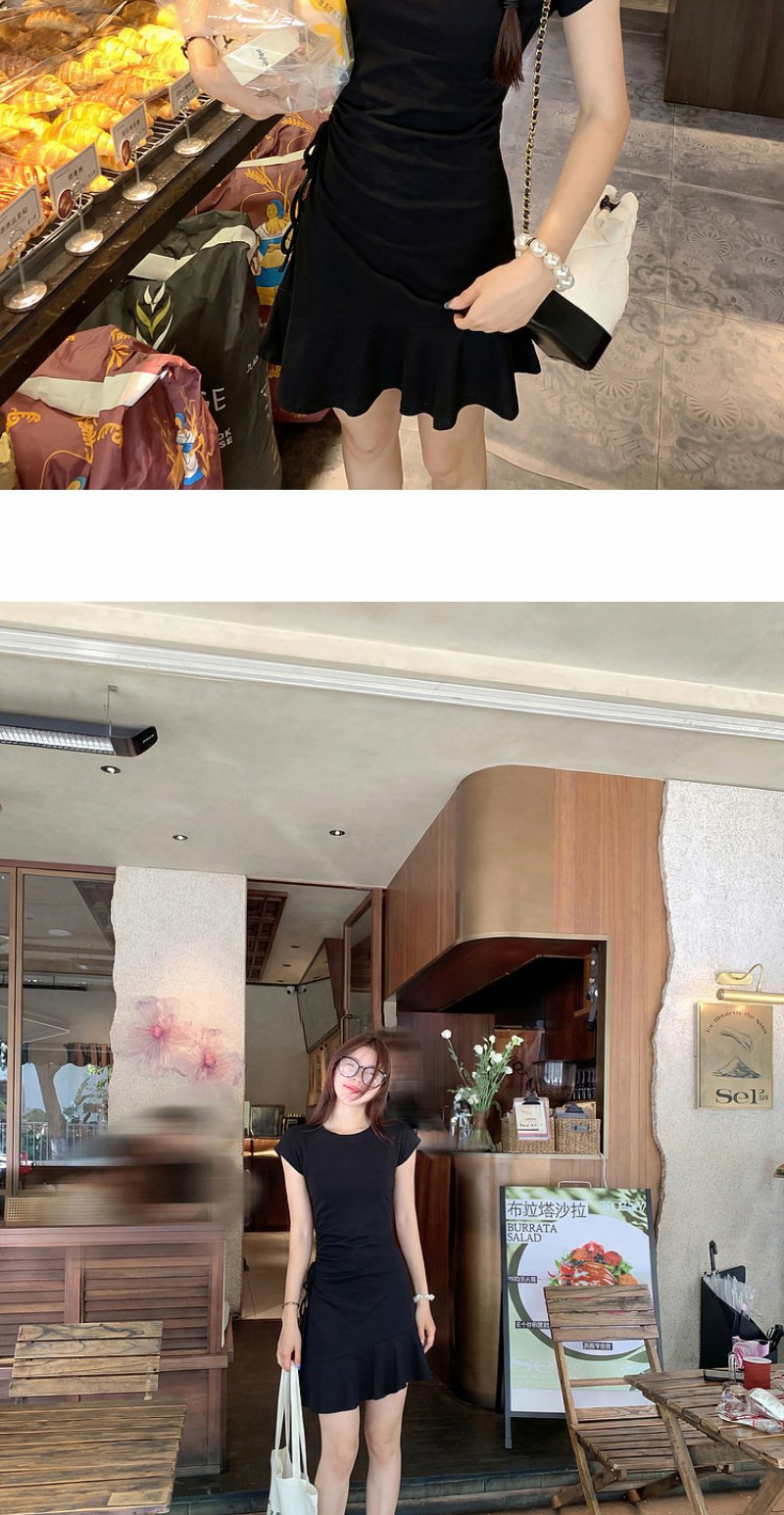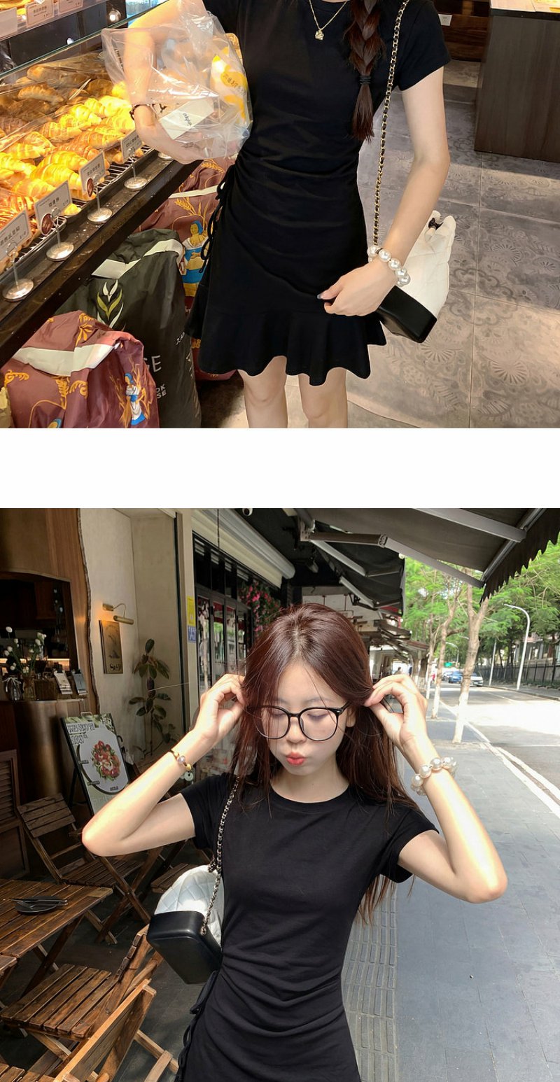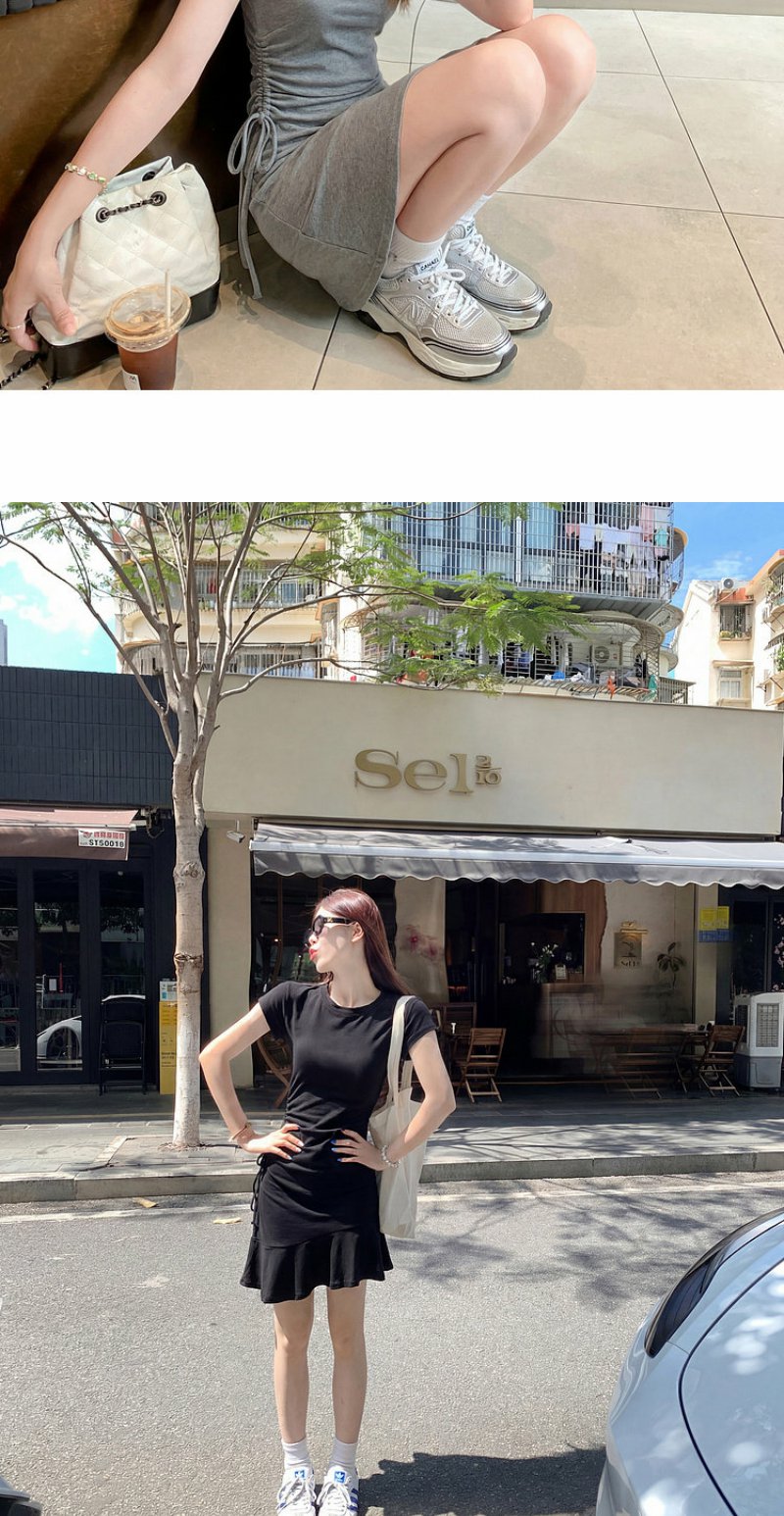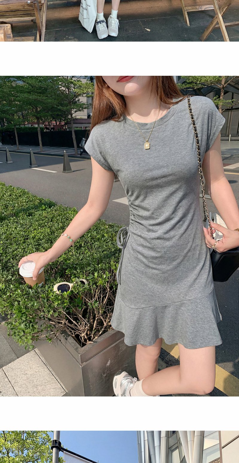 <曾小咸推荐>圆领2色短袖修身连衣裙短裙【预售7-15天发货】