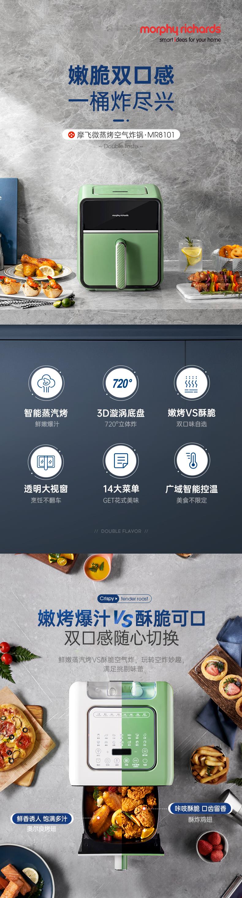 预售3天发货【自营】 摩飞 微蒸烤空气炸锅 智能蒸汽烤 漩涡底盘 MR8101 多规格
