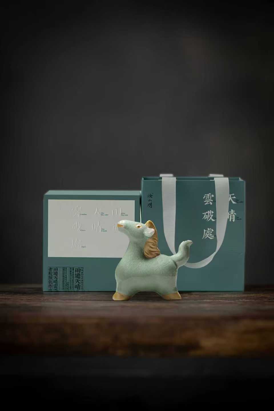 汝山明 绿码来了 趣味摆件/茶宠生肖马到成功仿古釉茶宠开片可养汝瓷品茗把玩