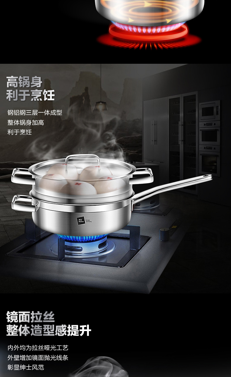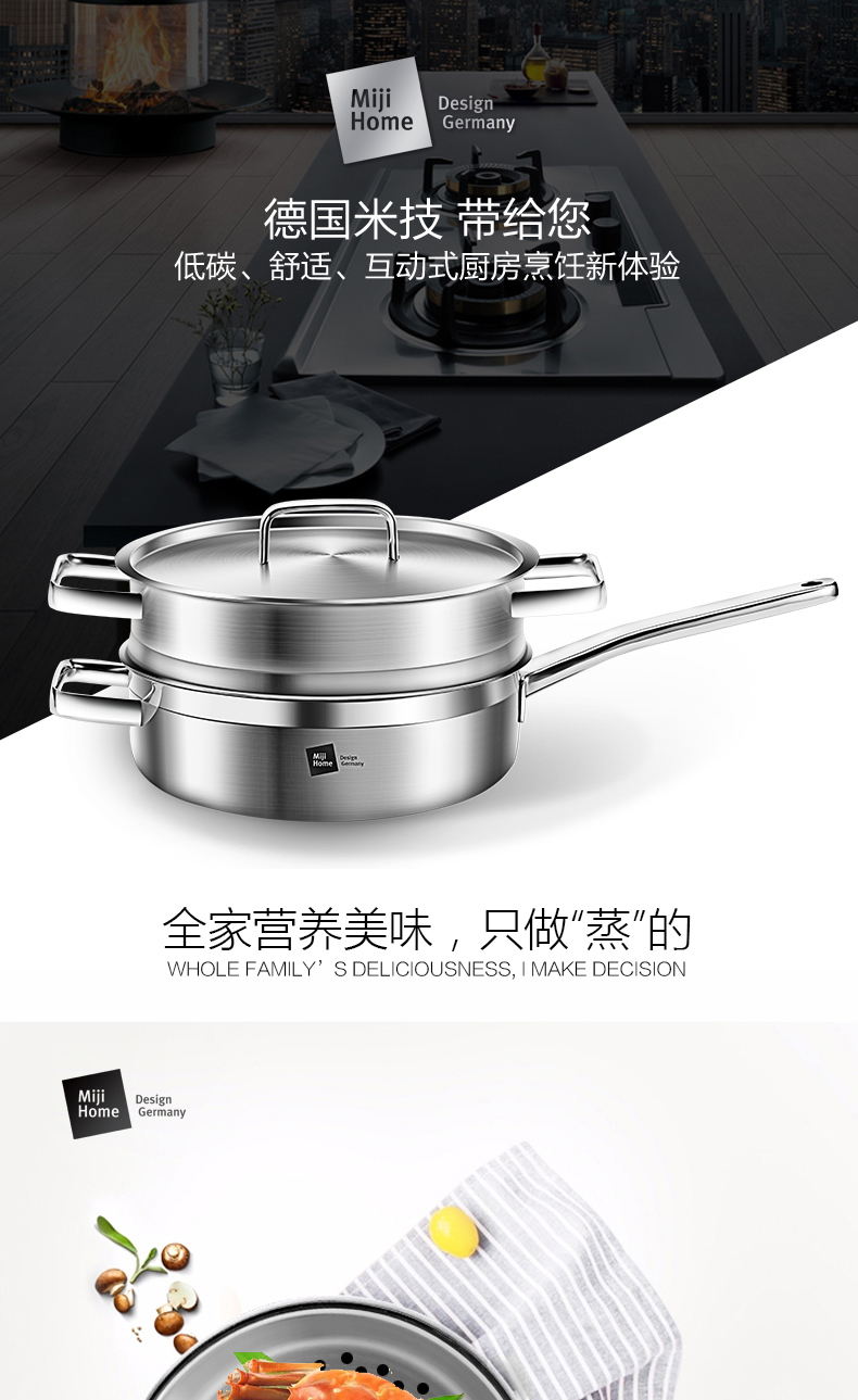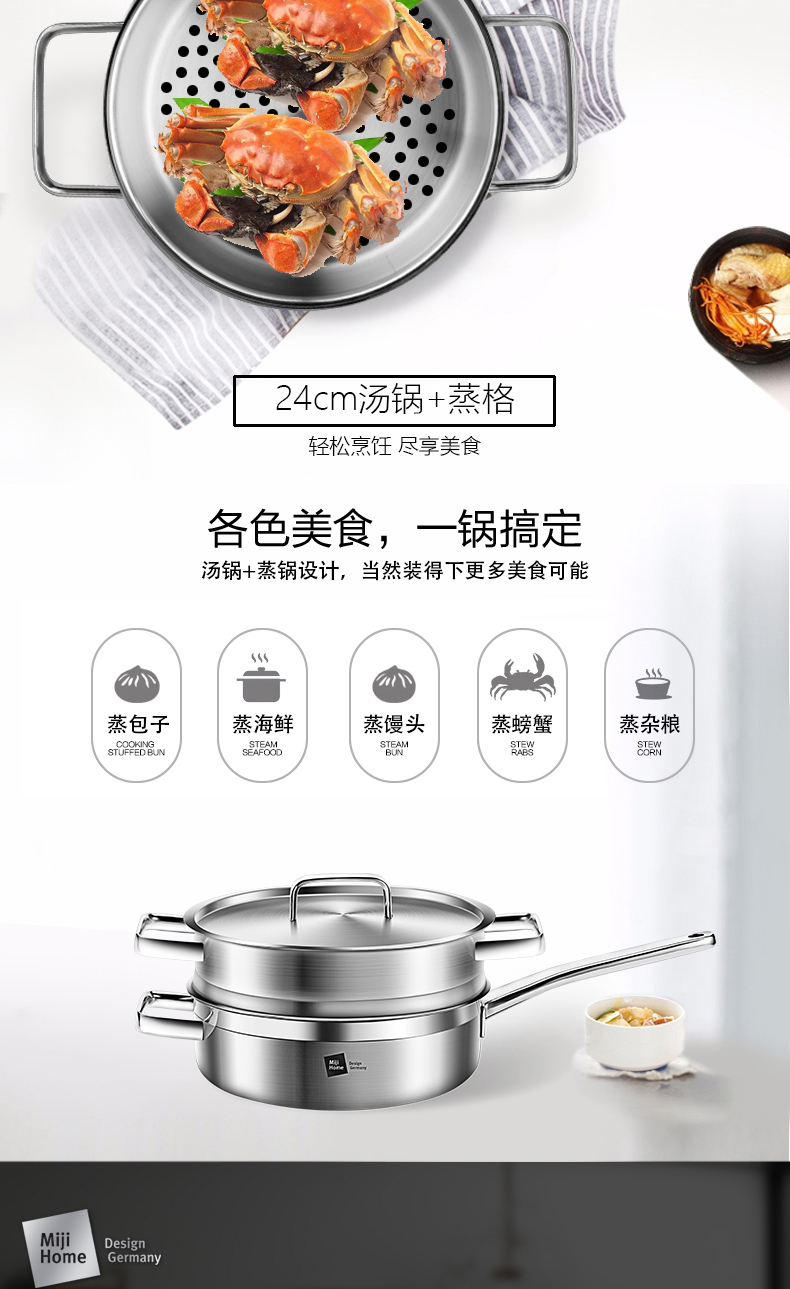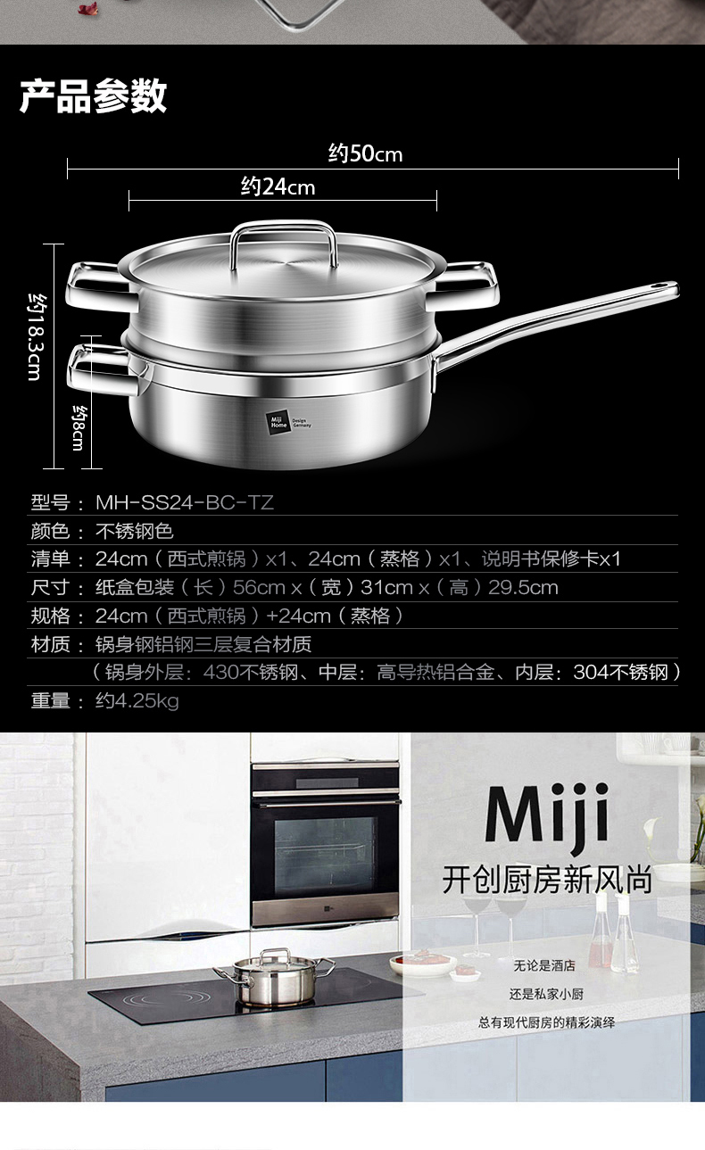 米技 银河系列 24CM西式煎锅带蒸格套装(MH-SS24-BC-TZ)