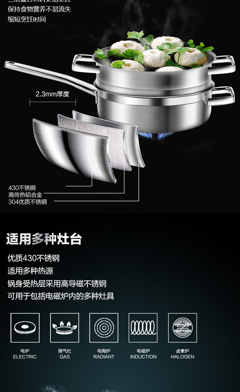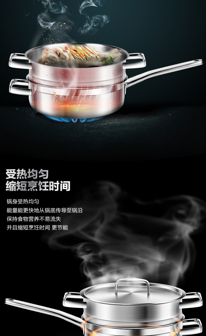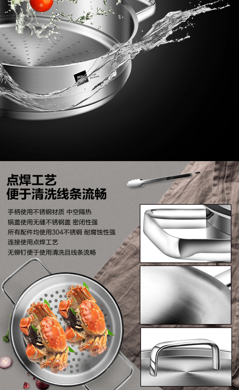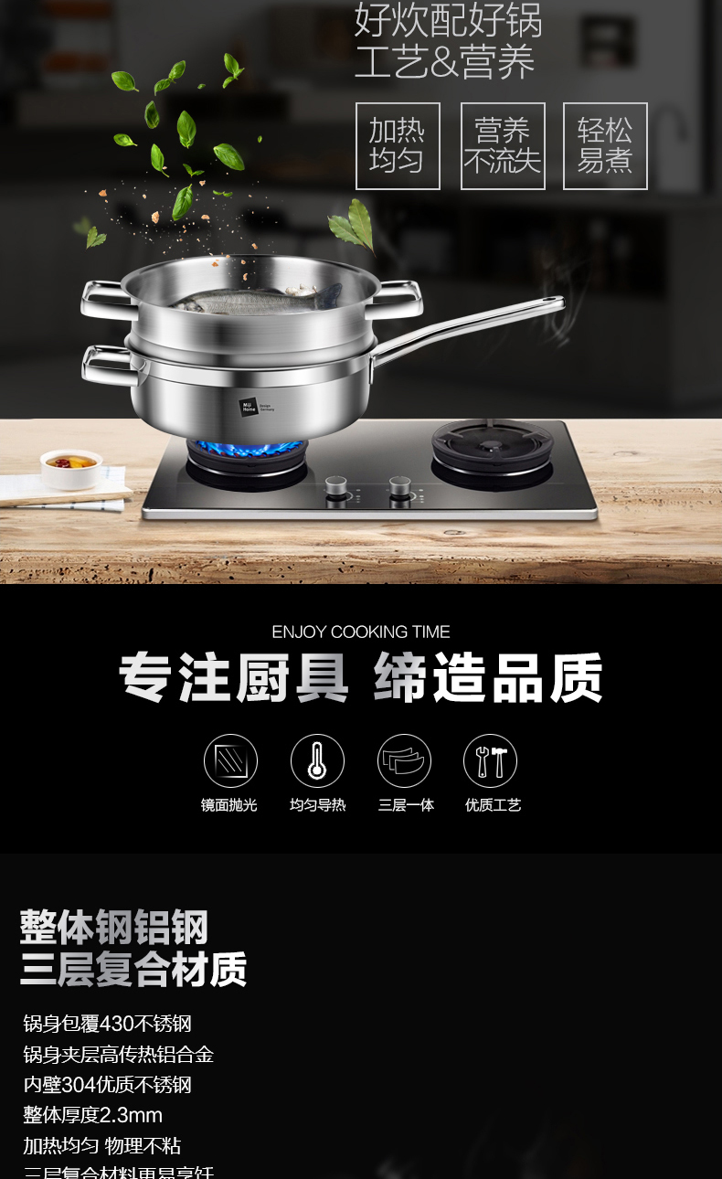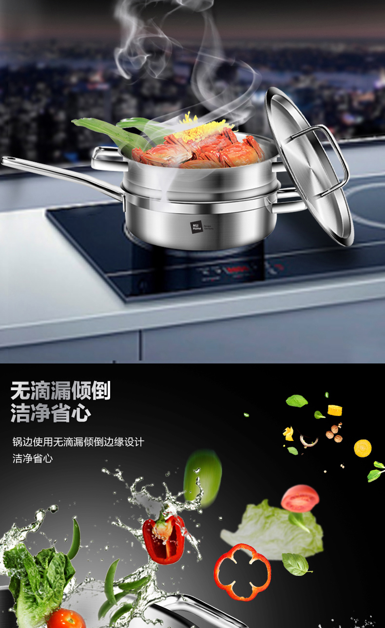 米技 银河系列 24CM西式煎锅带蒸格套装(MH-SS24-BC-TZ)