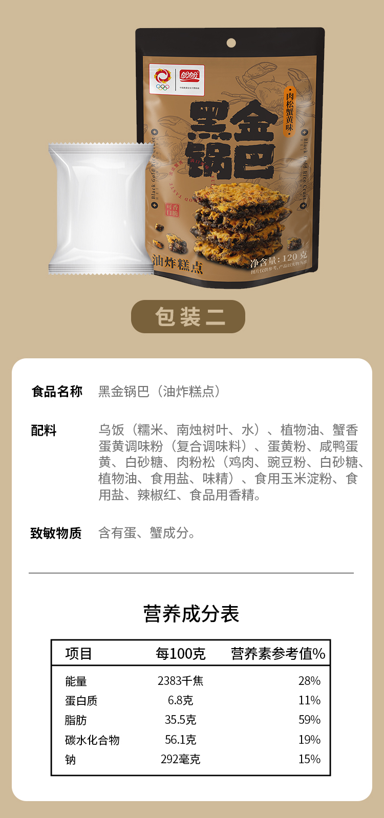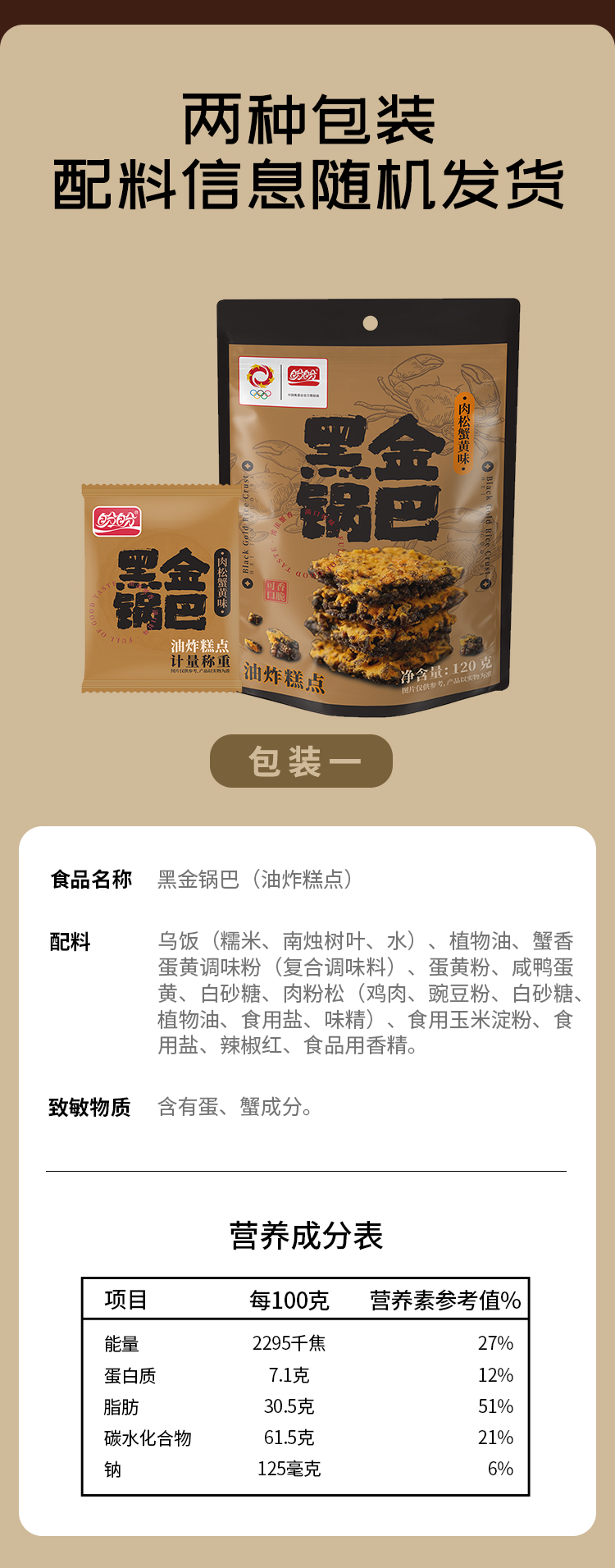 【69元任选10件】黑金锅巴-肉松蟹黄味120g