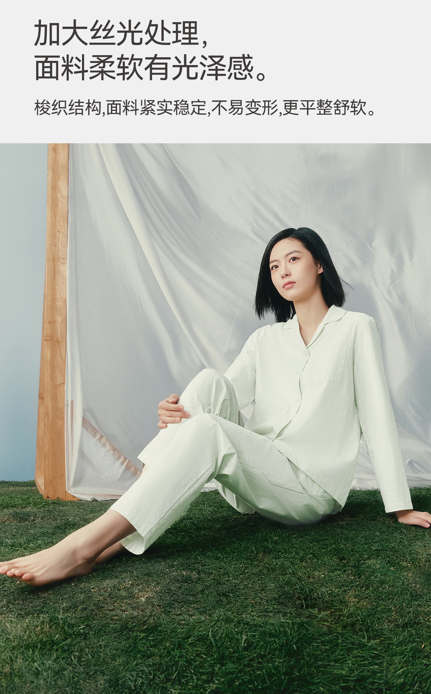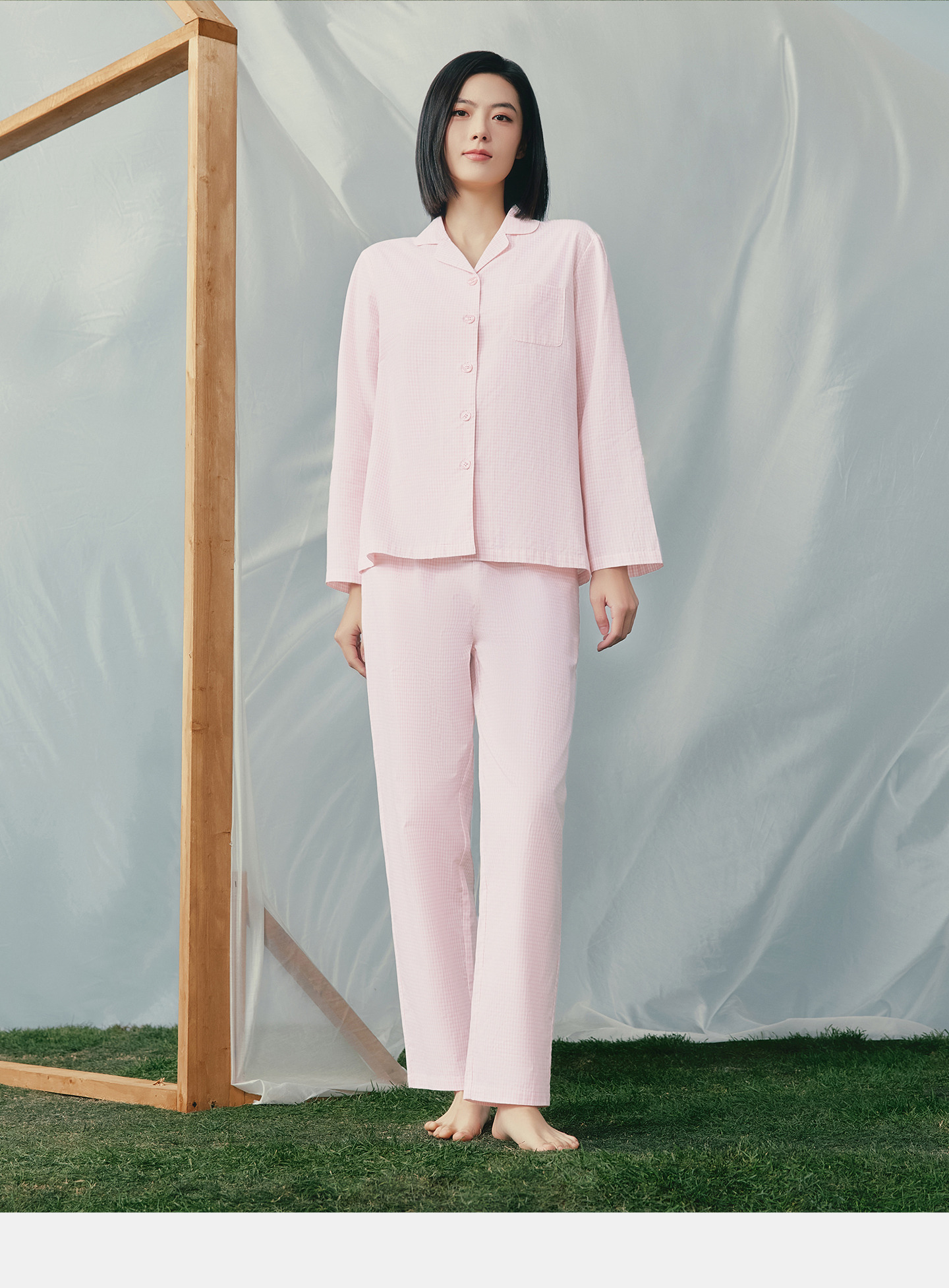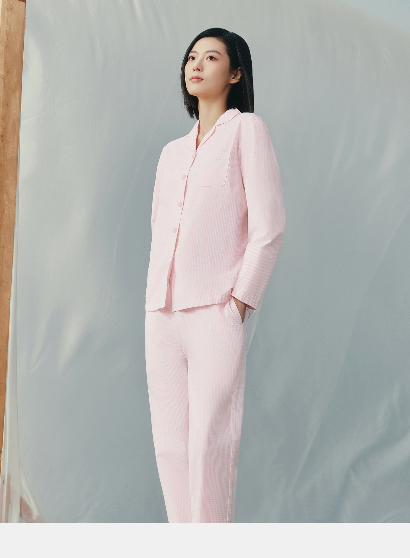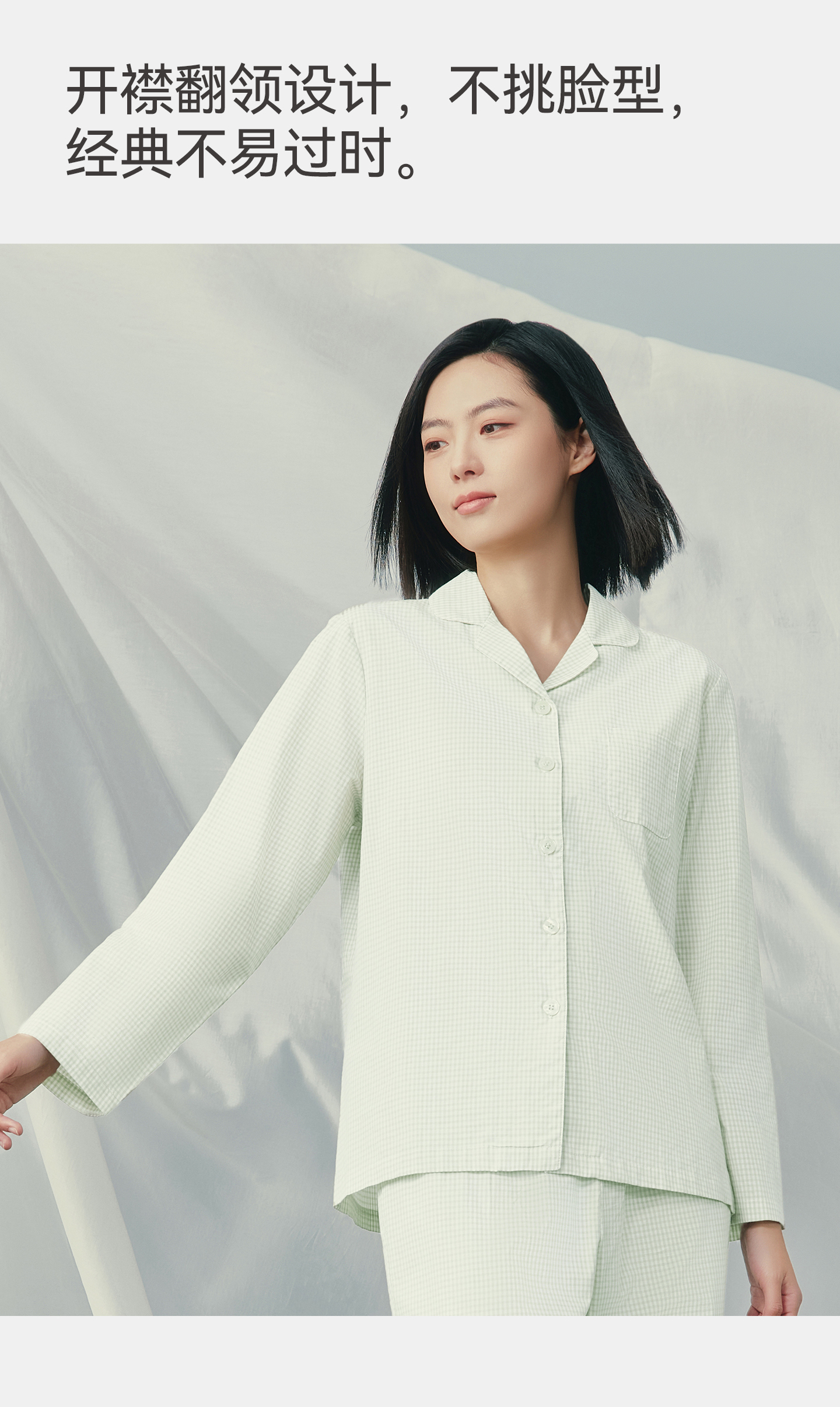 Threegun三枪 纯棉彩格翻领开襟长袖长裤男家居套-T80135D01