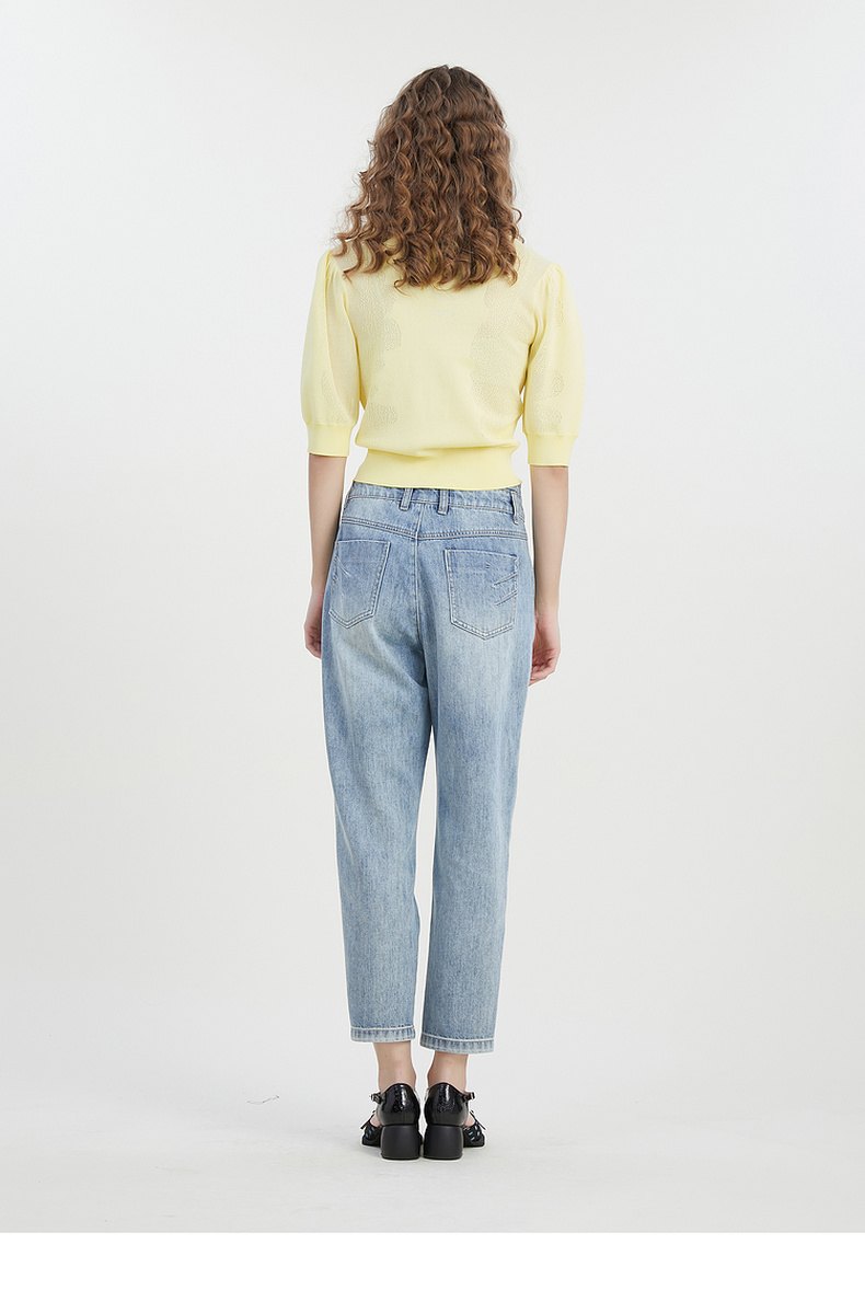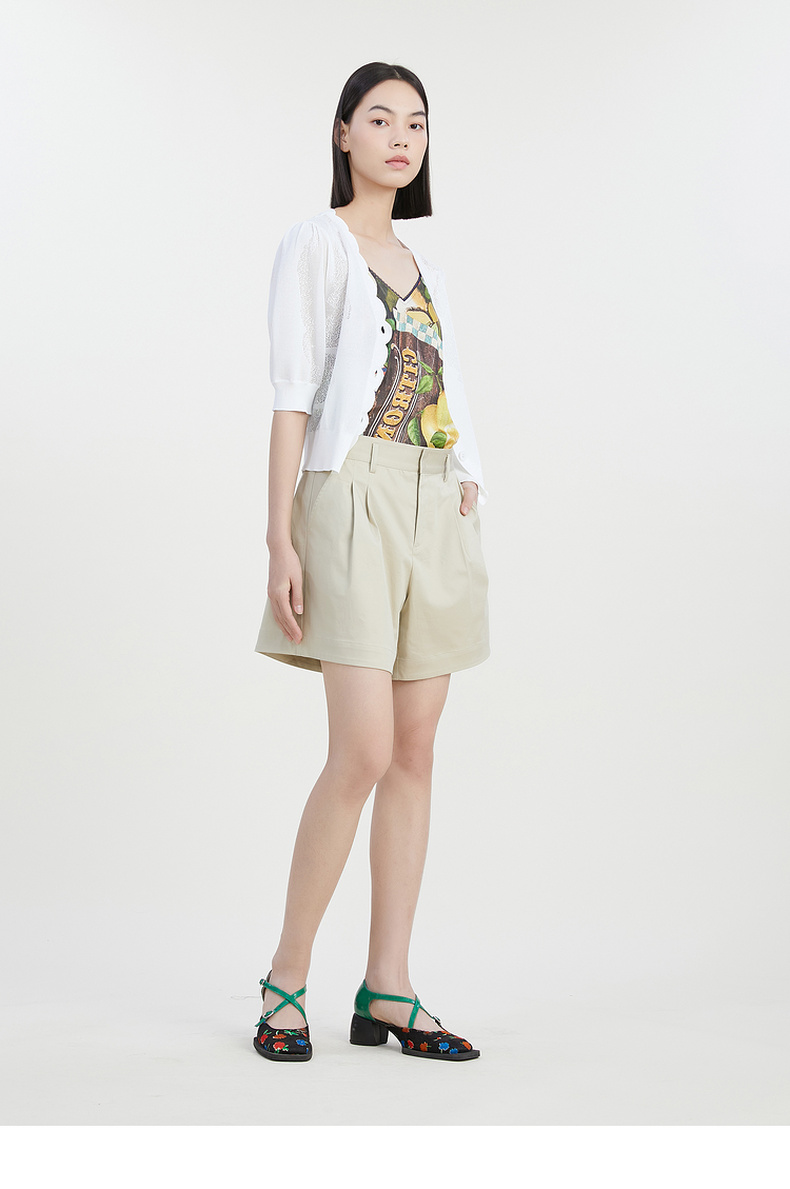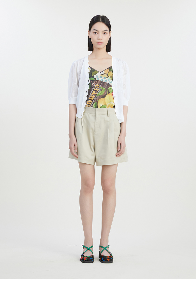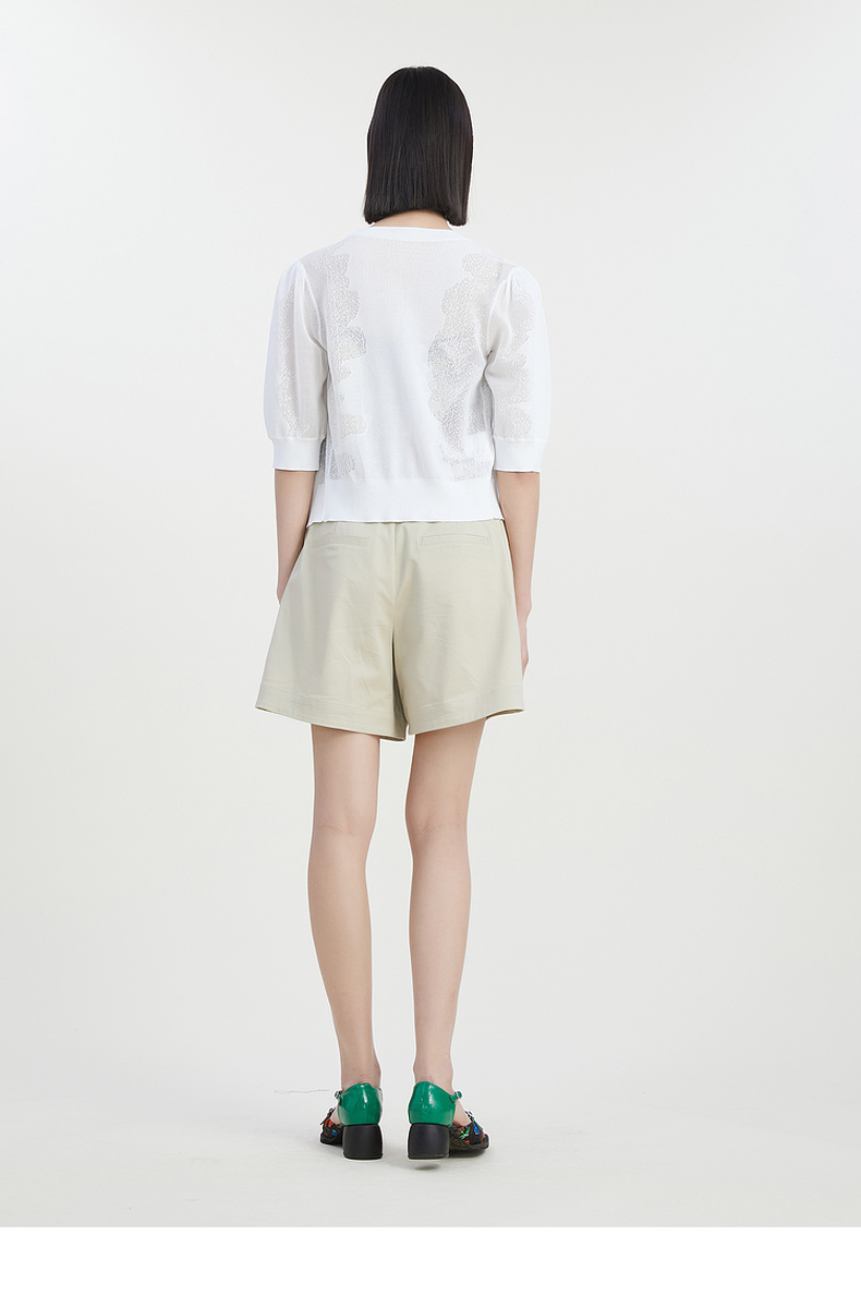 谜底针织衫短袖女2023夏季新款小清新设计感V领针织开衫232MZ0856