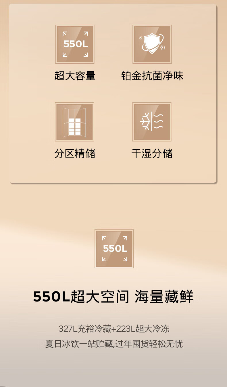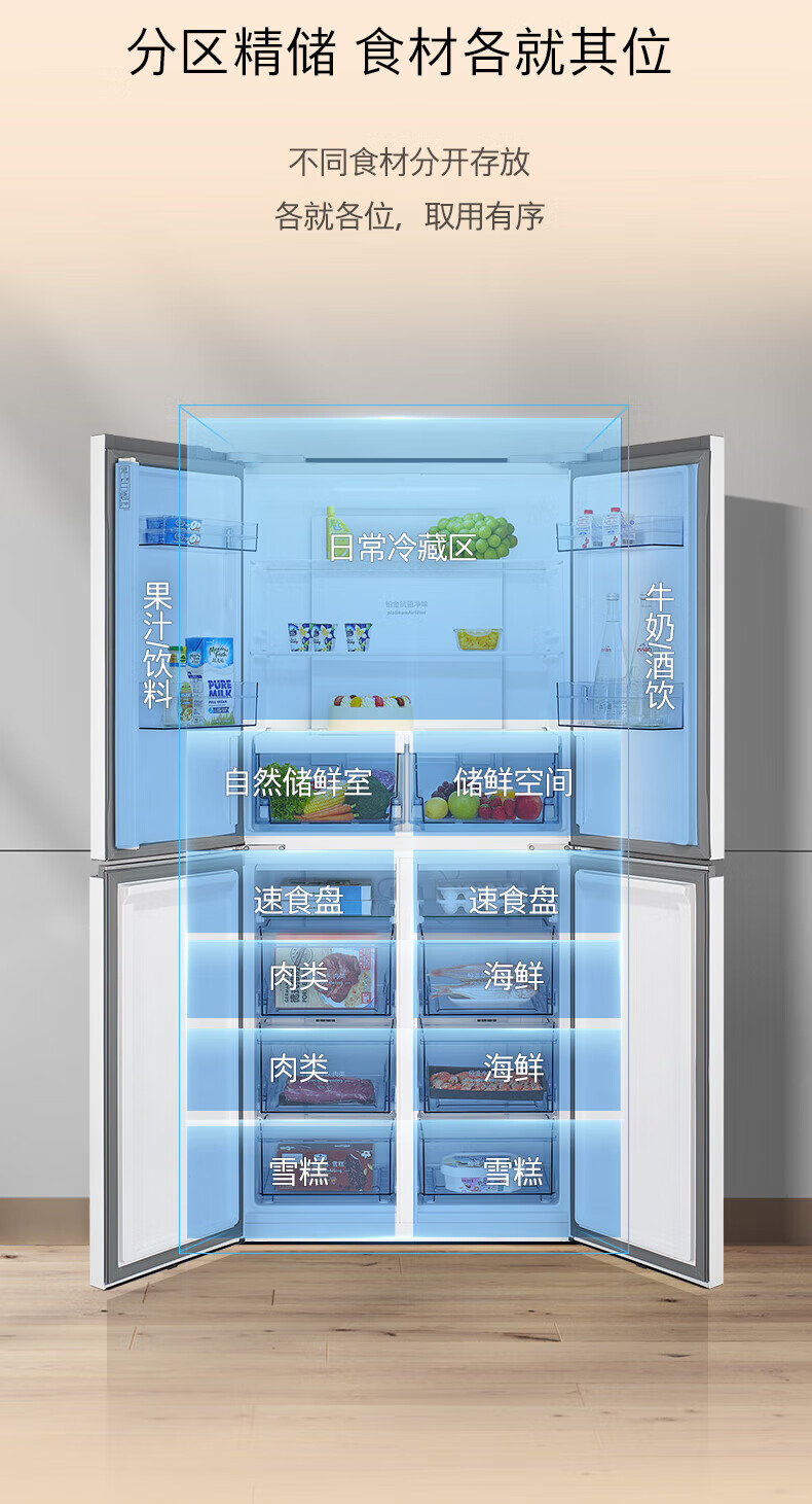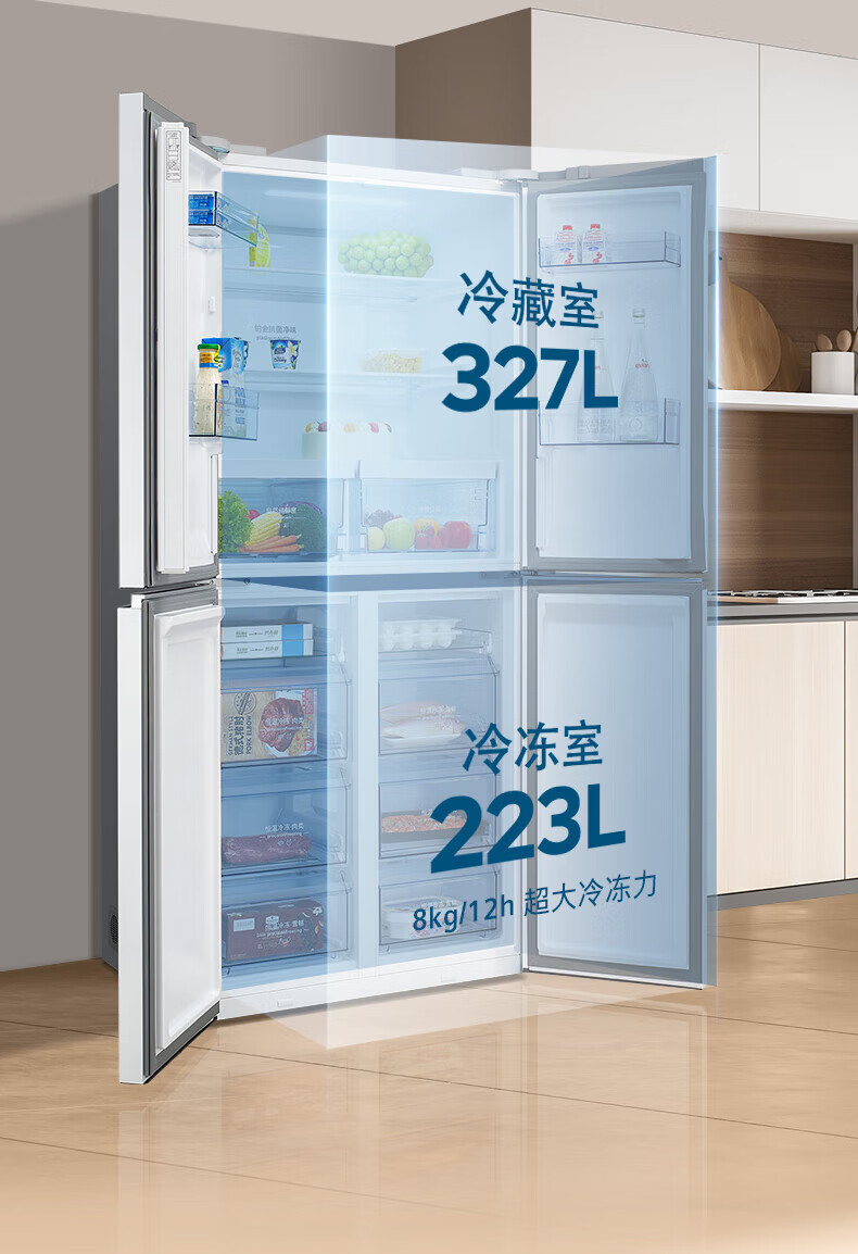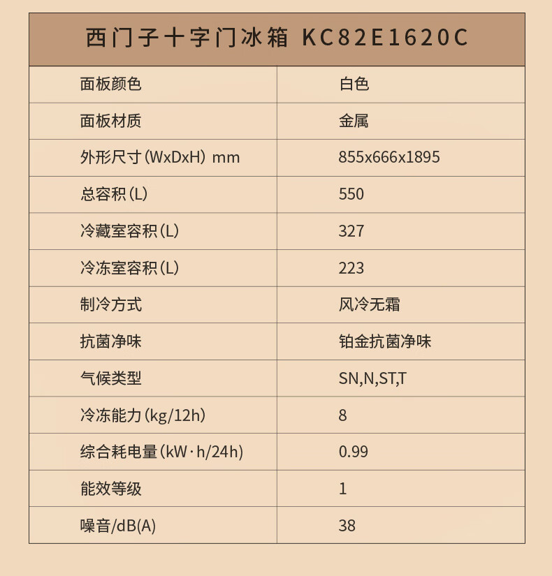 西门子(SIEMENS)家用大容量550升超薄嵌入式十字门四门双开门冰箱 风冷无霜 抗菌净味 金属门板白色 KC82E1620C