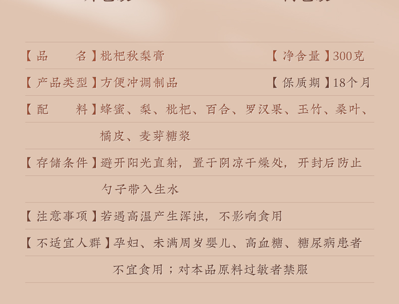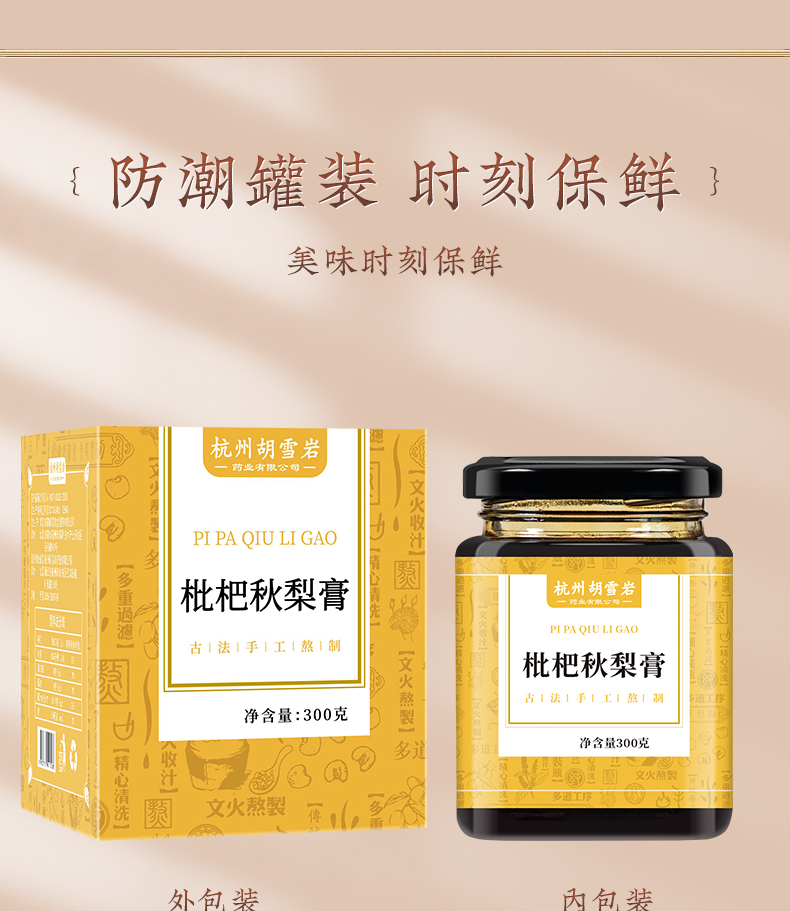 【推荐】江南胡雪岩枇杷秋梨膏300克 传统工艺 手工熬制 新鲜原材 均衡配比