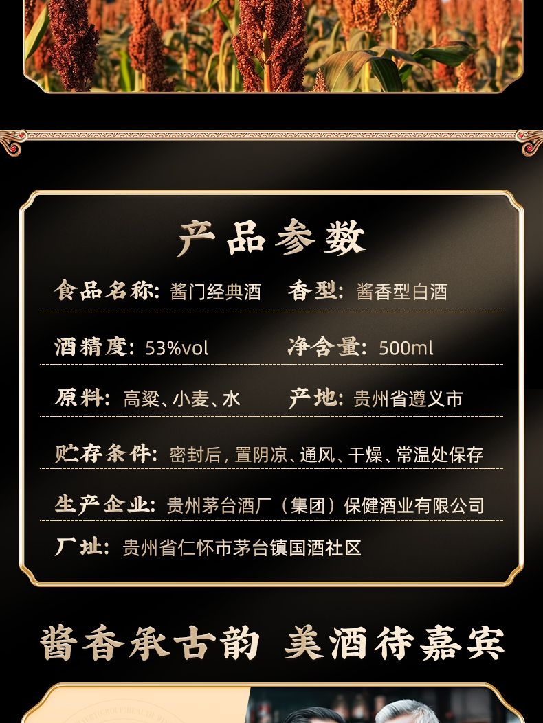 茅台集团 酱门经典匠工 53度酱香型白酒 整箱500ml*6瓶包邮