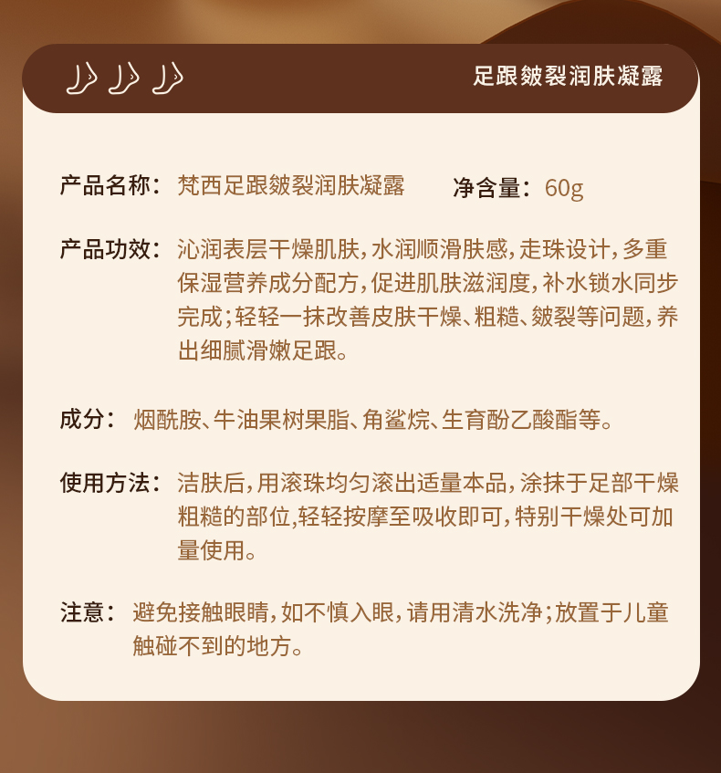 【金币兑换】梵西足跟皴裂凝露滚珠脚后跟防干裂修护霜秋冬滋润足膜皲裂膏正品 60ml/瓶