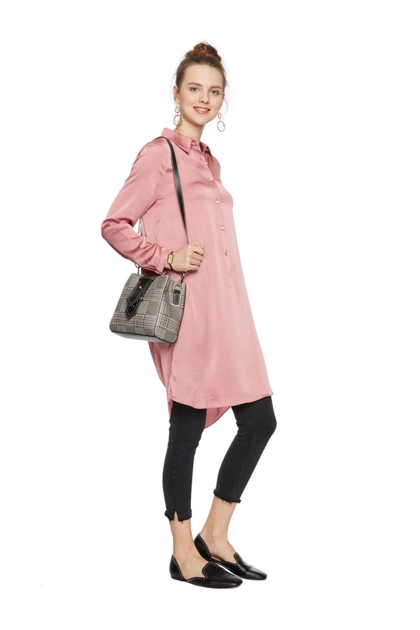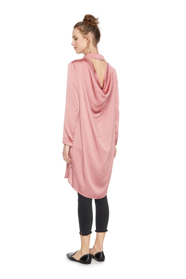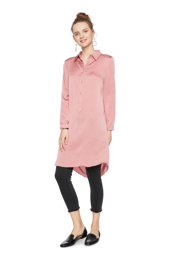 TONGRI曈日 桃粉色缎面长衬衫 5141