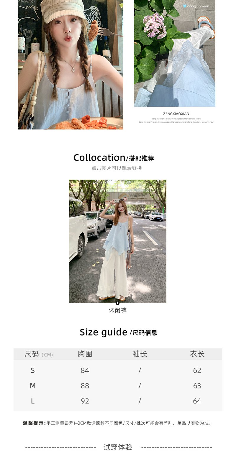 <曾小咸推荐>韩系浅色系不规则设计吊带背心