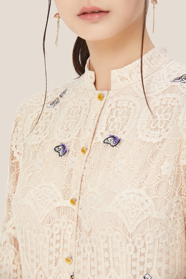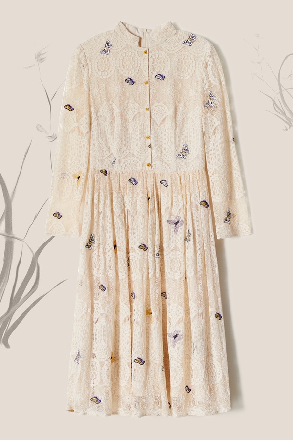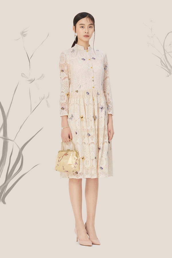 ELLA JADE 蝴蝶刺绣蕾丝连衣裙 8738