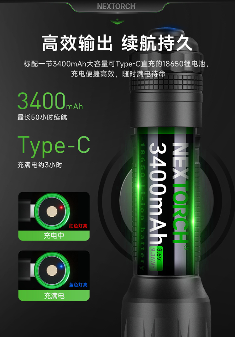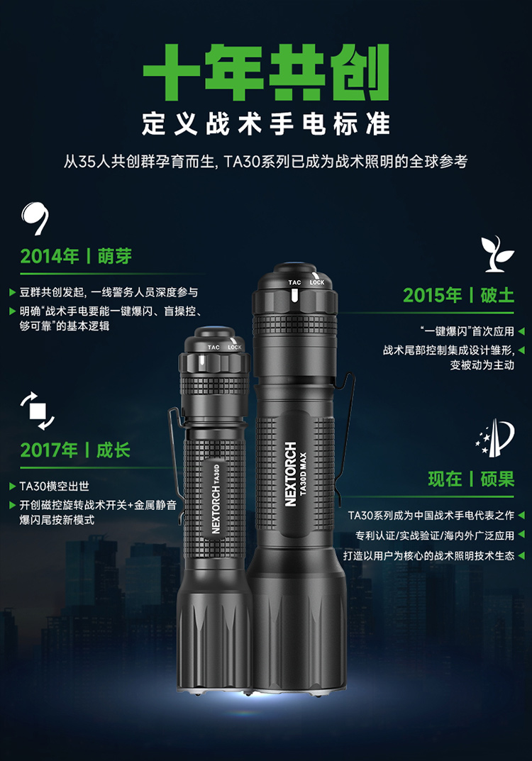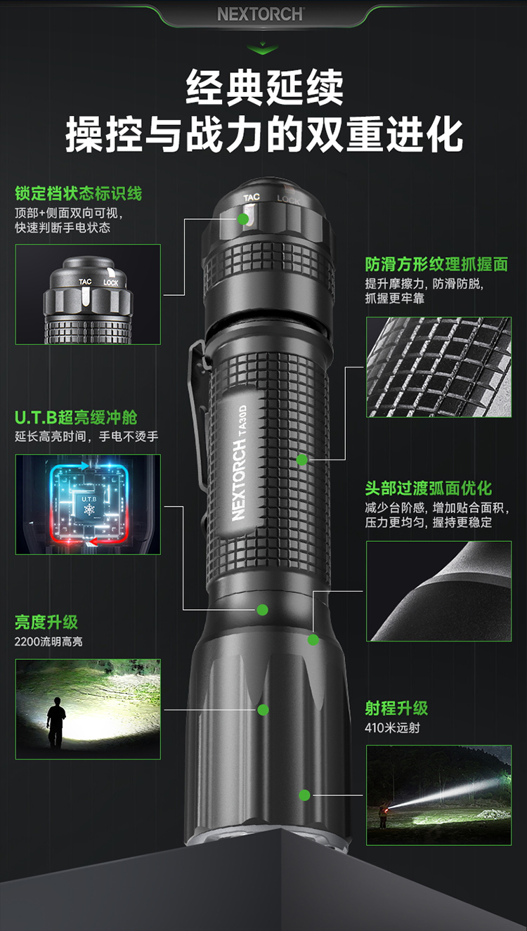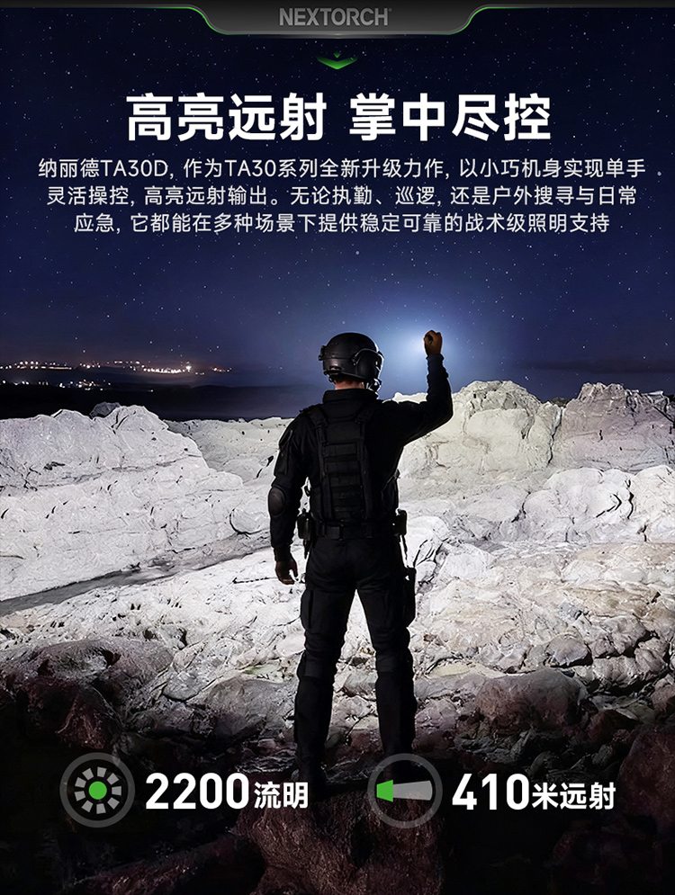【新品,送FR-1指环】TA30D战术手电筒磁控双阶战术开关一键爆闪