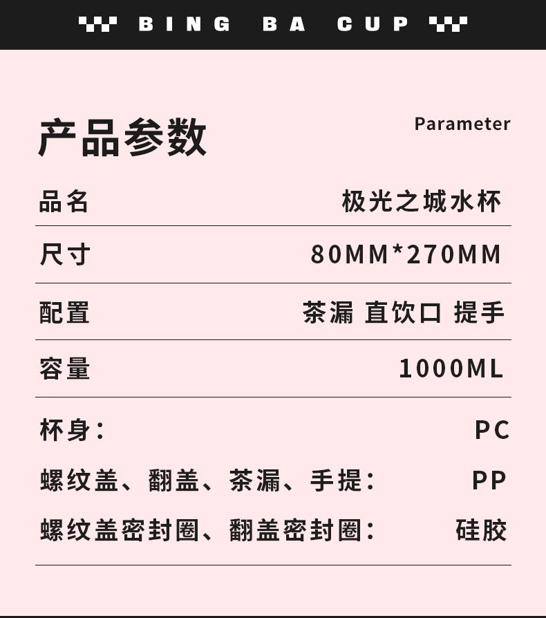 1000ml超大容量水杯!秒杀【小茶日记极光之城冰霸杯】