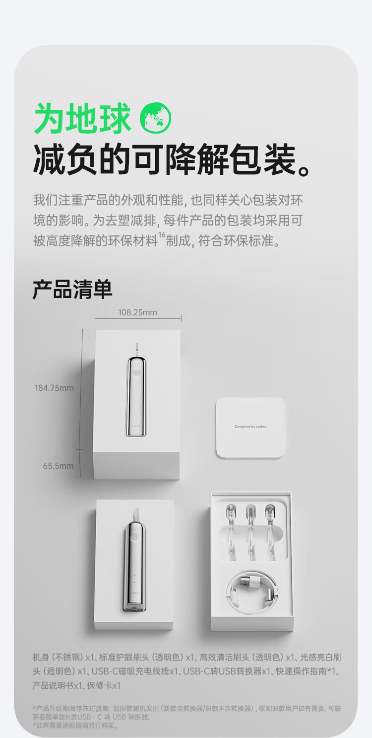 徕芬Laifen徕芬新一代扫振电动牙刷成人净齿护龈莱芬未来感不锈钢 镜面款