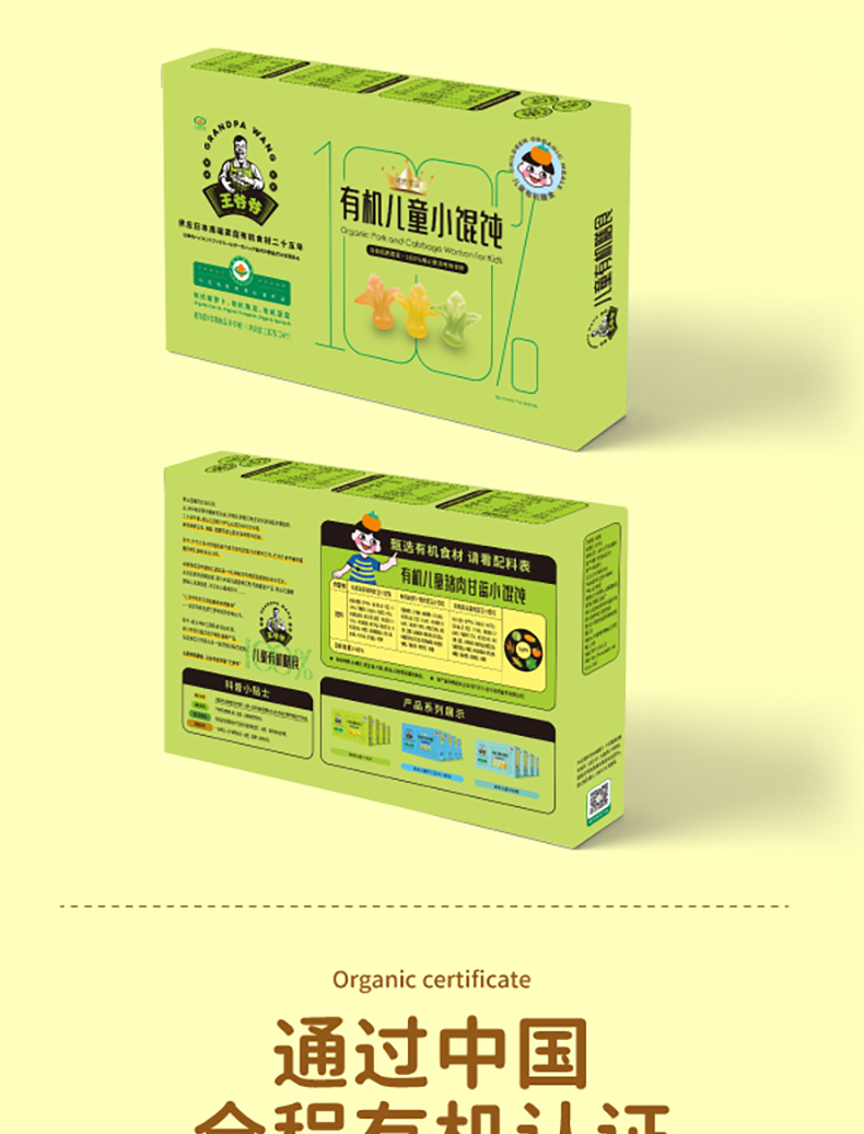 王爷爷有机儿童小馄饨180g(虾仁玉米馄饨、猪肉甘蓝馄饨)全链有机