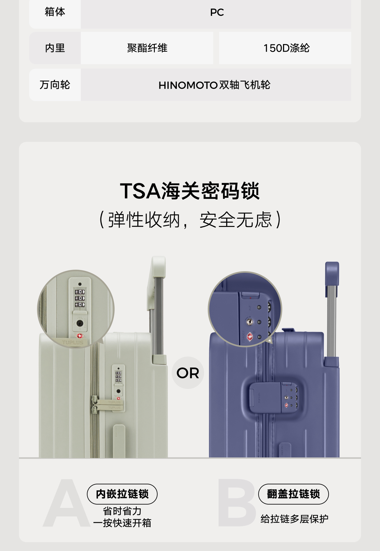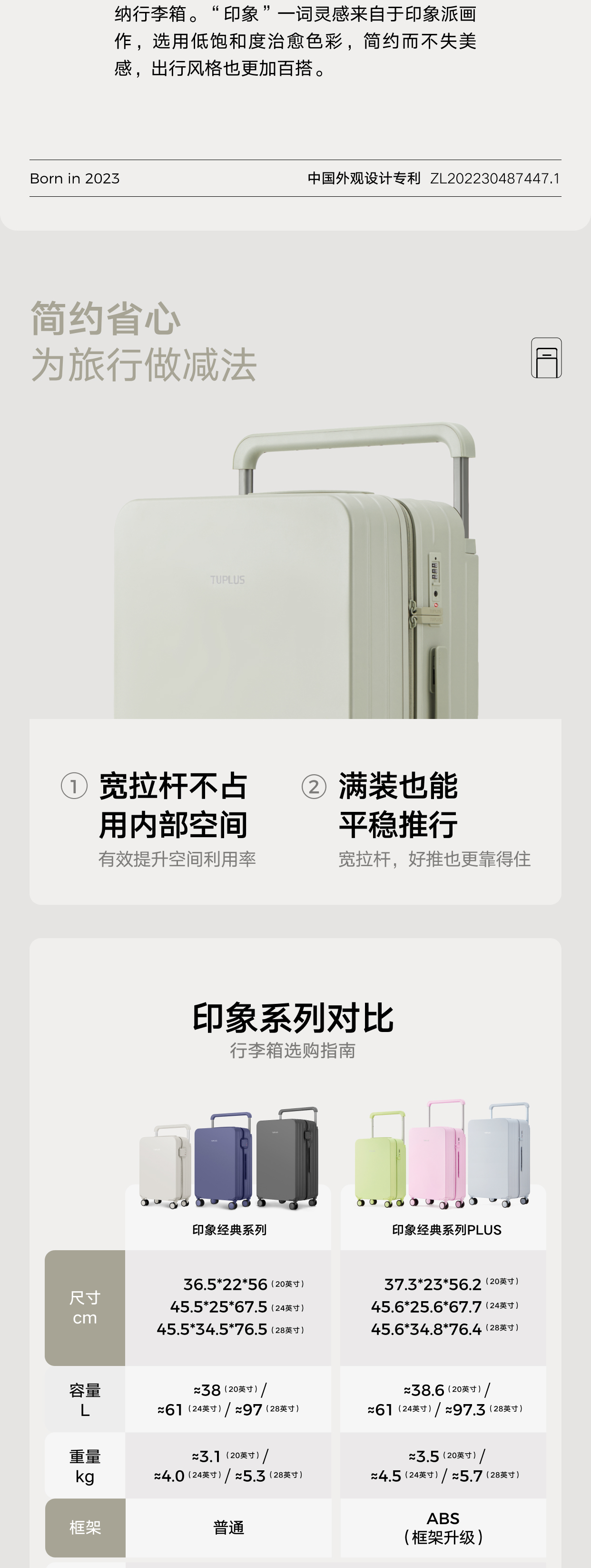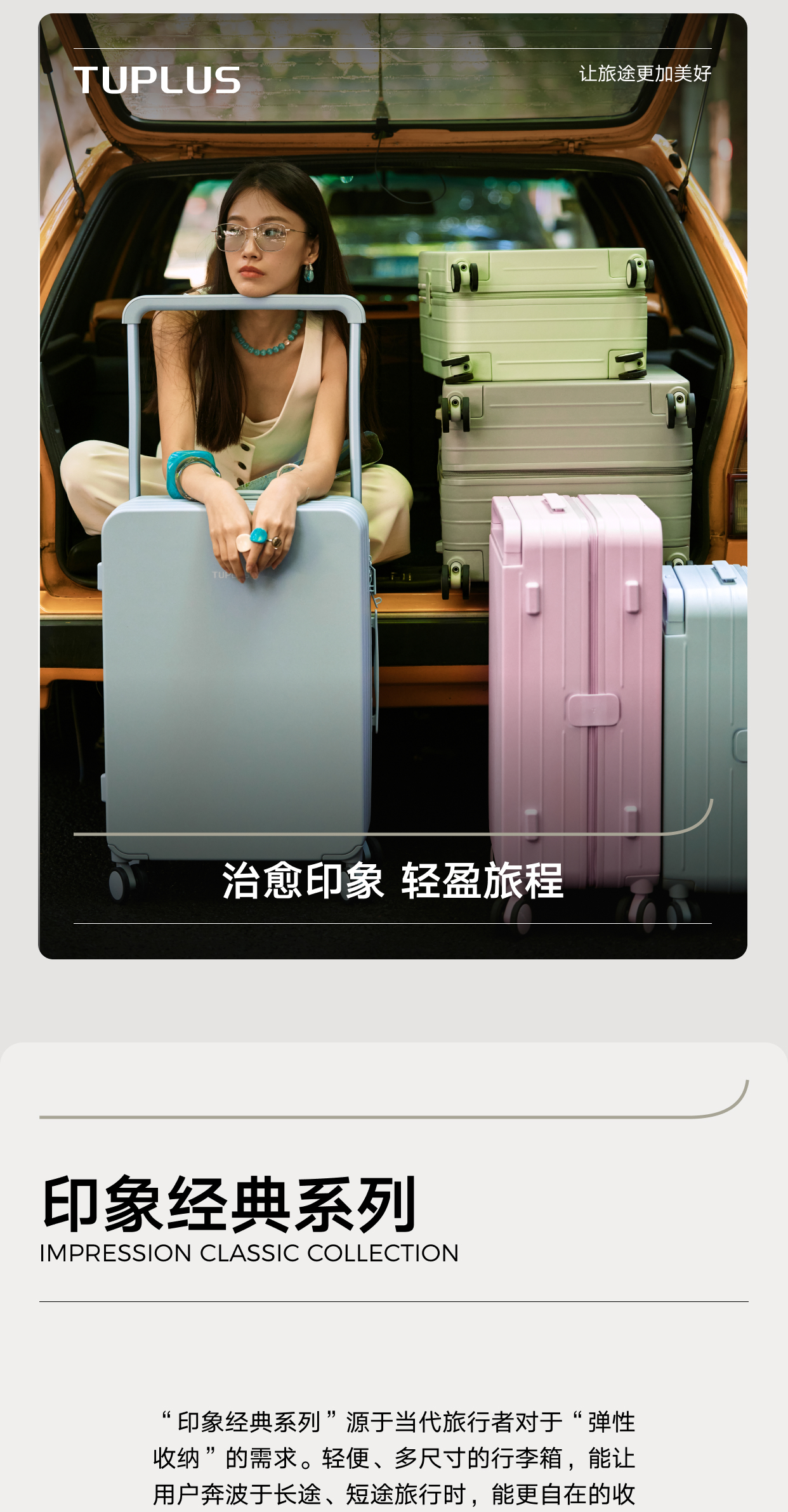 【出行好物丨途加 印象经典&PLUS 20/24/28寸后置宽拉杆行李箱】内嵌拉链锁,一按快速开箱省时省力,2段式拉杆设计适合不同身高的人,软胶把手握感舒适,多个颜色尺寸可选,总有一款适合你的旅行箱