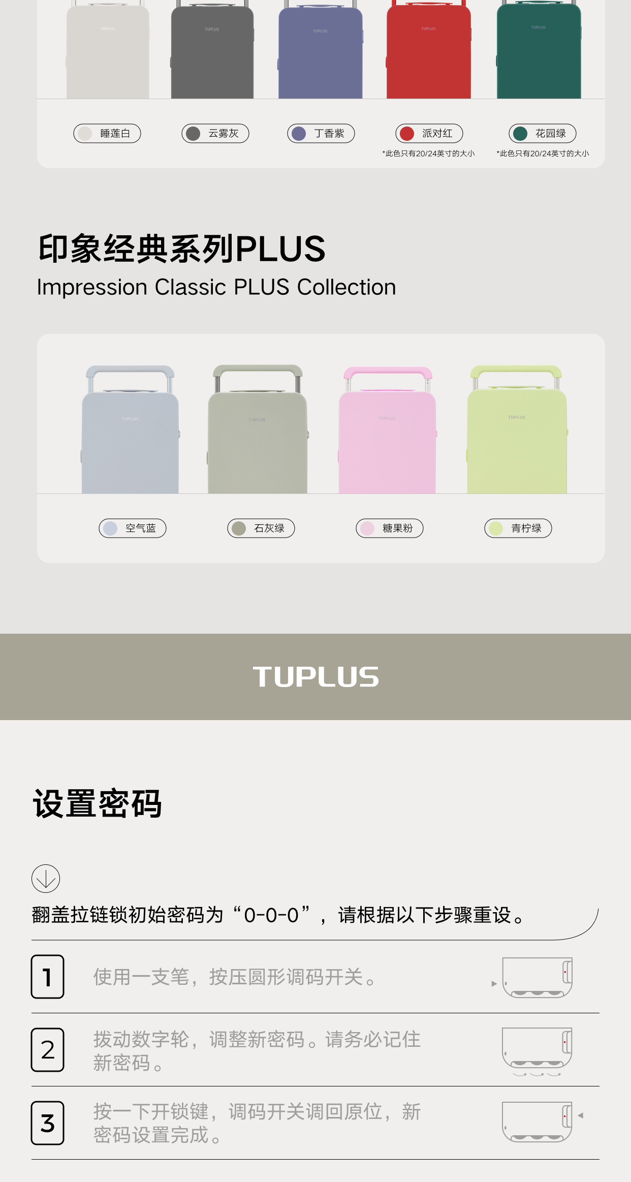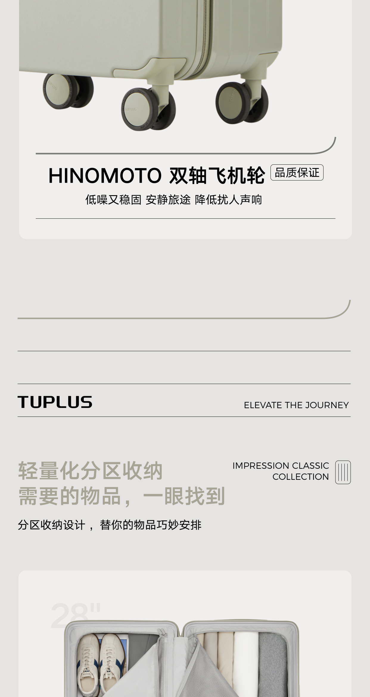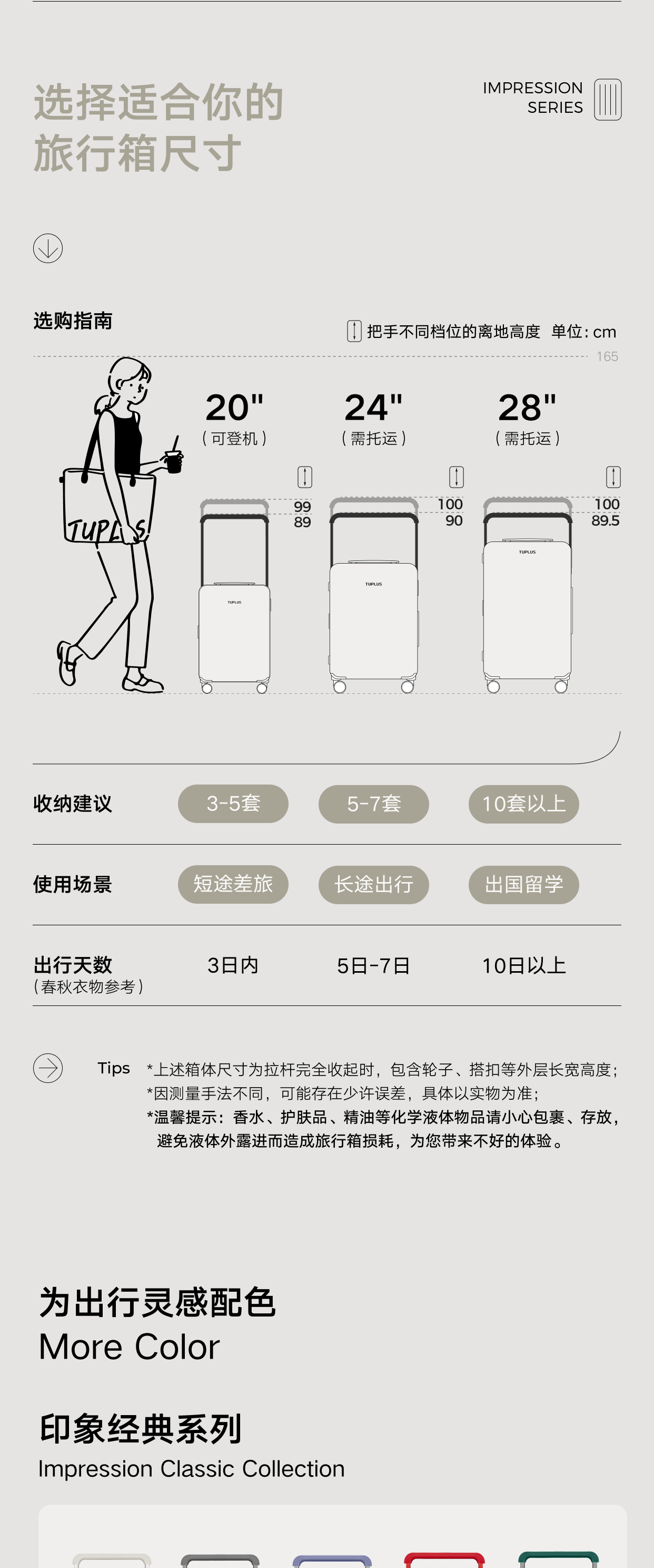 【出行好物丨途加 印象经典&PLUS 20/24/28寸后置宽拉杆行李箱】内嵌拉链锁,一按快速开箱省时省力,2段式拉杆设计适合不同身高的人,软胶把手握感舒适,多个颜色尺寸可选,总有一款适合你的旅行箱