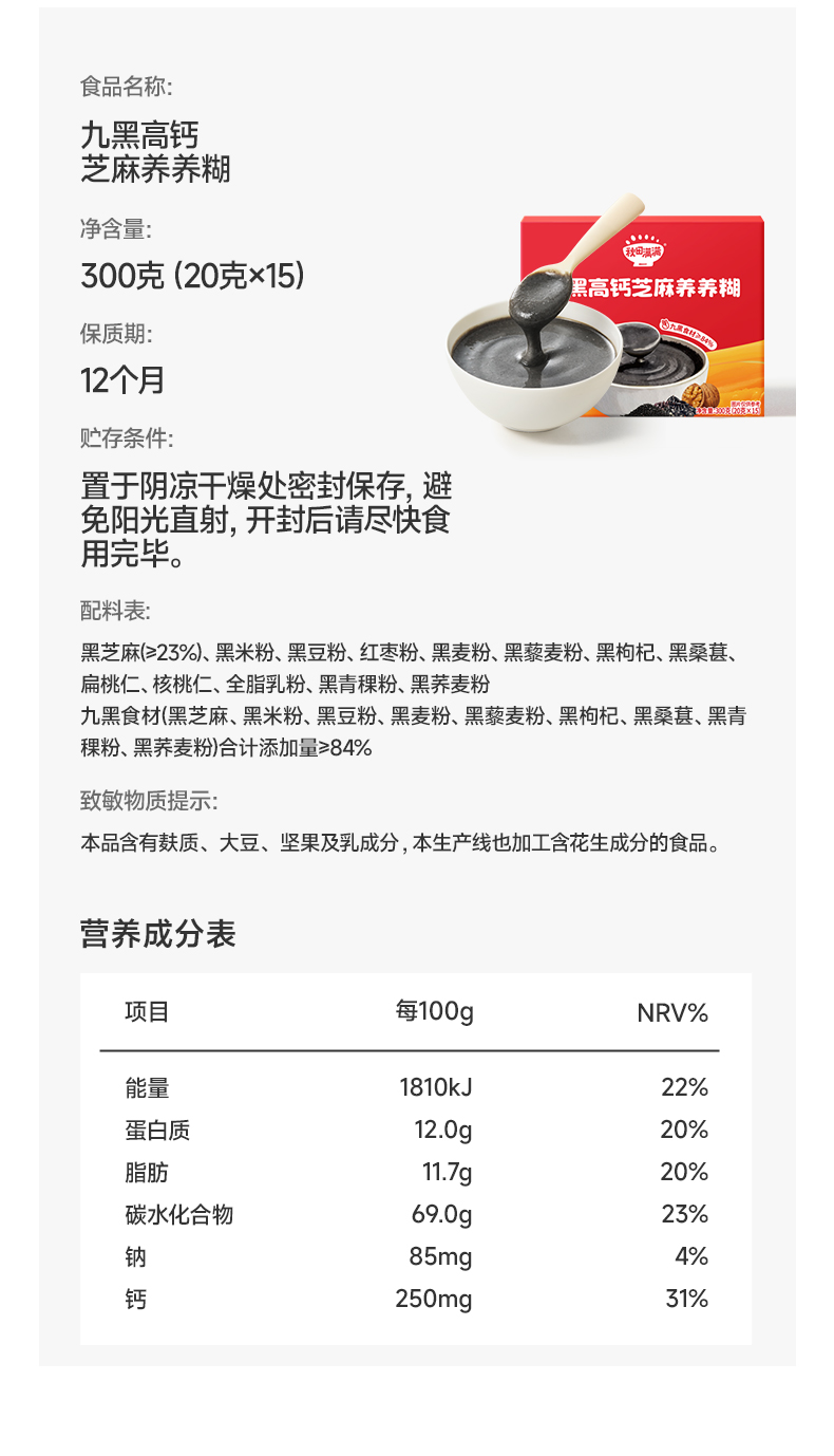 【1岁+】九黑高钙芝麻养养糊300g/南瓜糊300g