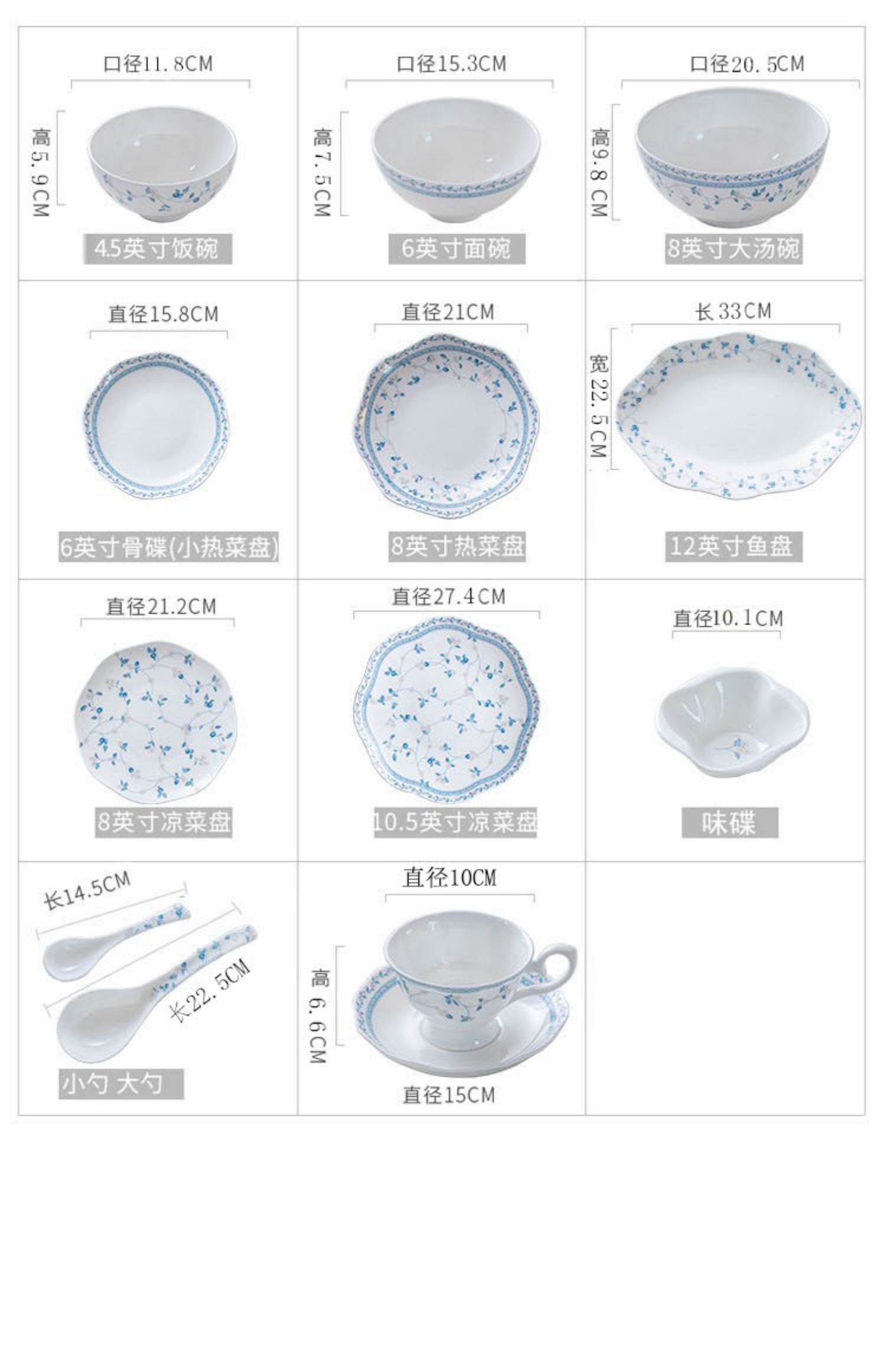 【餐具清仓特惠5折】雷澳娜/REONE釉中骨瓷碗碟套装家用餐具 繁花似锦8人用36头中餐具