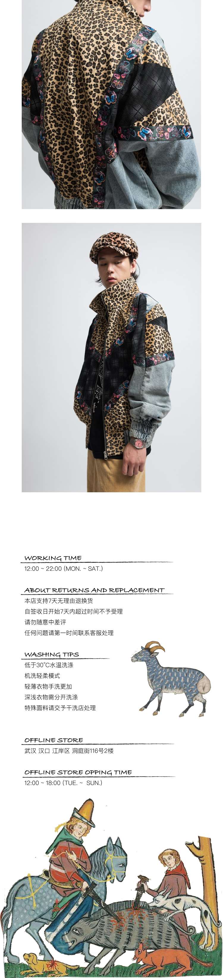 EPIC POETRY VAVA同款 洗水豹纹牛仔色块拼接蝴蝶复古重磅短夹克