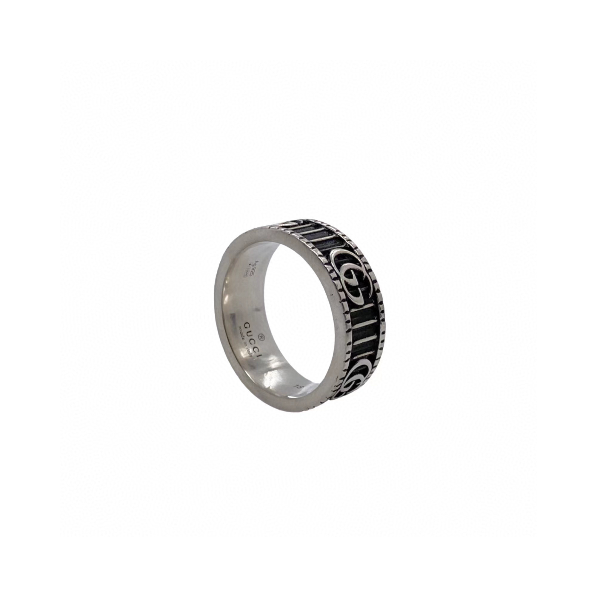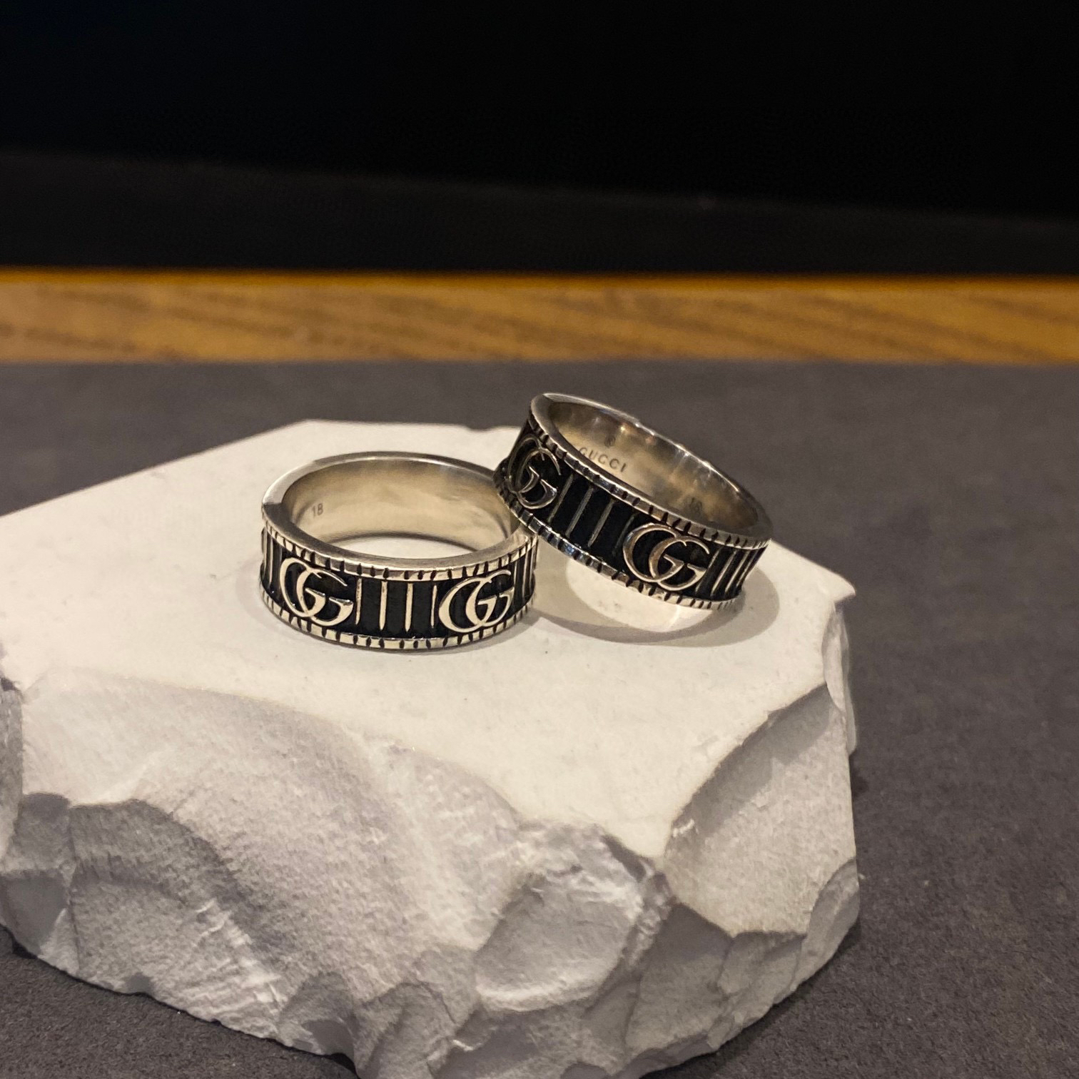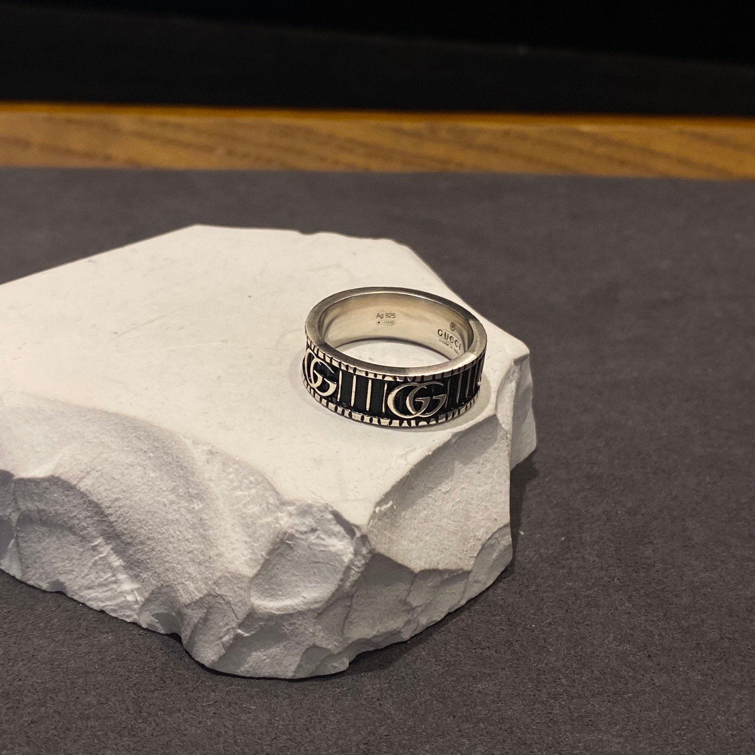 做旧效果双色纯银 立体双G和条纹图案 别具一格的双G与纯银珠宝系列的精美刻花图案相得益彰。双色效果与立体条纹设计形成对比美感,标志性的品牌元素为纤细的戒指平添层次 𝐒𝐢𝐳𝐞:10-24