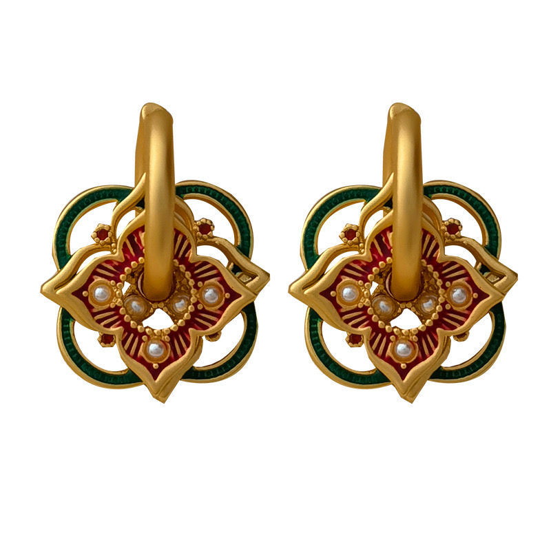 「小众设计!国潮复古」原创宫廷风耳环个性镂空彩绘耳扣一款多戴耳时尚饰品