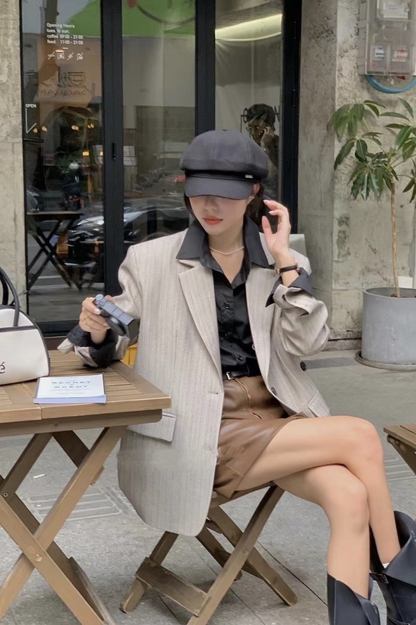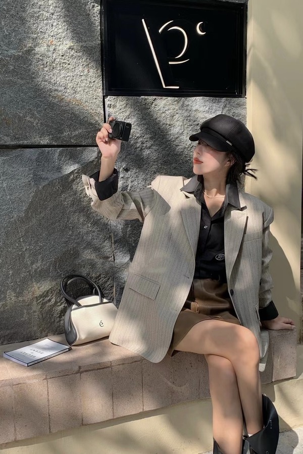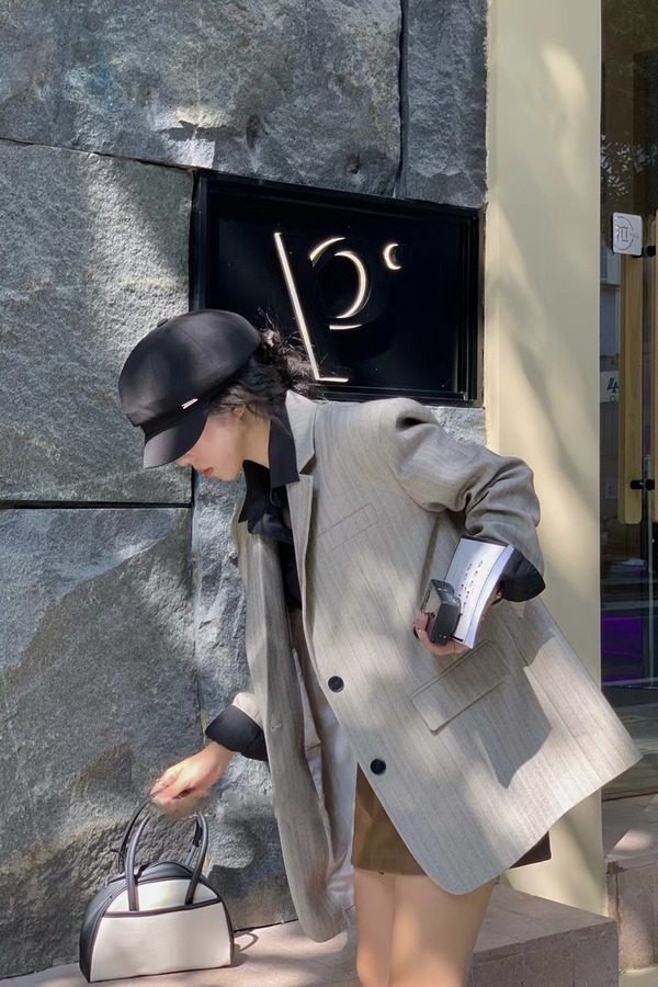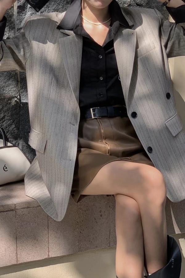 ESTELLICA polo领中长款宽松休闲西装外套 17291
