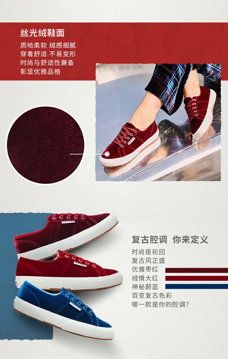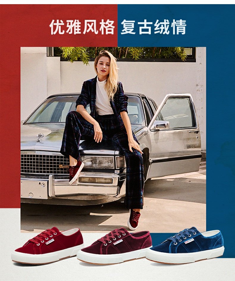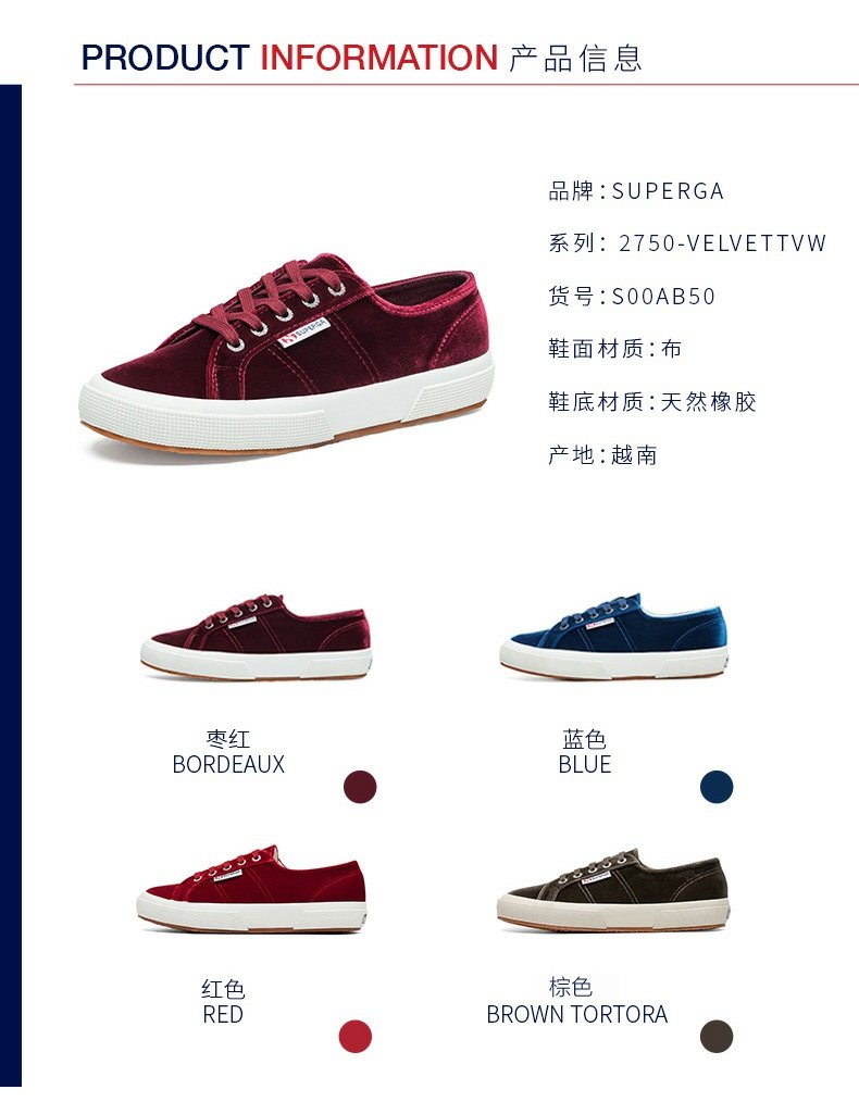 SUPERGA女低帮休闲鞋天鹅绒舒适休闲百搭系带平底鞋板鞋 S00AB50