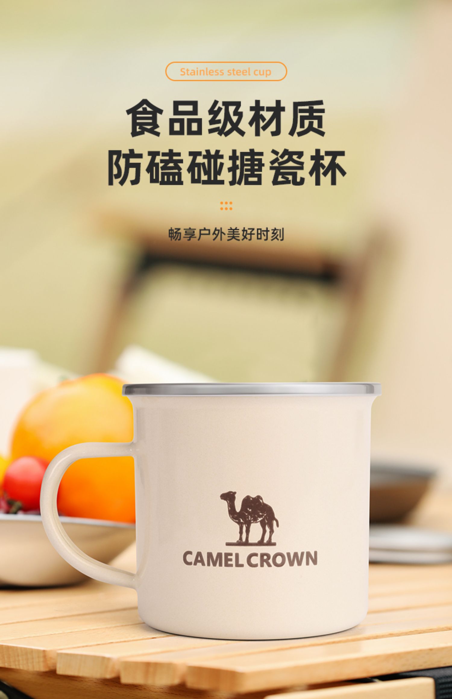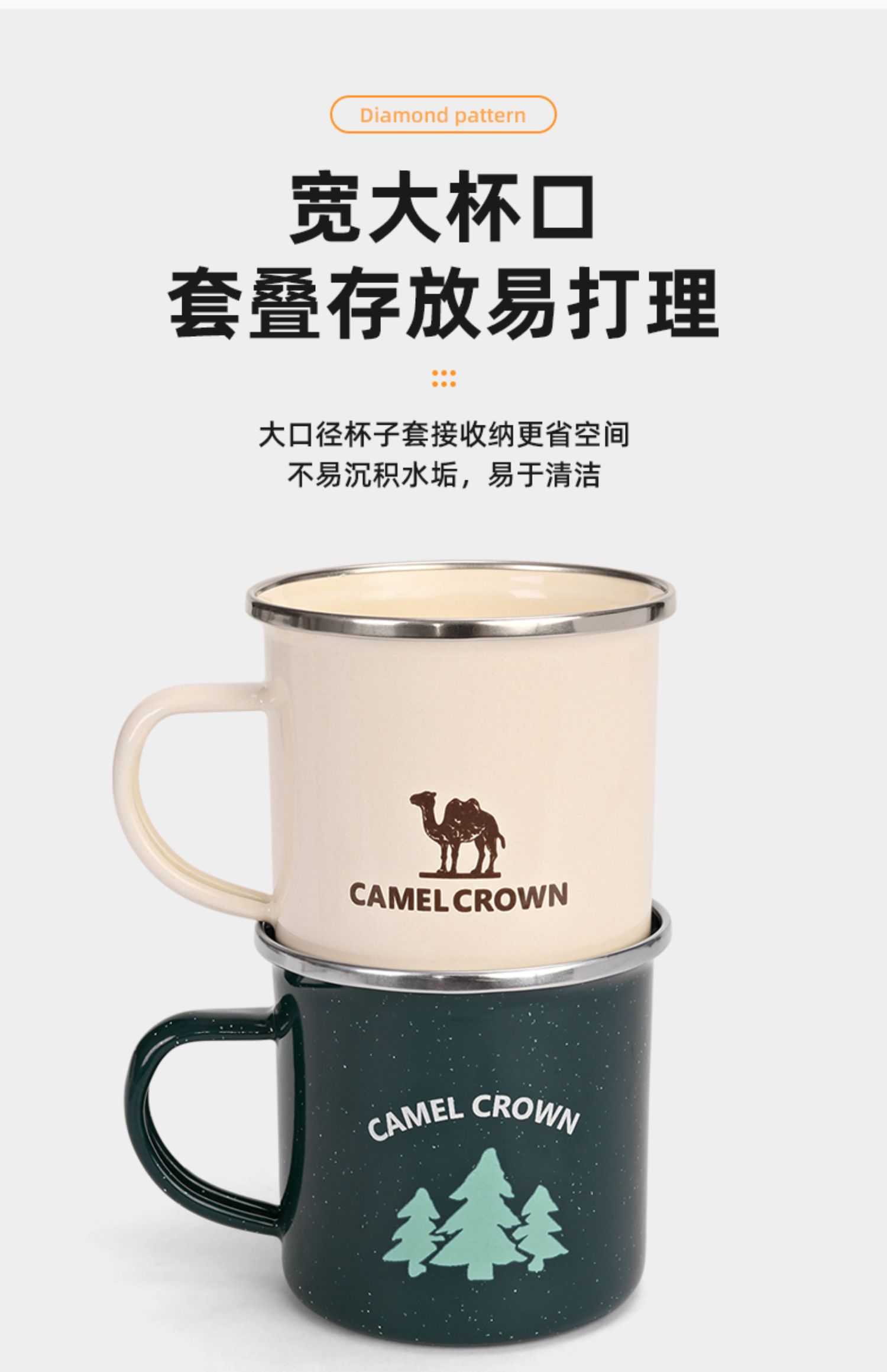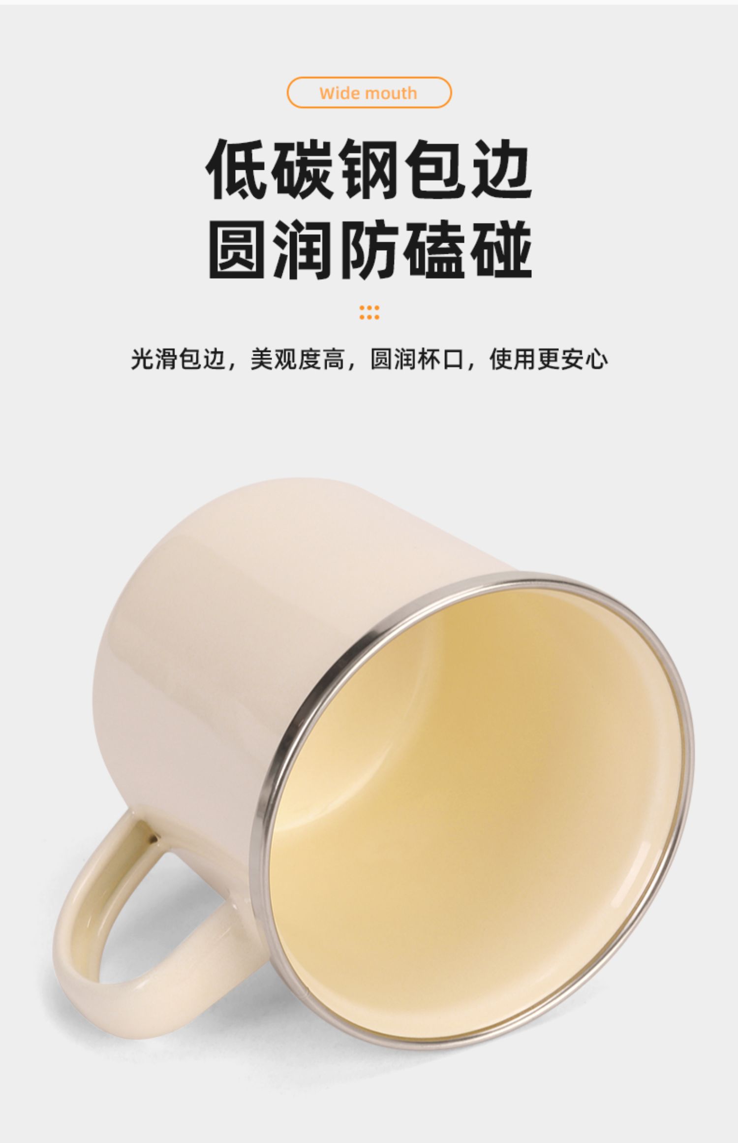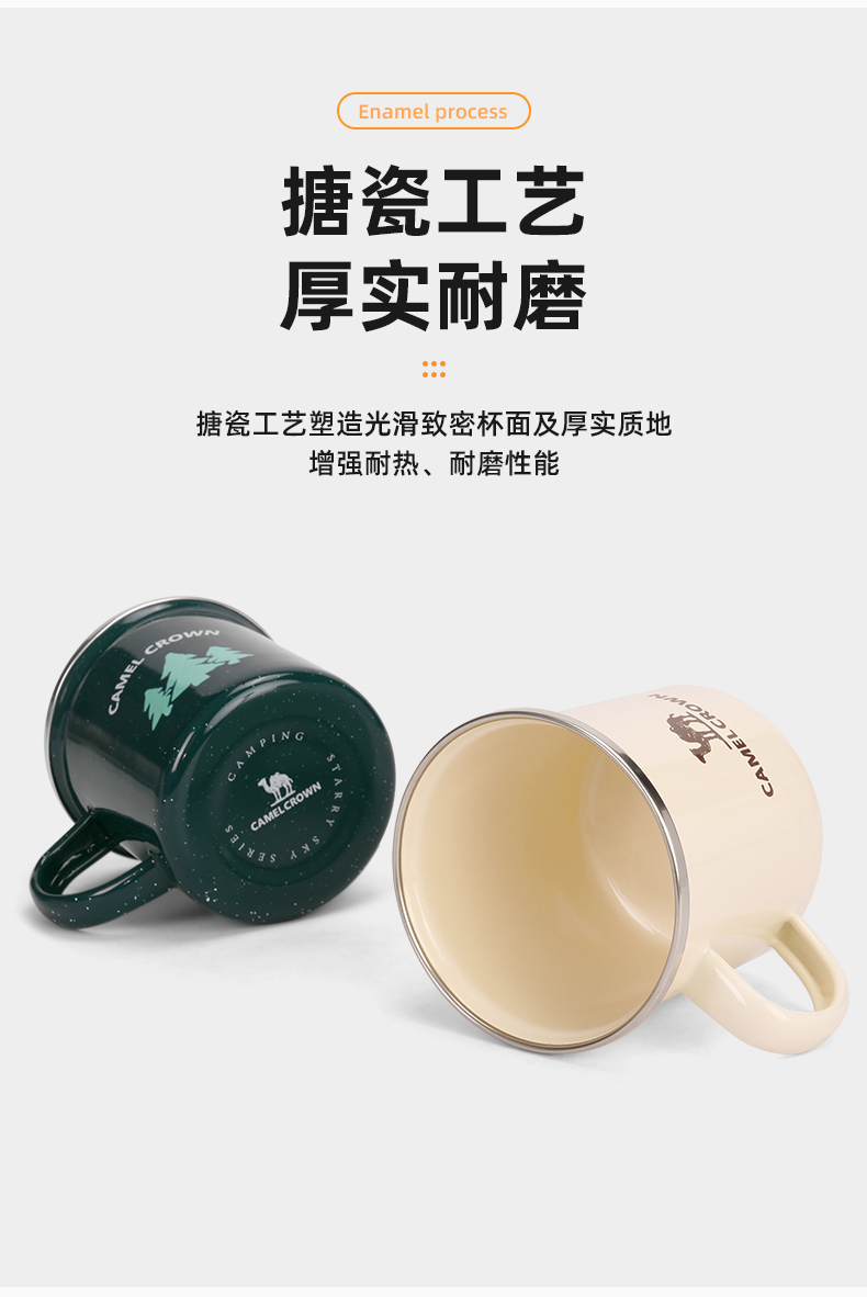 户外露营马克杯水杯户外杯子咖啡杯怀旧搪瓷杯带盖大容量老式茶缸 173BA9Y035