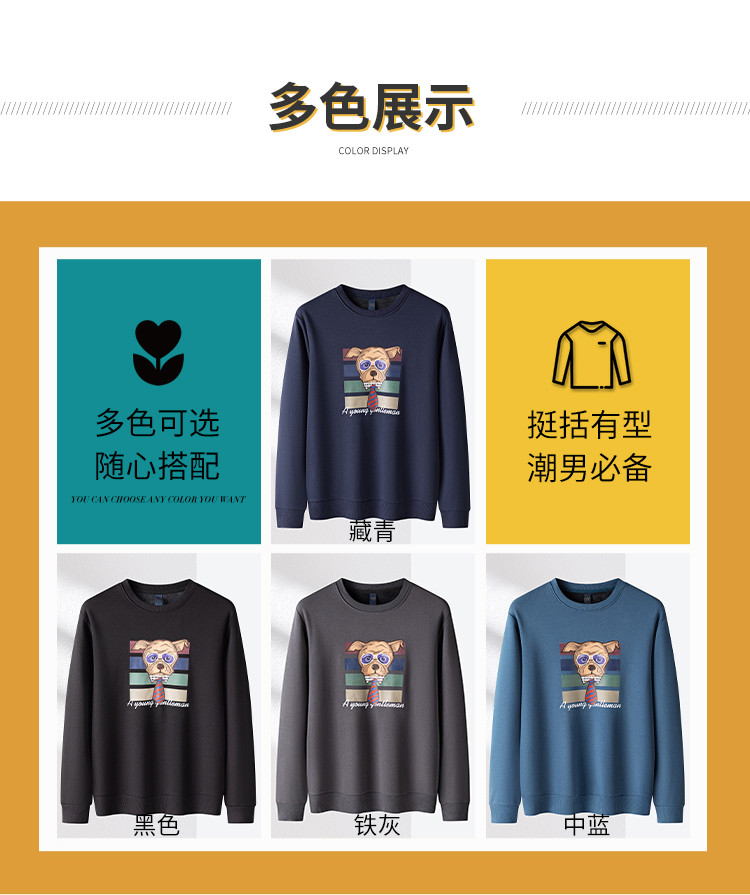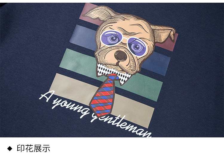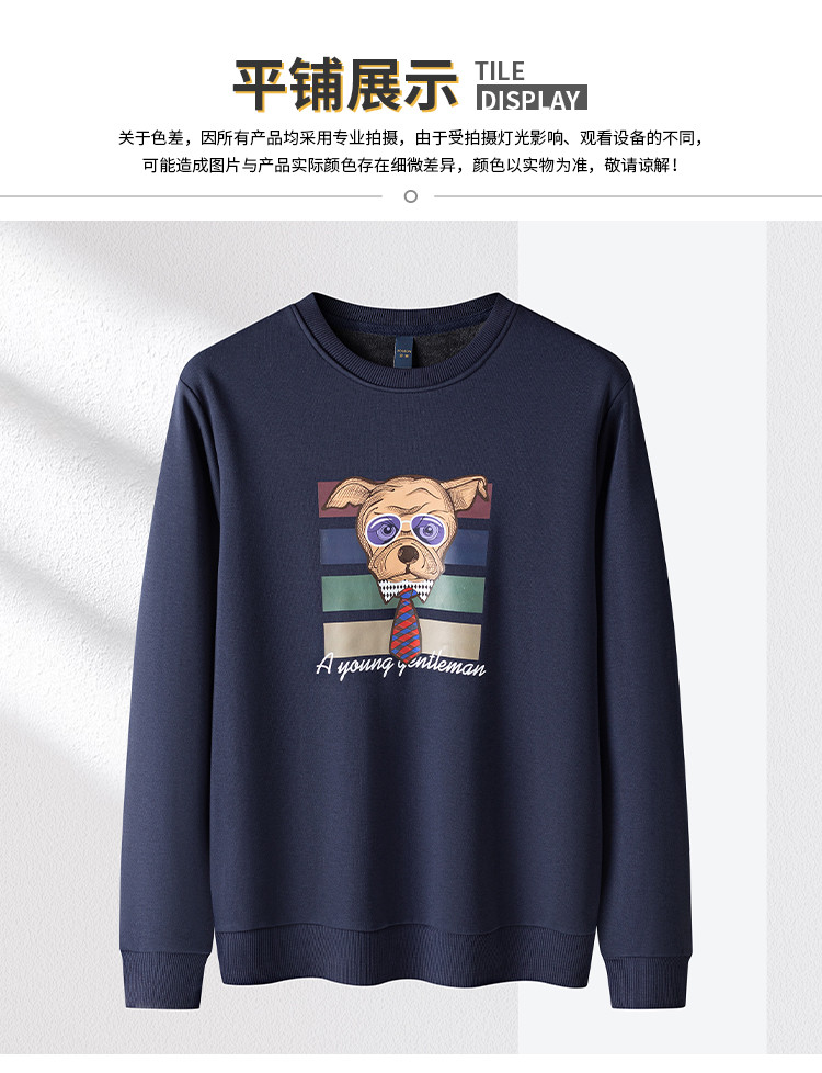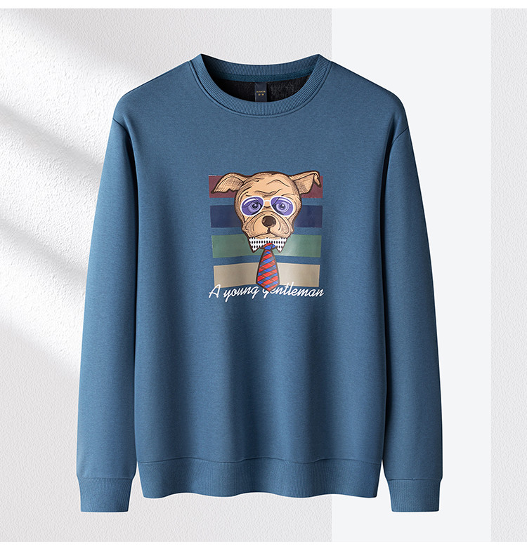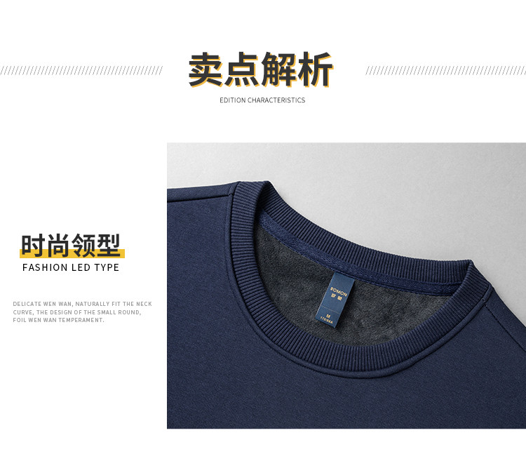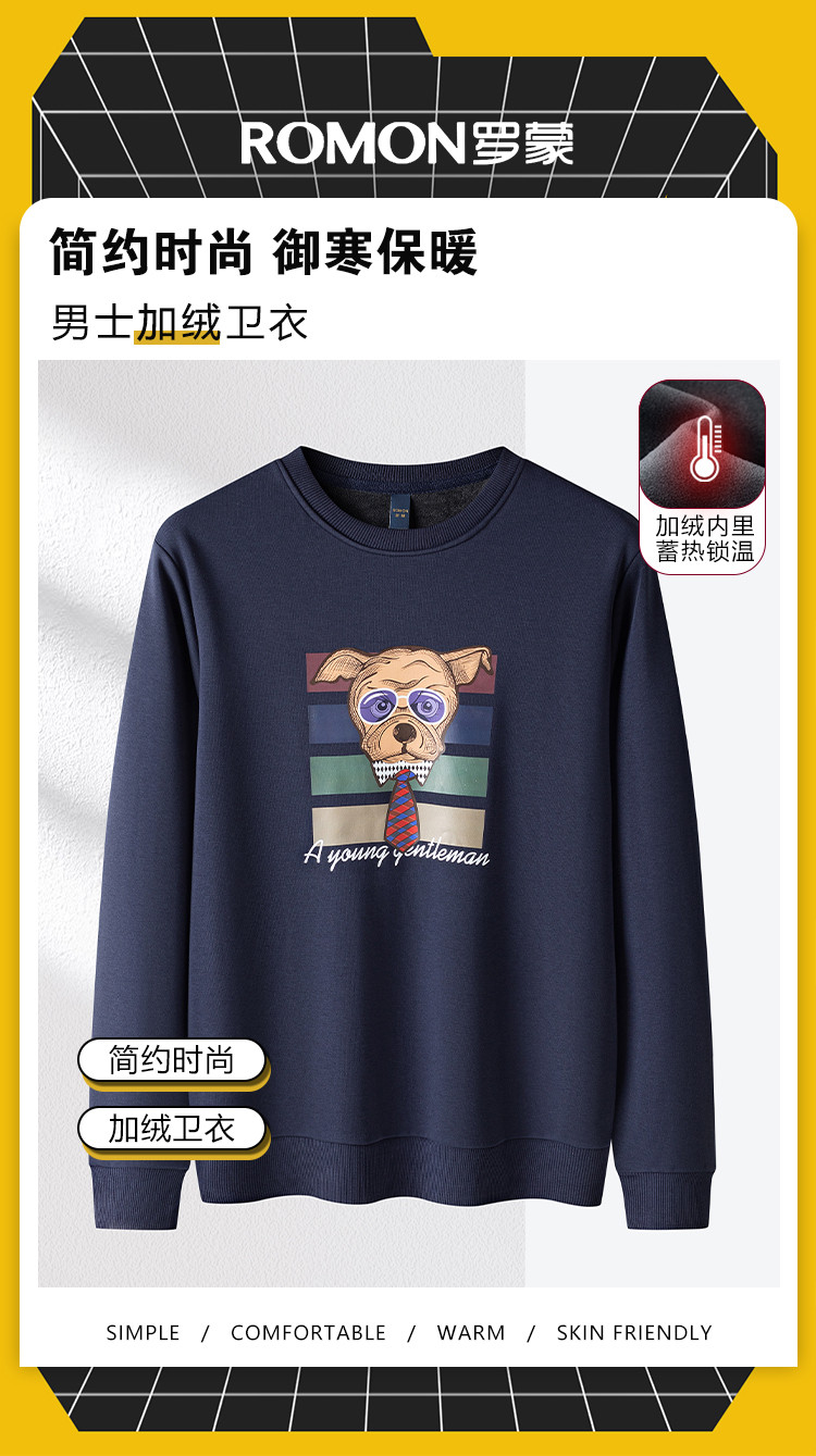 【加绒加厚 蚕丝混纺】罗蒙秋冬加绒卫衣男士时尚休闲潮流印花个性卫衣套头T恤男