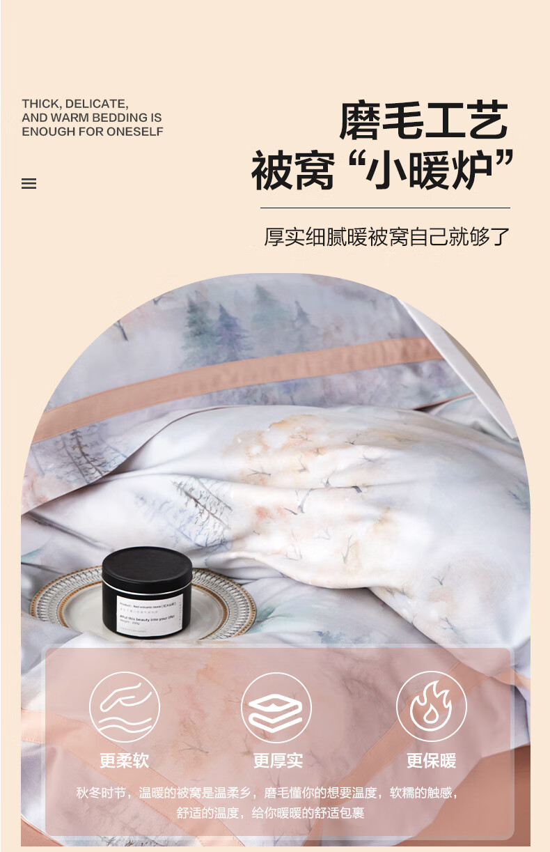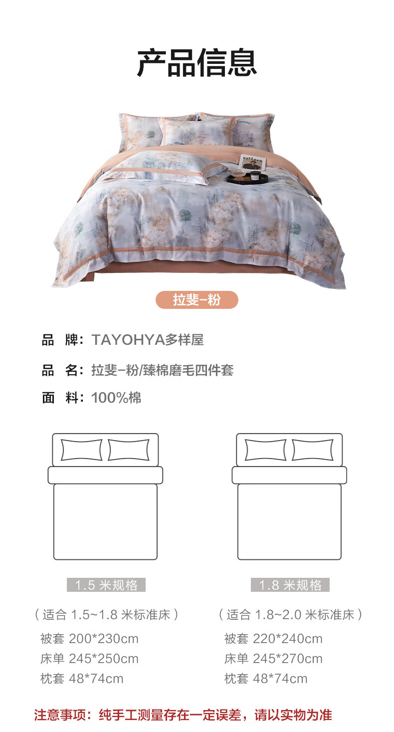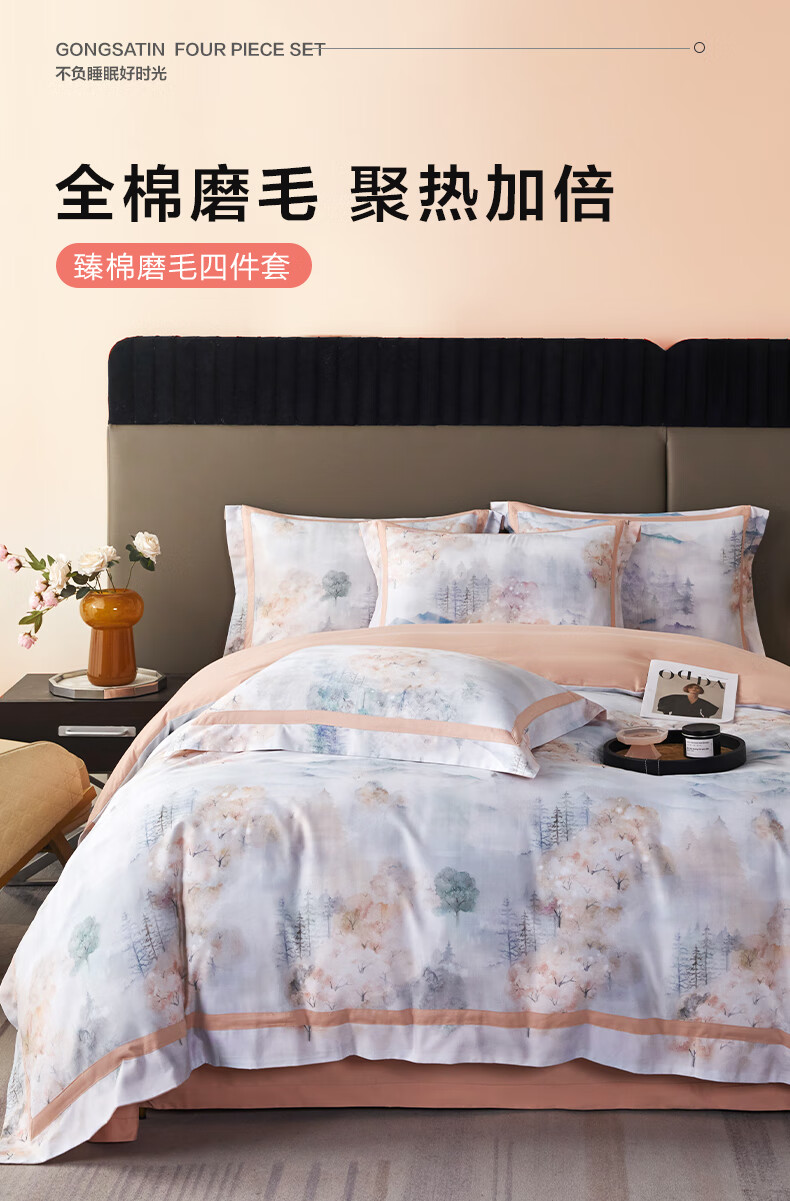 【多样屋专柜】多样屋拉斐-粉臻棉磨毛四件套全棉纯棉秋冬季床单加厚保暖被套 1.5/1.8m床单款
