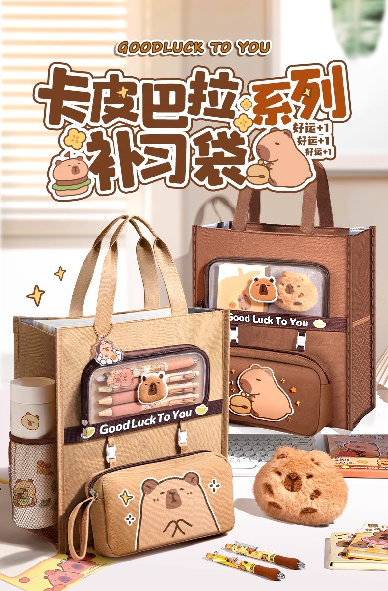 卡皮巴拉补习袋手提袋拎书袋学生补课包帆布书包小学生初中生书袋