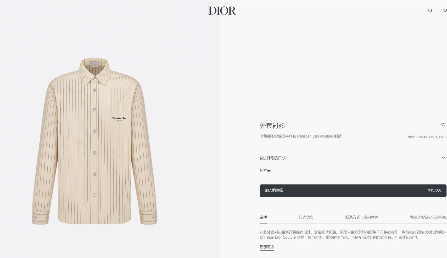【人字纹条纹刺绣衬衫】官网价:15500¥(1957C)