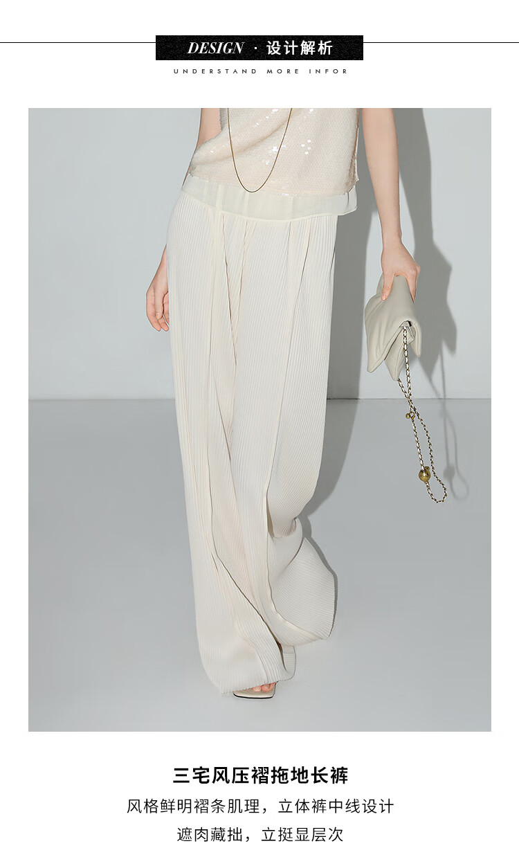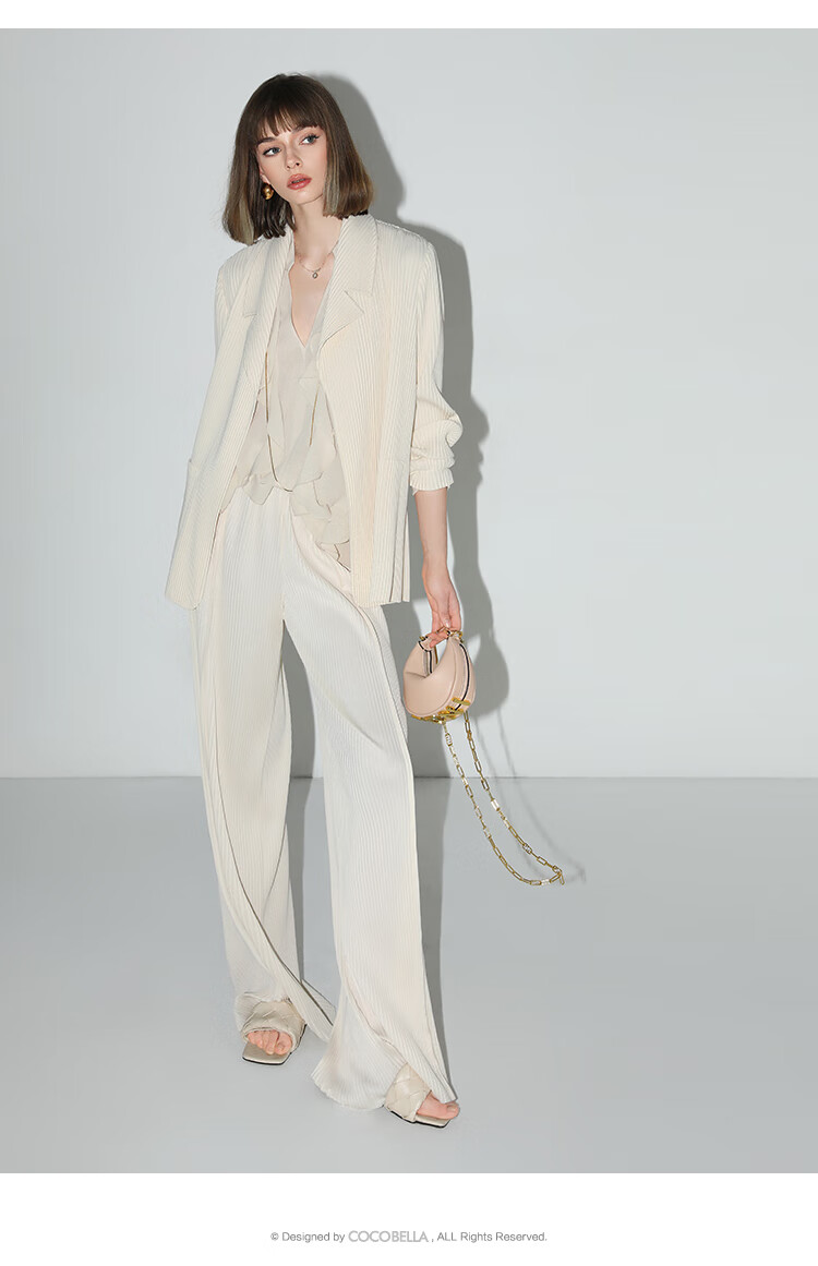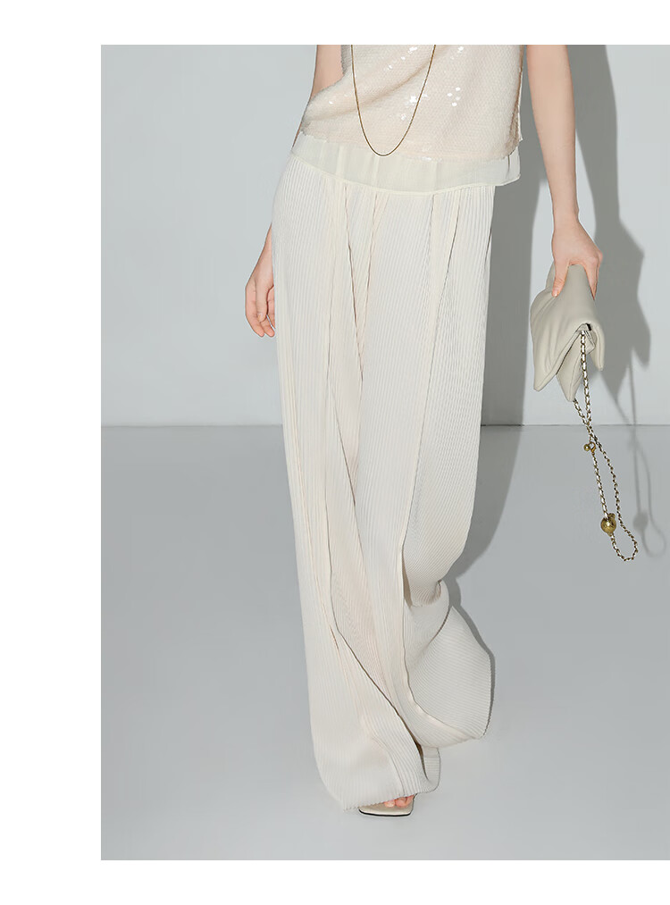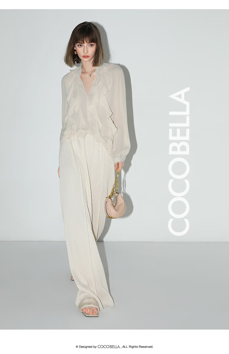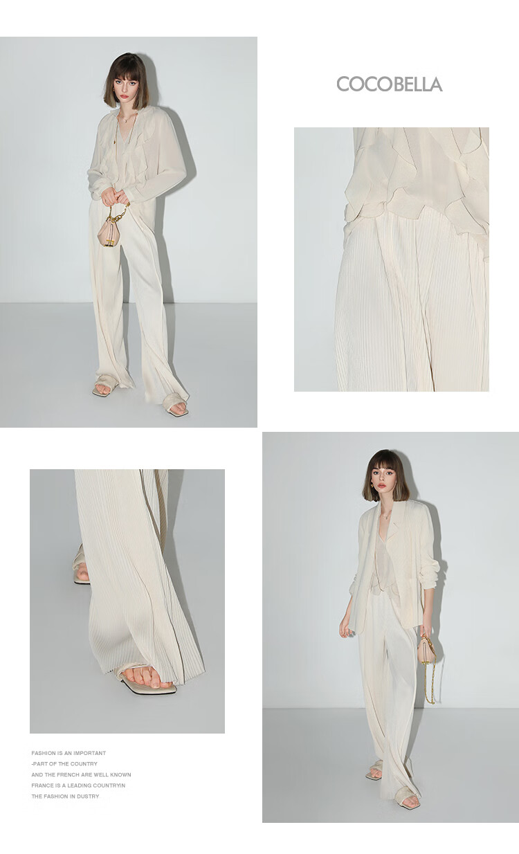 【秒杀】COCOBELLA重工压褶立体裤线阔腿裤女夏宽松垂坠休闲长裤PA626C