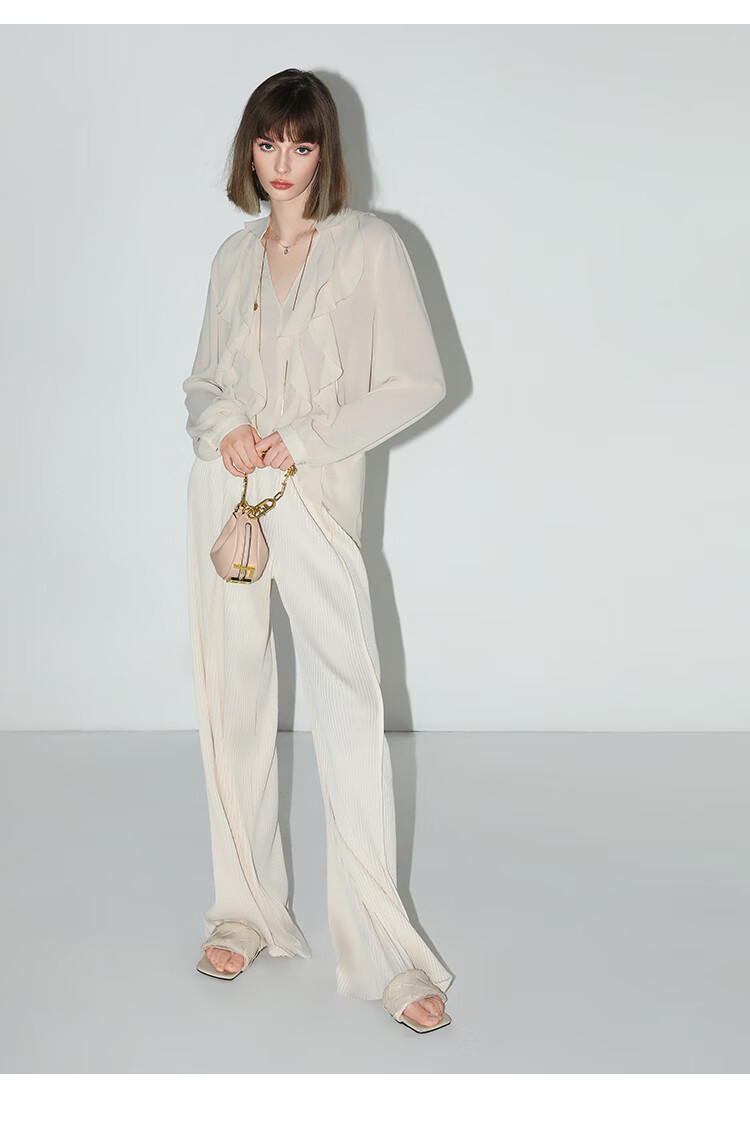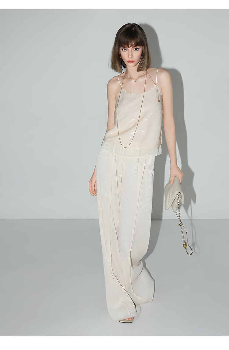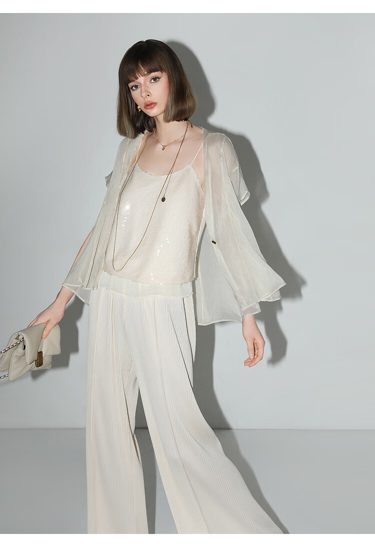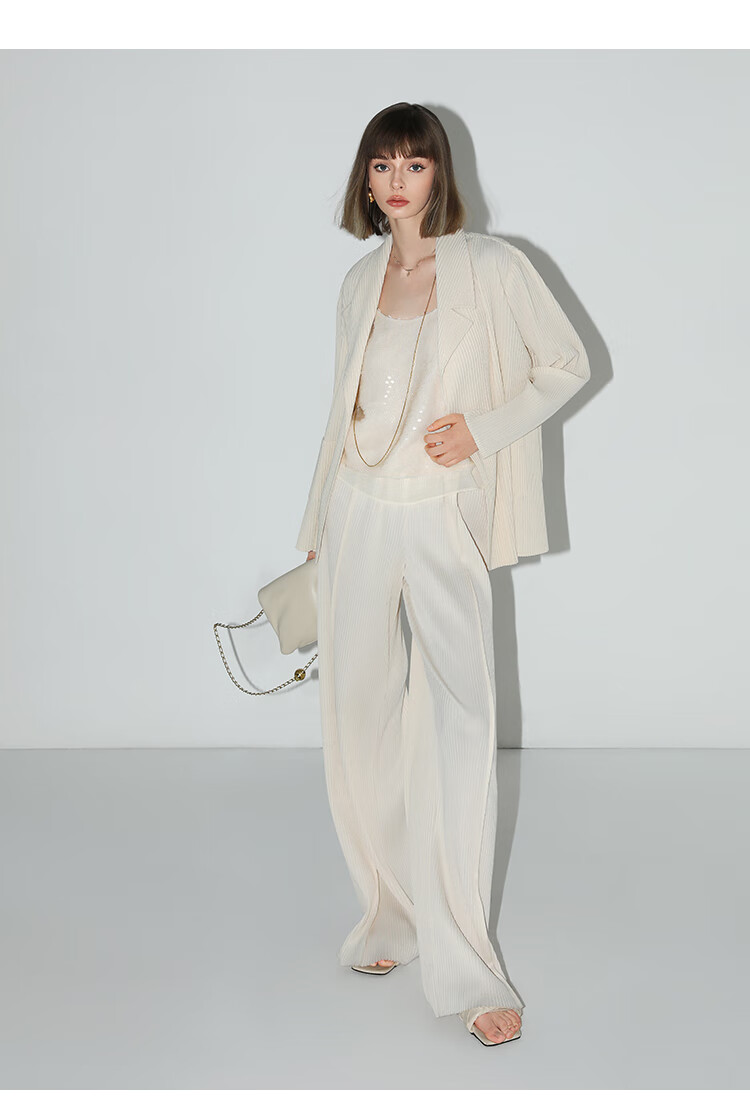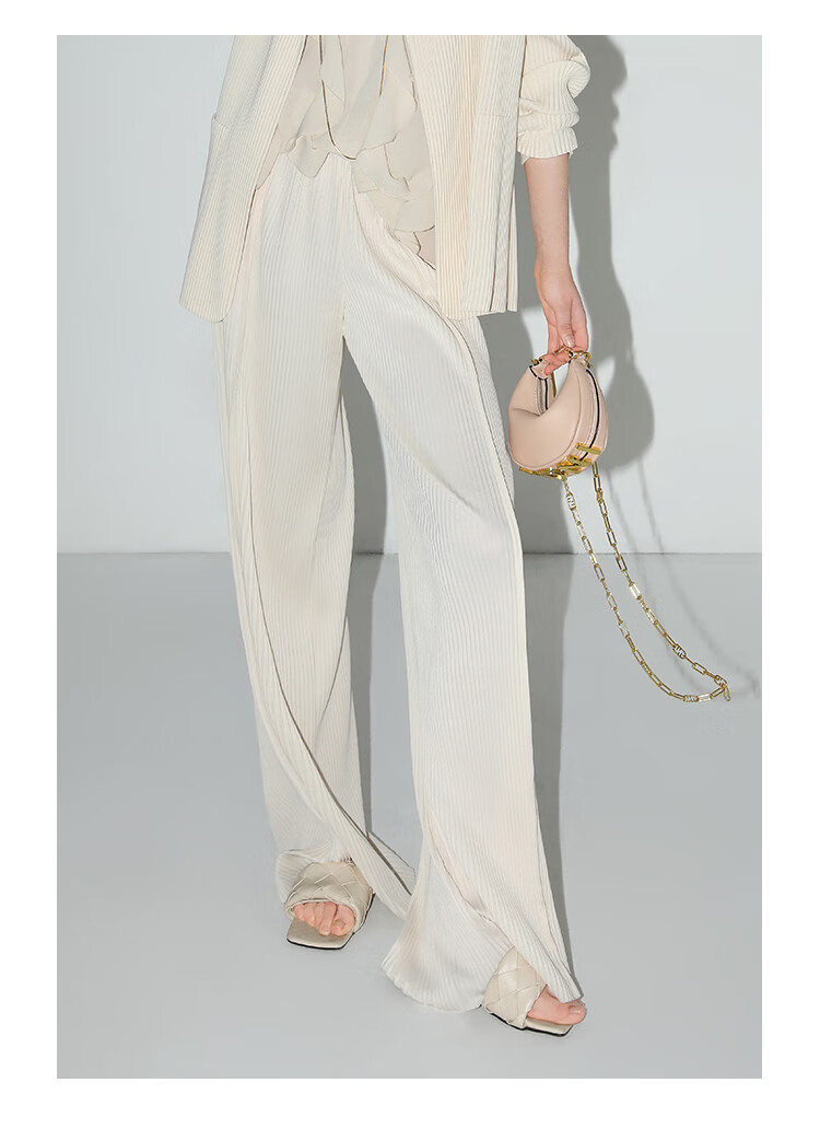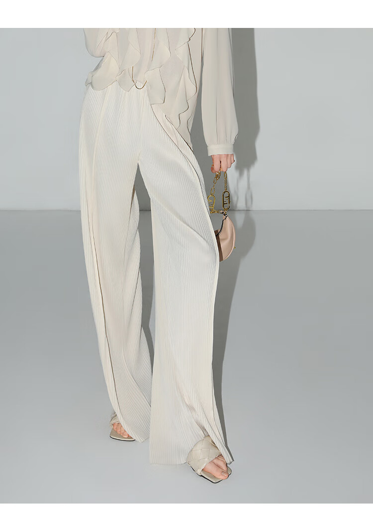 【秒杀】COCOBELLA重工压褶立体裤线阔腿裤女夏宽松垂坠休闲长裤PA626C