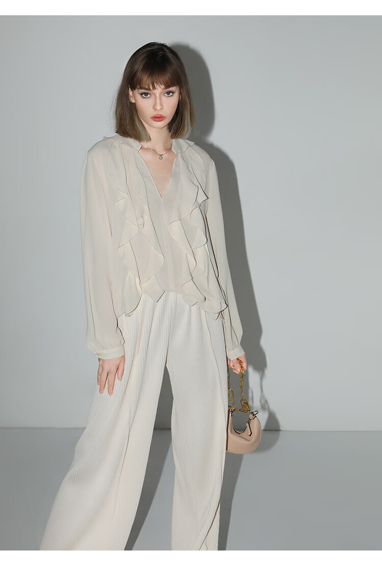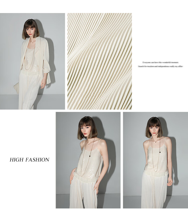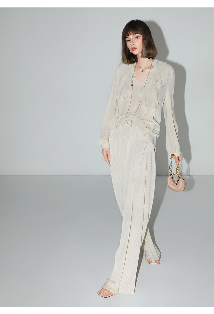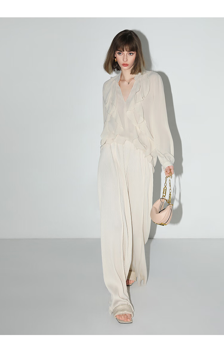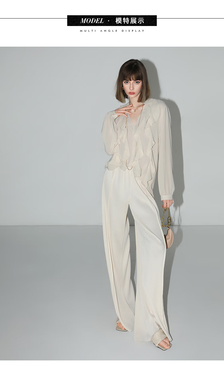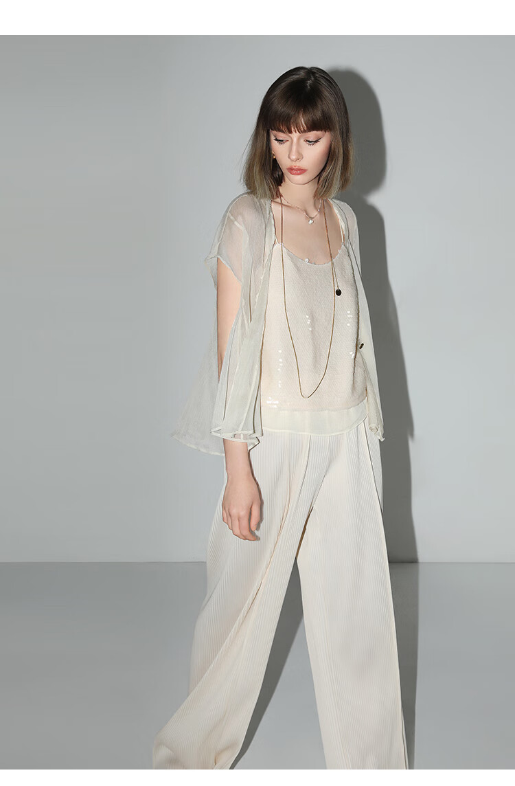 【秒杀】COCOBELLA重工压褶立体裤线阔腿裤女夏宽松垂坠休闲长裤PA626C