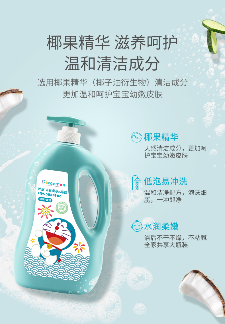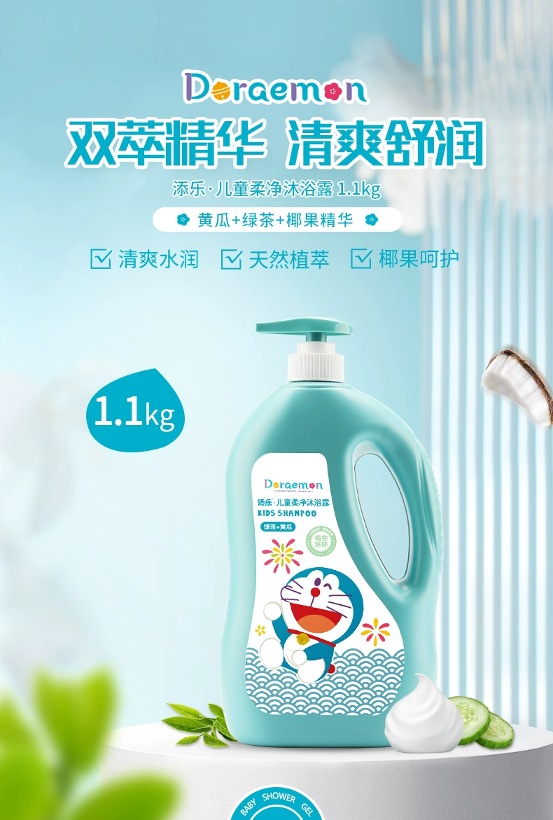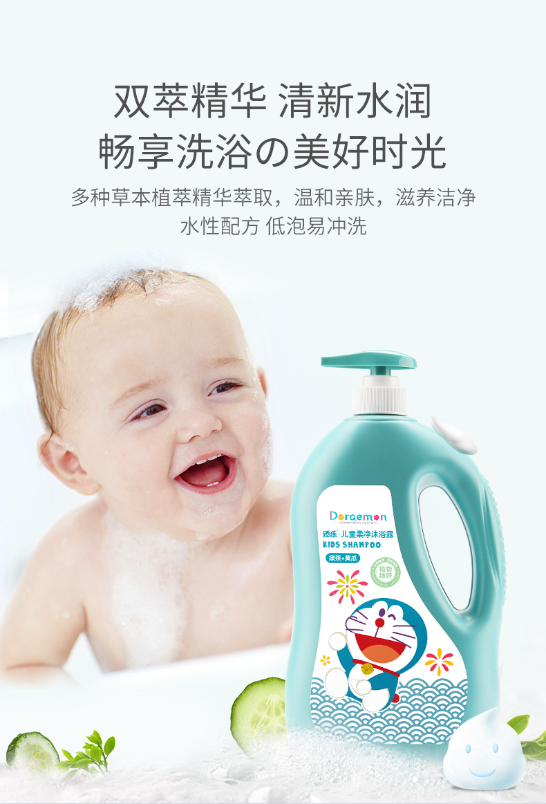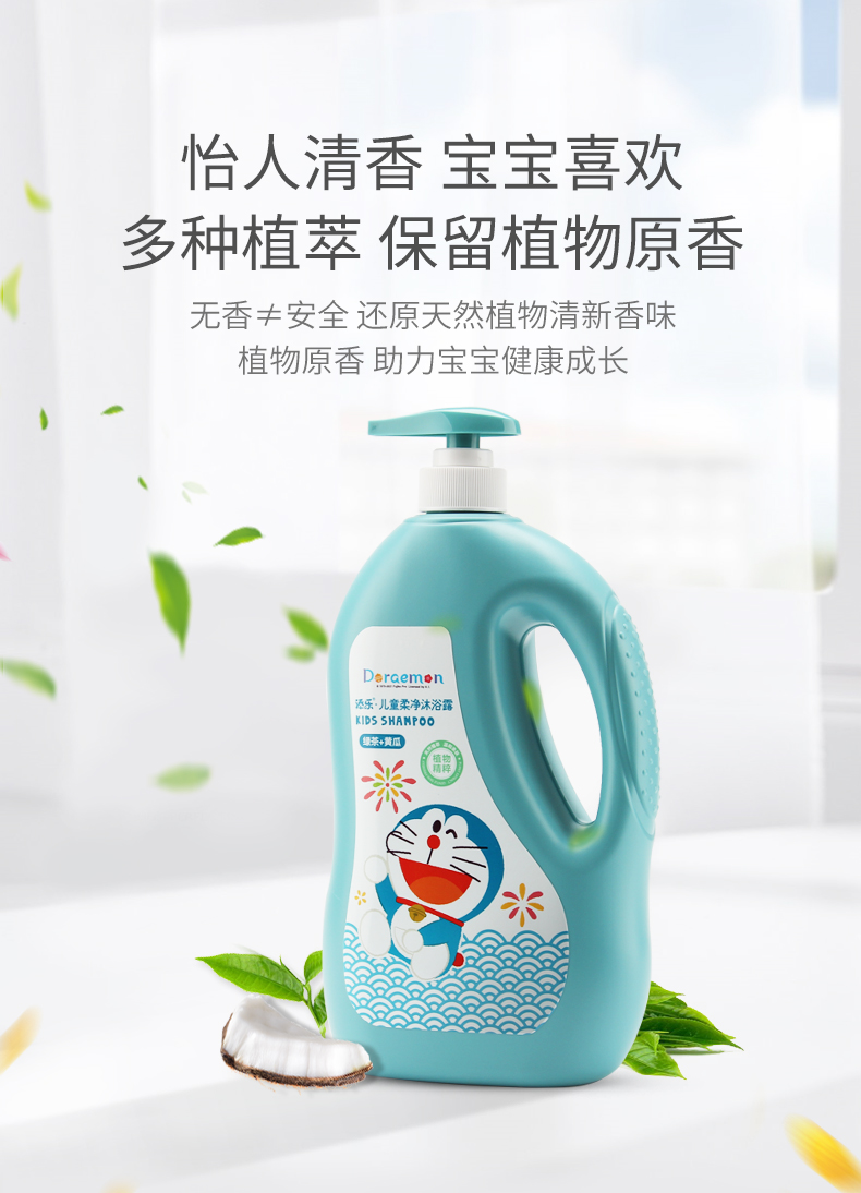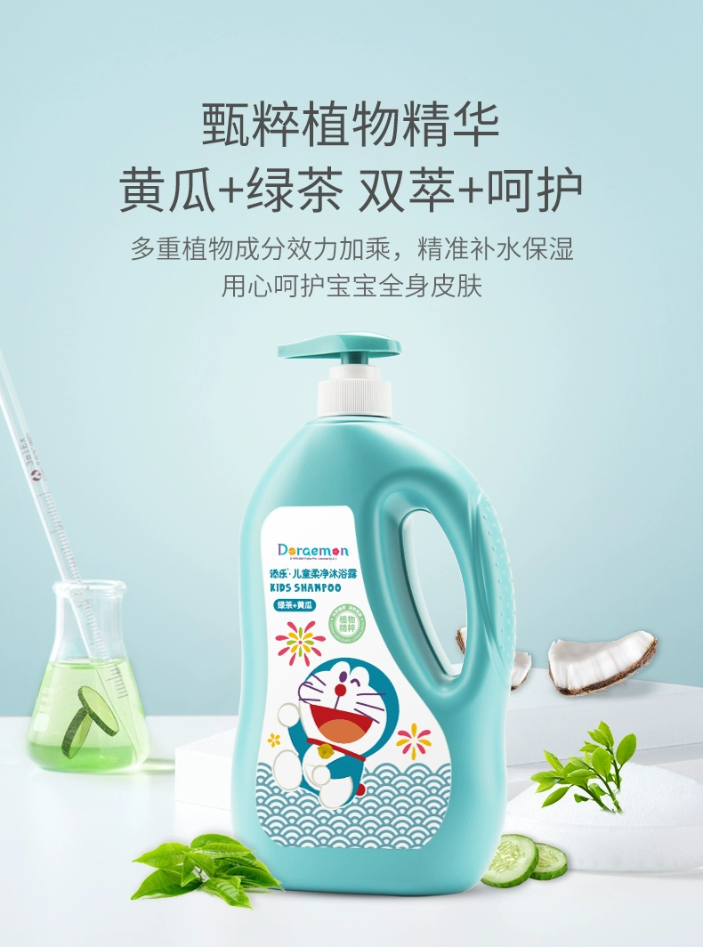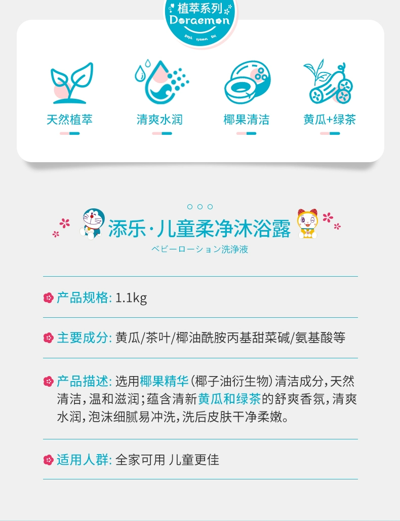 添乐植萃系列1.1kg儿童柔净沐浴露*2瓶装 哆啦A梦儿童柔净沐浴露天然氨基酸绿茶提取洗护沐浴